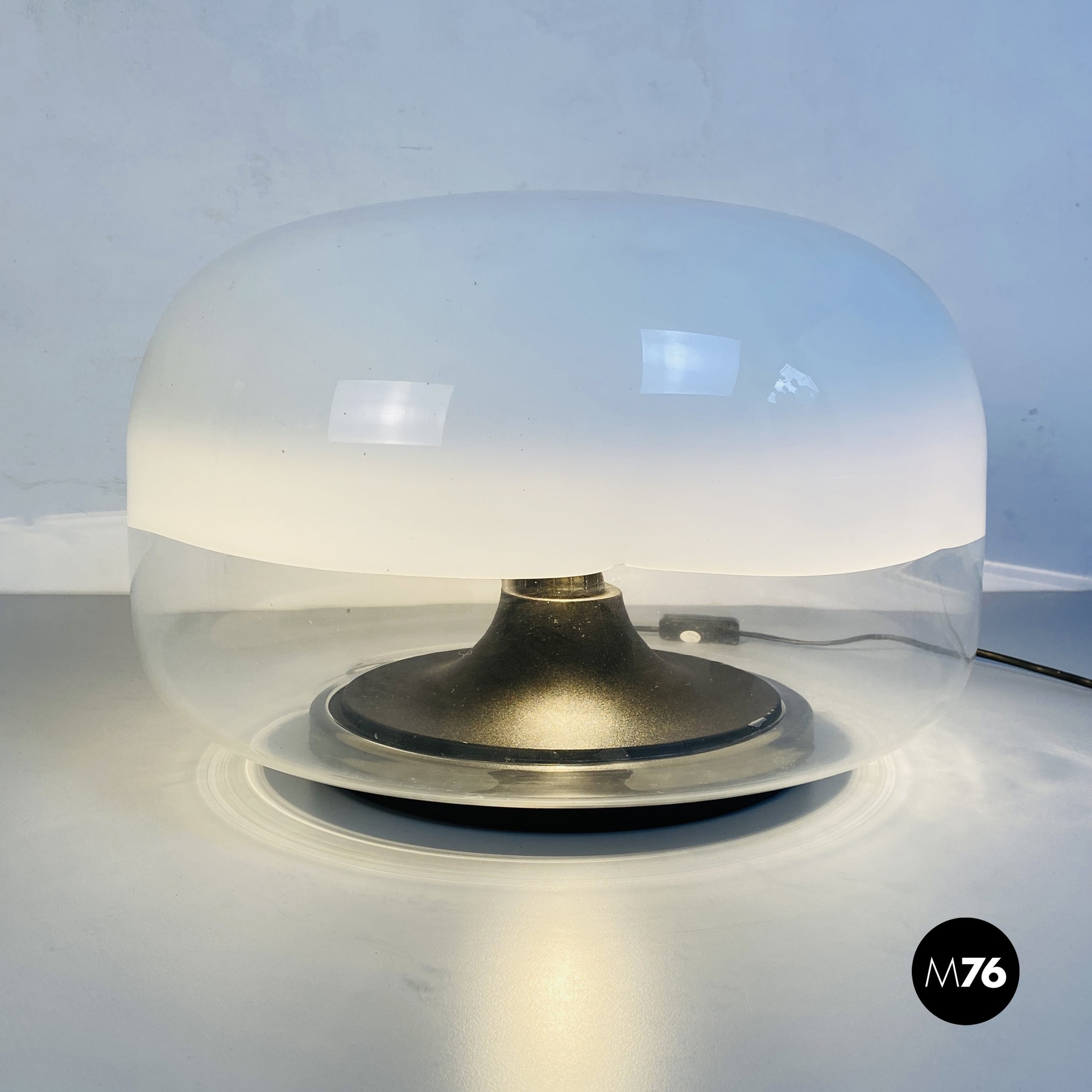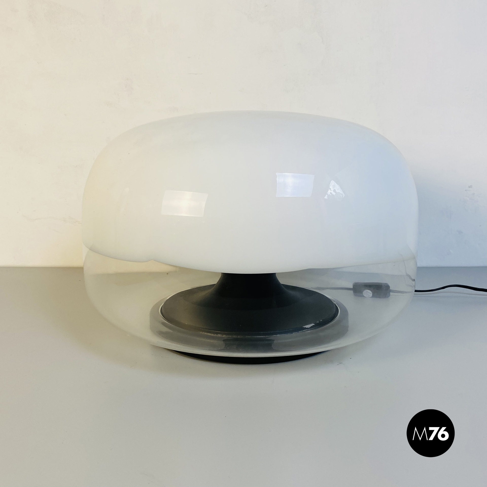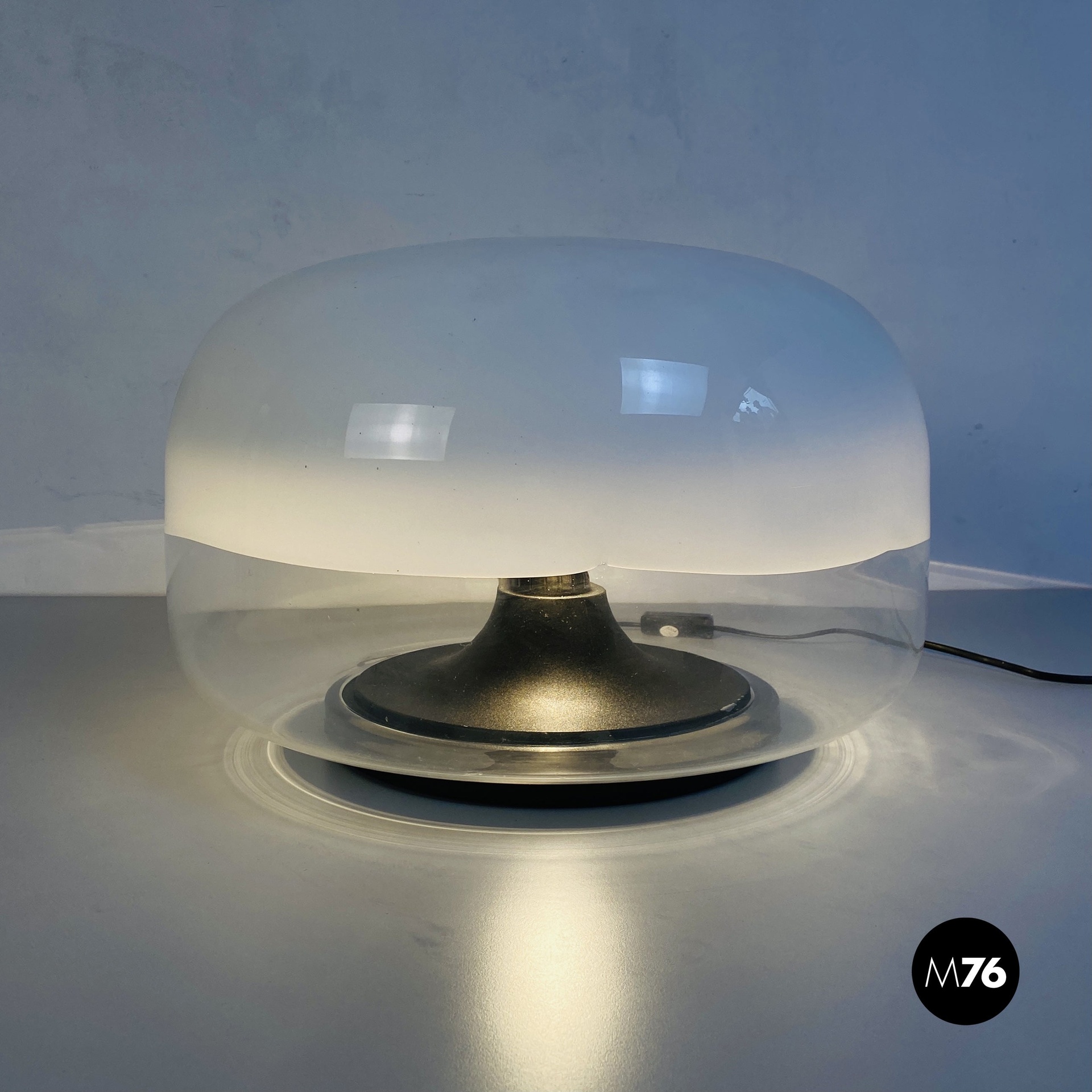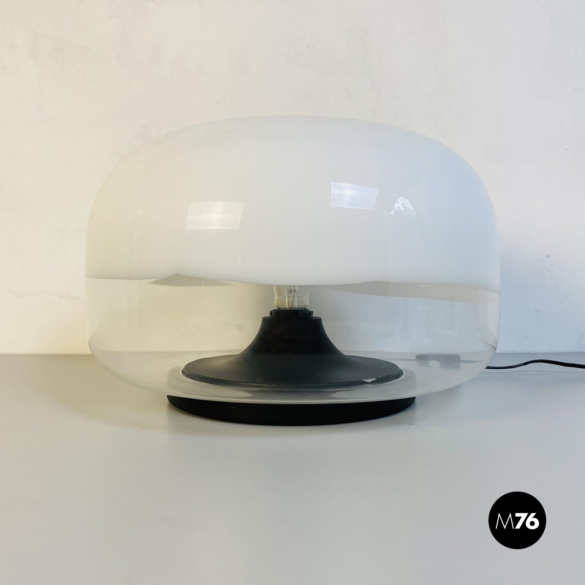Lampada da tavolo in vetro e metallo nero, 1970 ca.