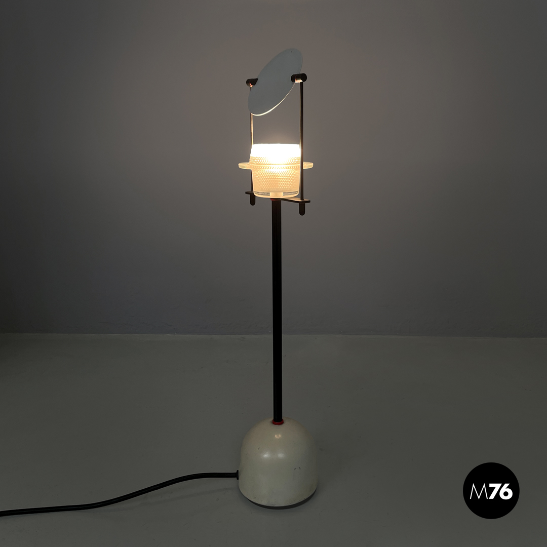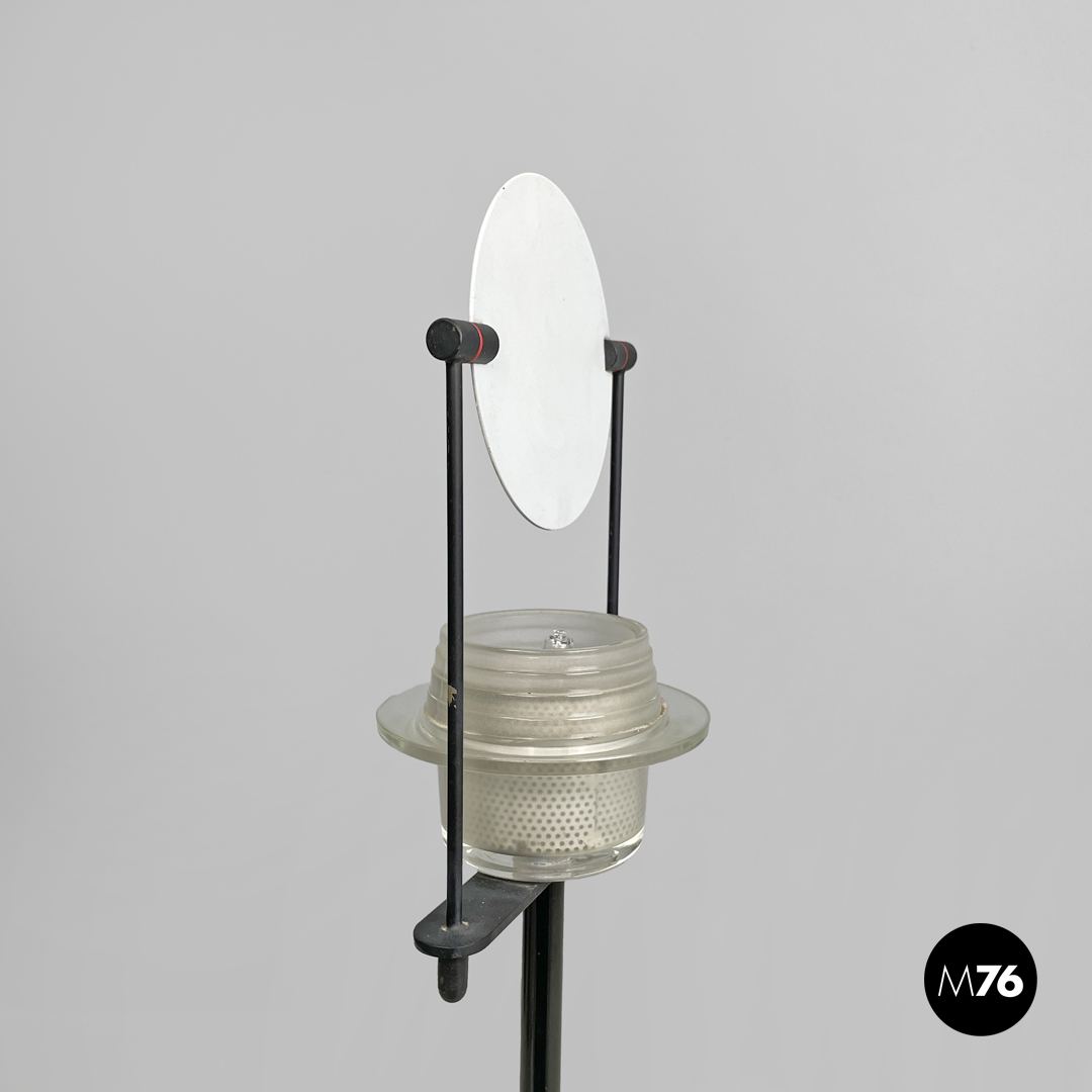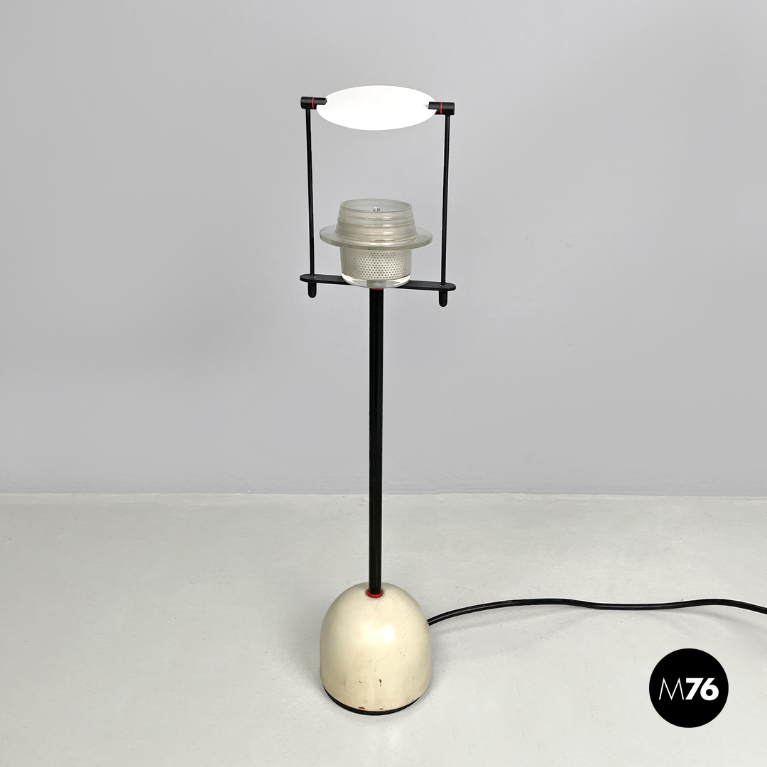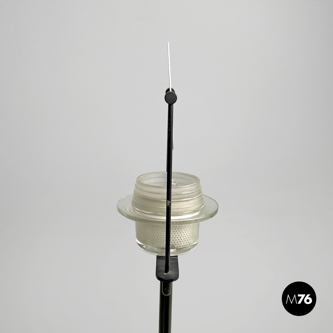 Lampada da tavolo in vetro, metallo nero e bianco, 1980 ca.