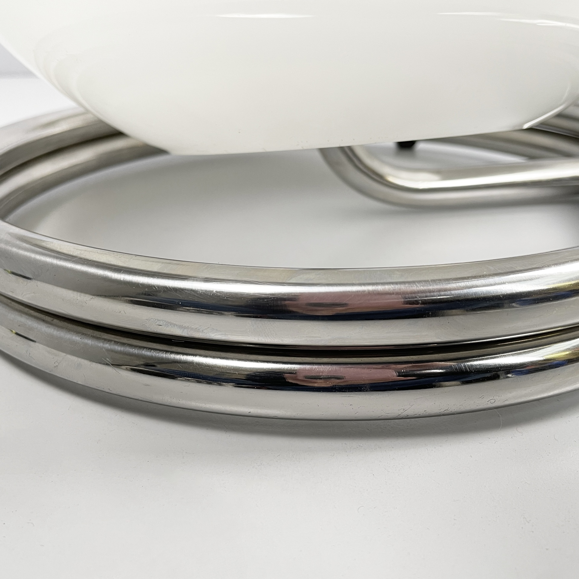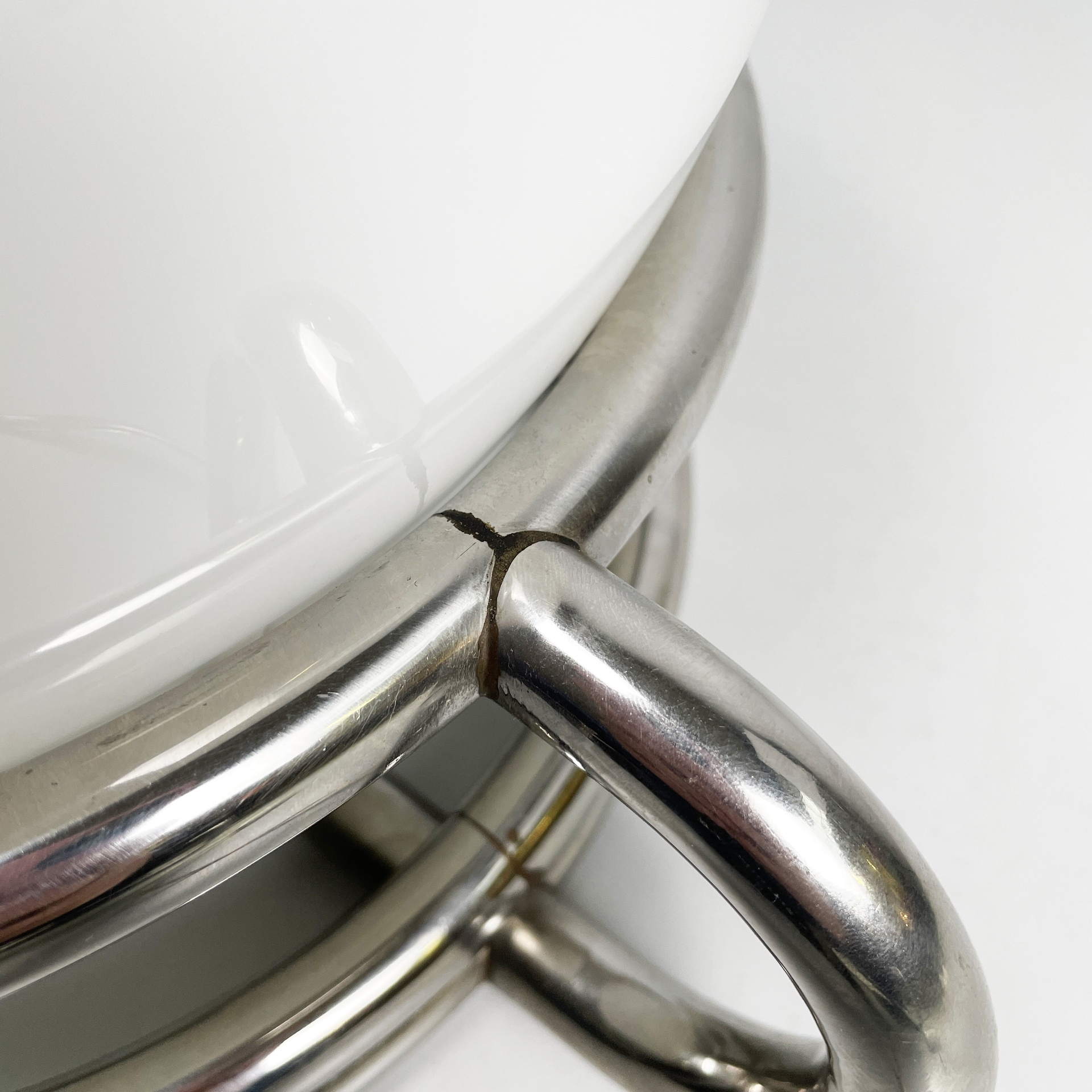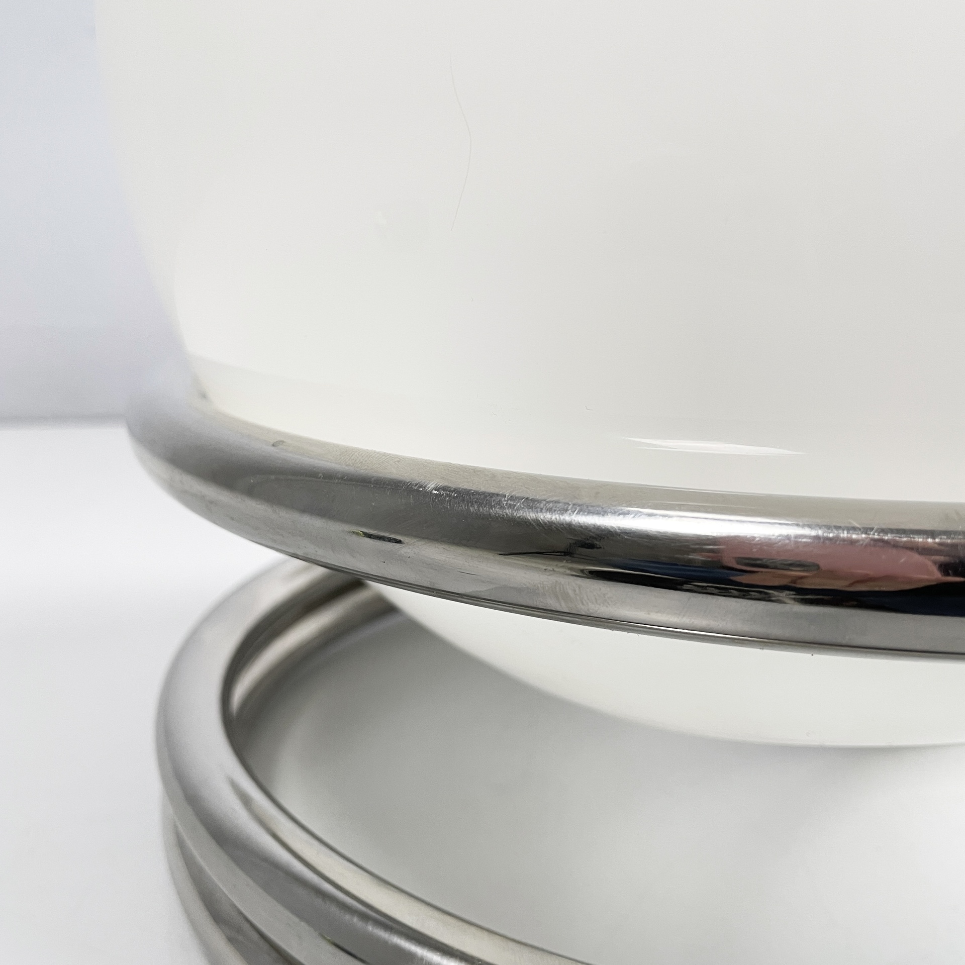 Lampada da tavolo in vetro opalino e acciaio, 1970 ca.