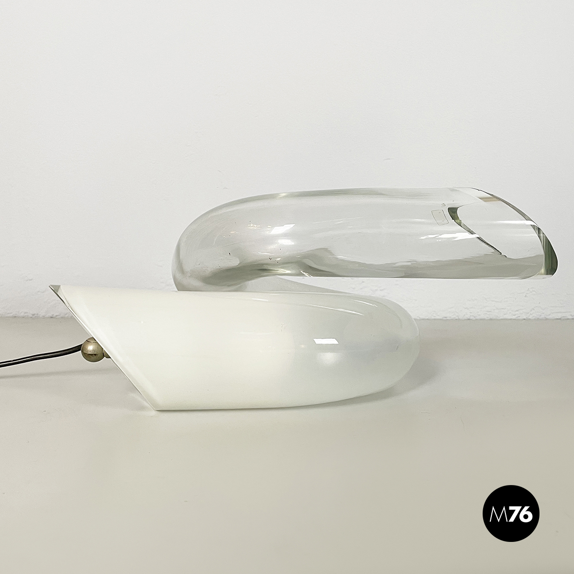 Lampada da tavolo in vetro opalino e trasparente, 1980 ca.