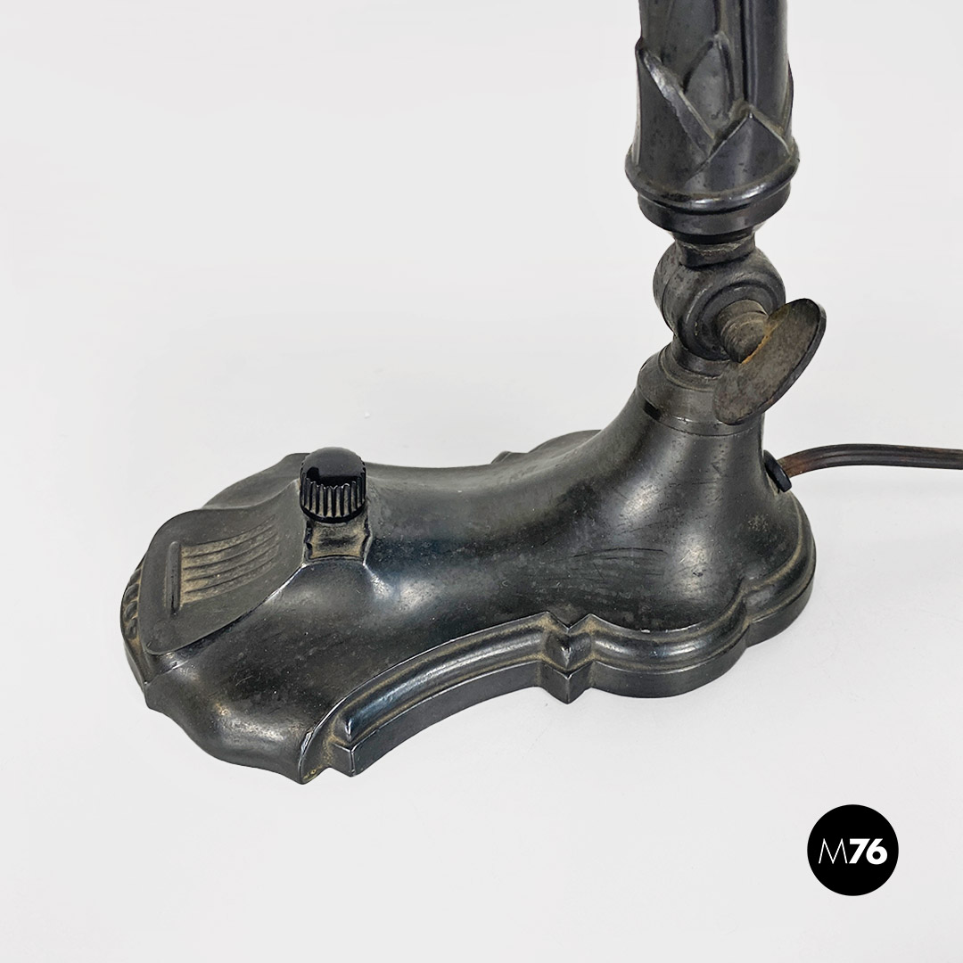 Lampada da tavolo ministeriale in metallo e tessuto, 1900 ca.