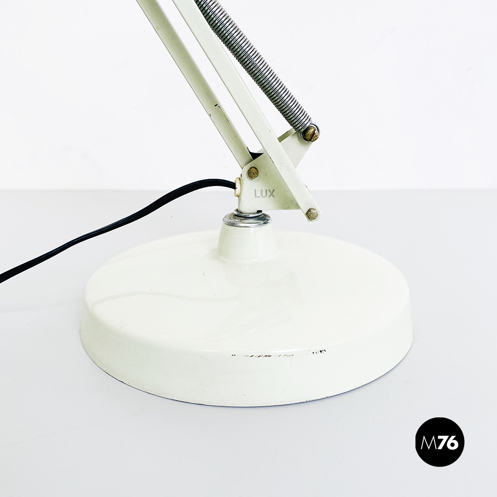Lampada da tavolo modello Naska Loris in metallo smaltato bianco con base tonda con struttura e paralume orientabili in ogni posizione.