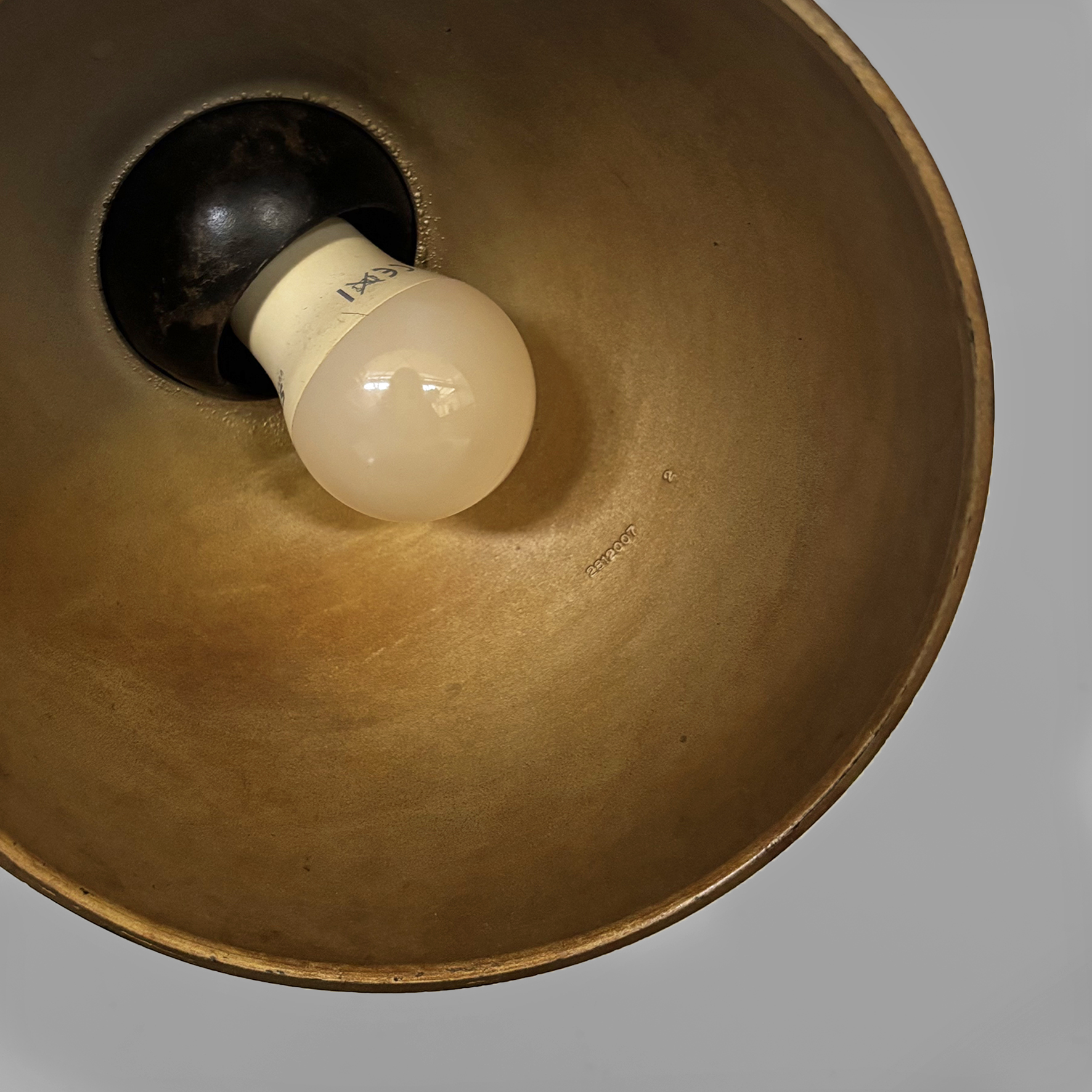 Lampada da tavolo modello Type 11126 interamente in bachelite marrone scuro. Presenta un braccio arcuato regolabile in altezza che collega il paralume direzionabile di forma tonda con la base, dotata di un piccolo interruttore a levetta in metallo. Il cavo è rivestito in corda rossa.