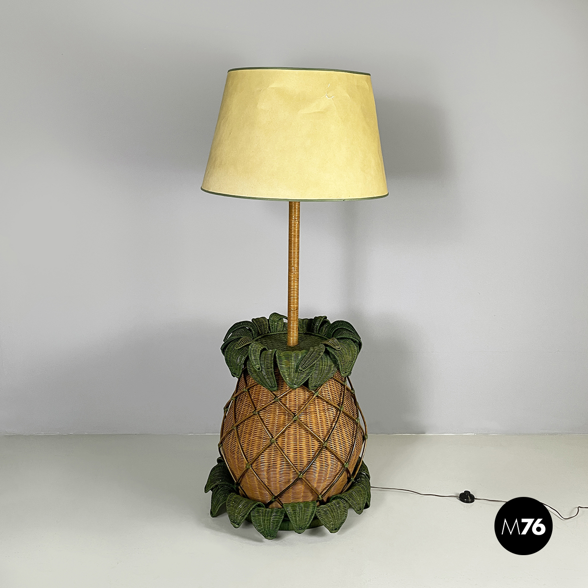 Lampada da terra a forma di ananas in vimini, 1970 ca.