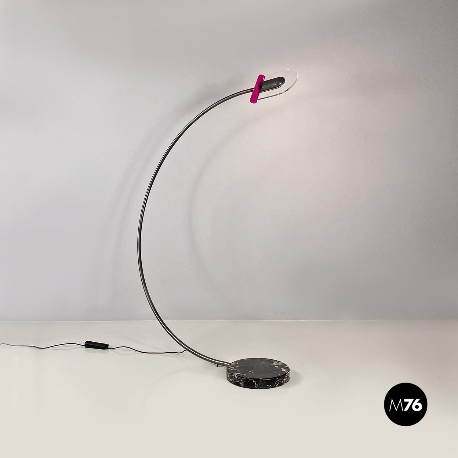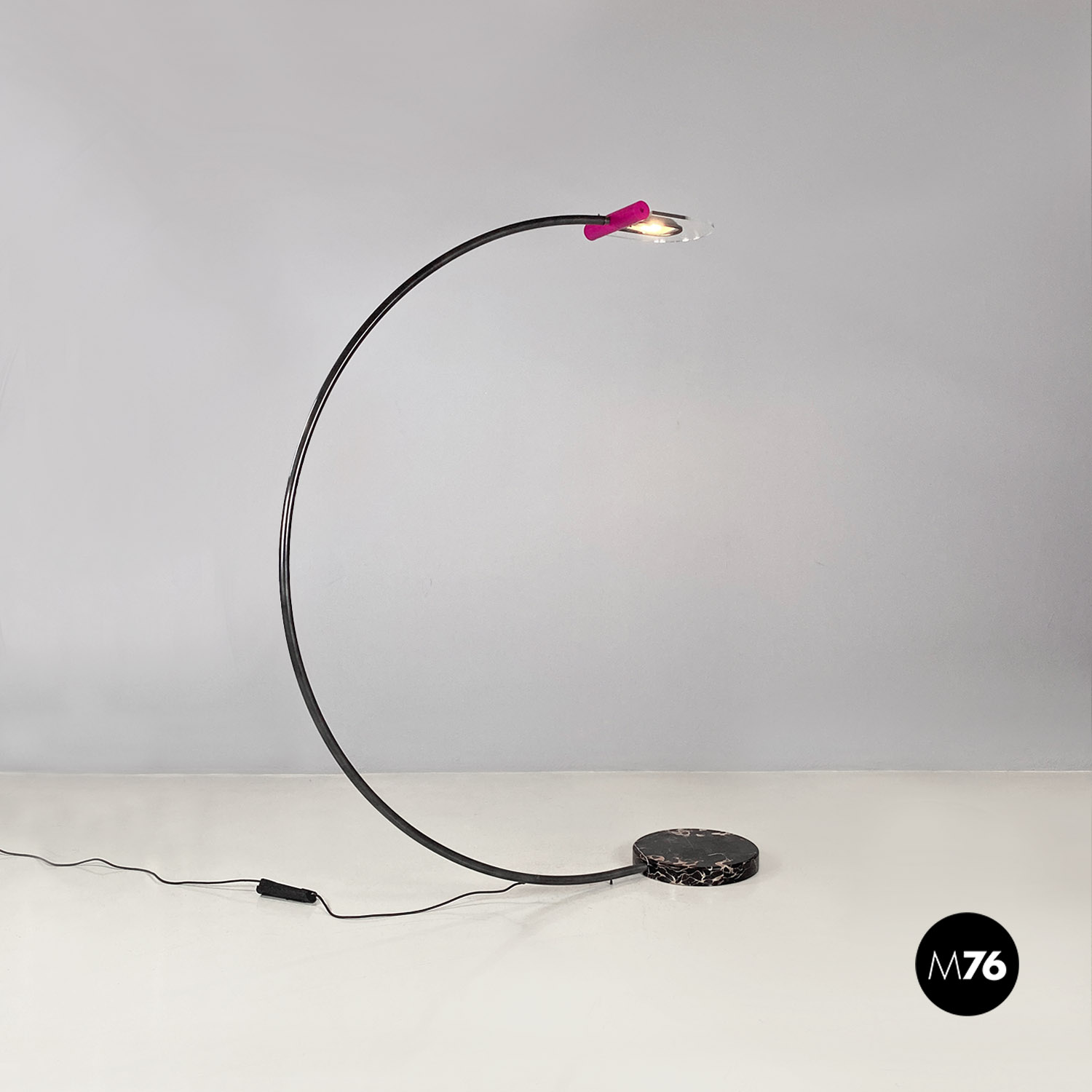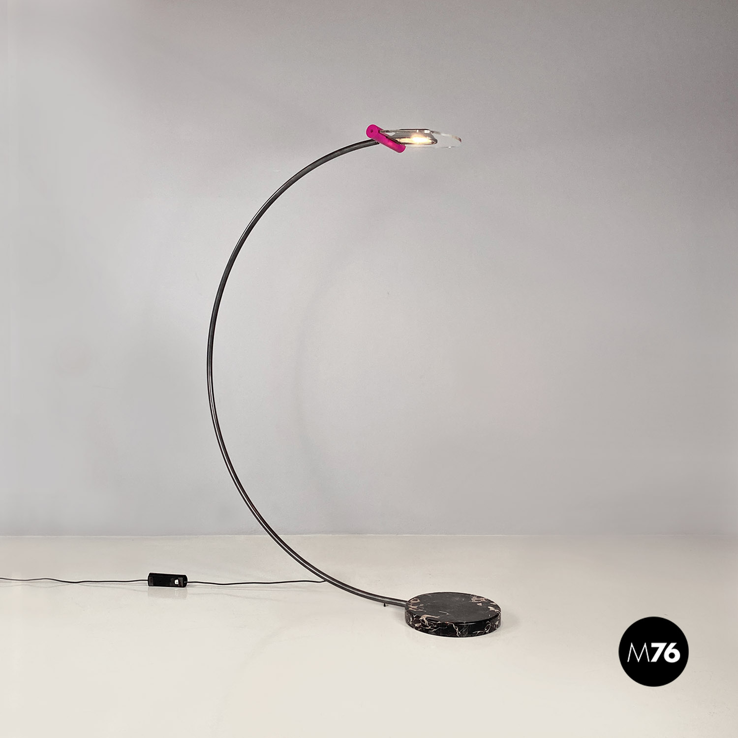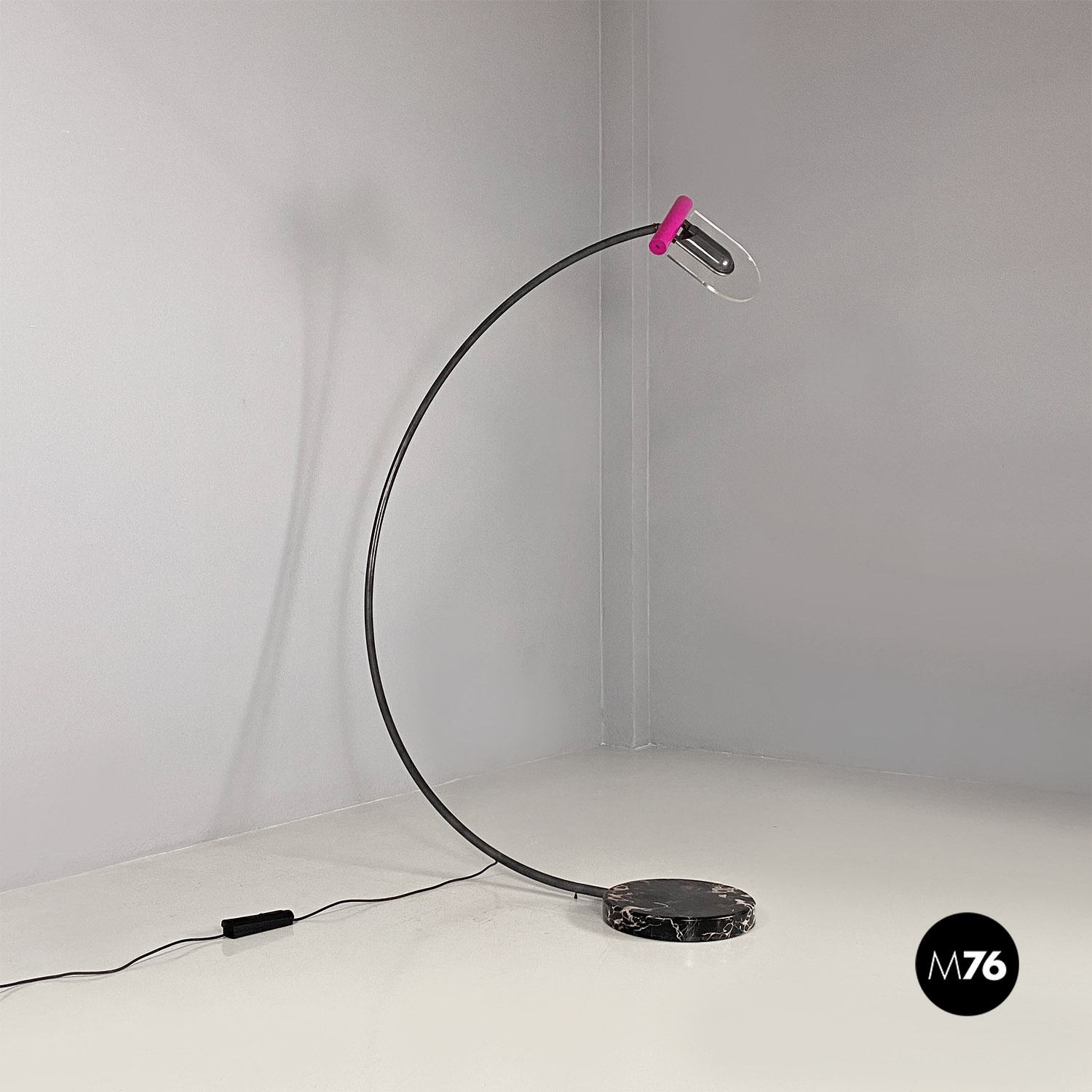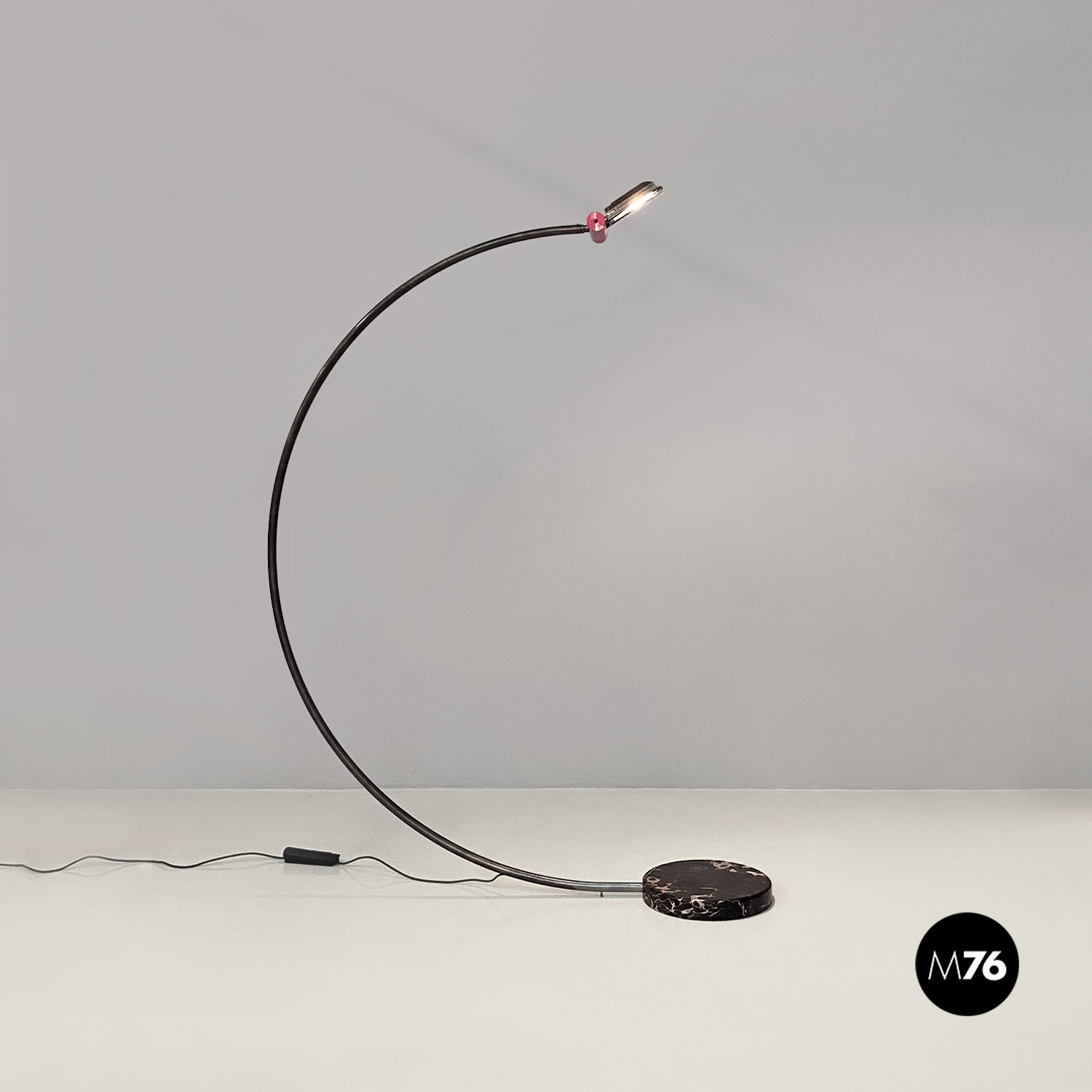 Lampada da terra ad arco in marmo e metallo, 1980 ca.