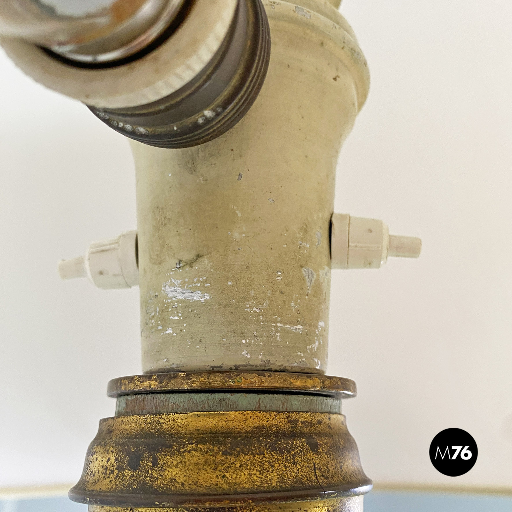 Condizioni vintage con segni dell’uso e del tempo ossidazioni e mancanze di materiale e alcune rotture sulla struttura. Il paralume è stato sostituito ed è nuovo.