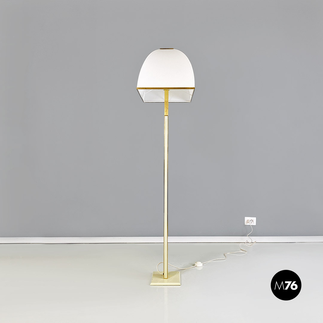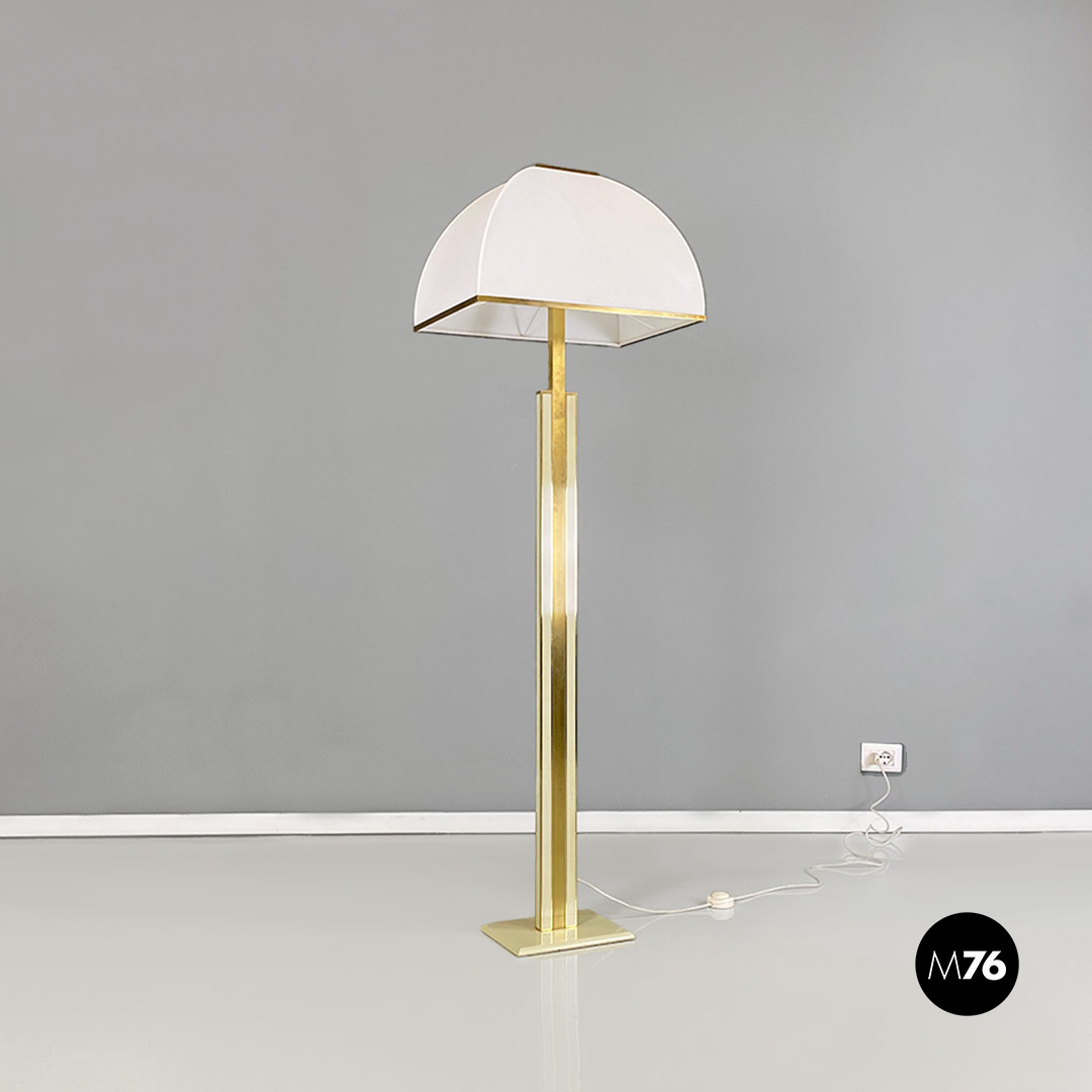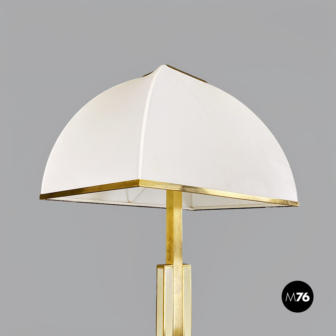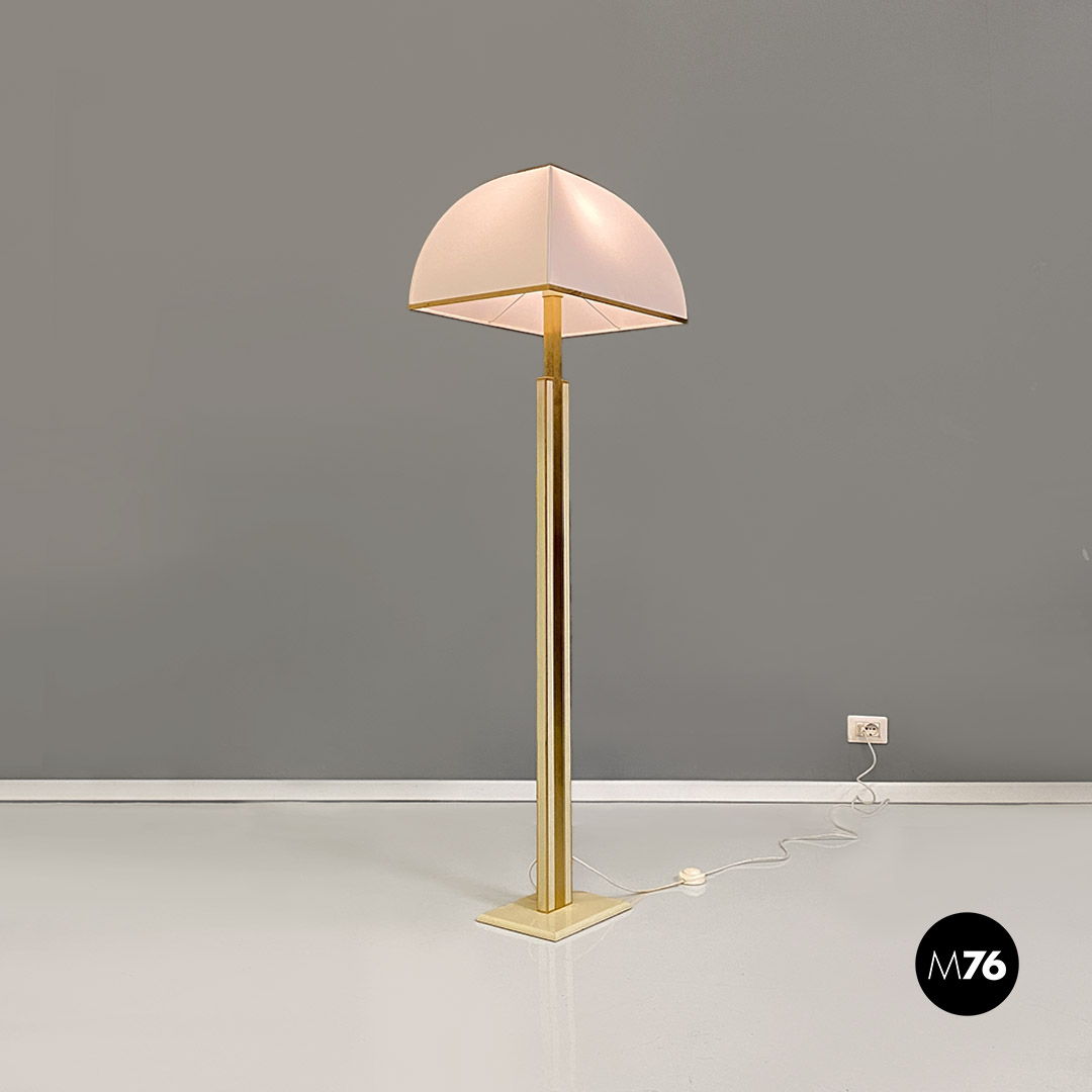 Lampada da terra in ottone e tessuto, 1980 ca.