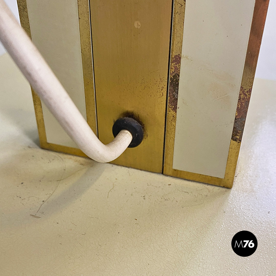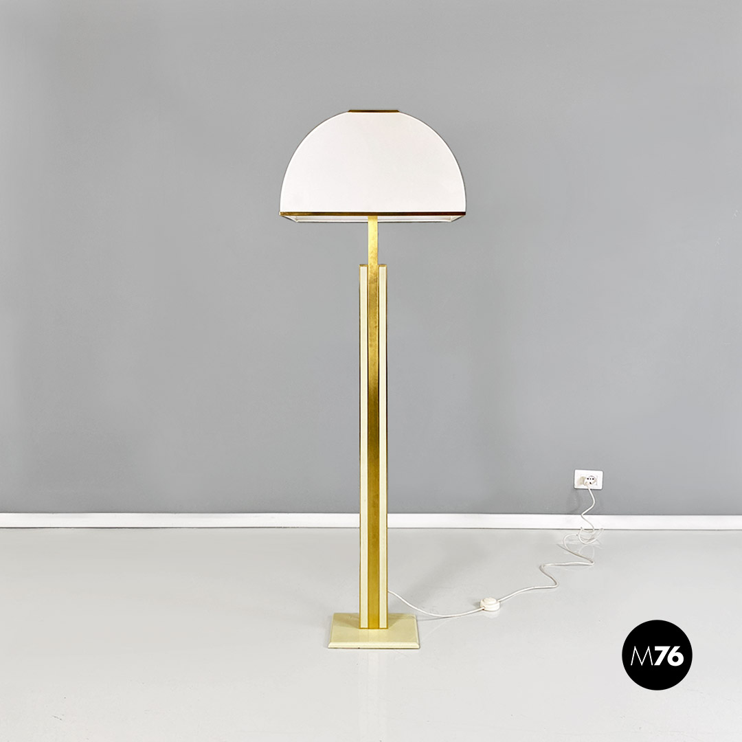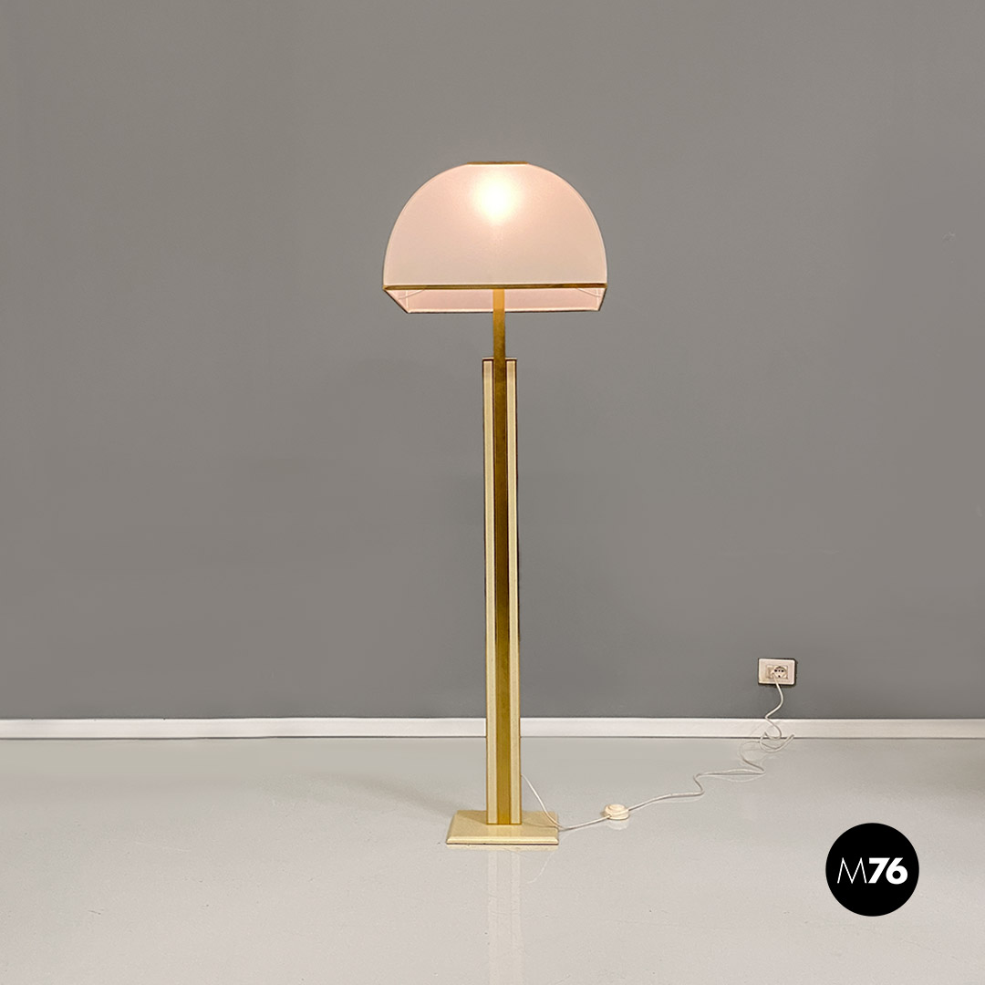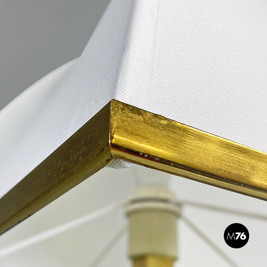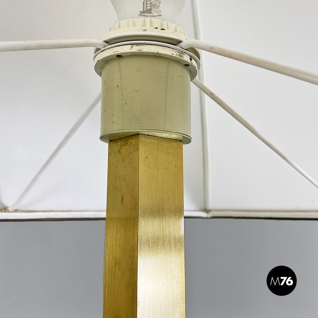 Lampada da terra in ottone e tessuto, 1980 ca.