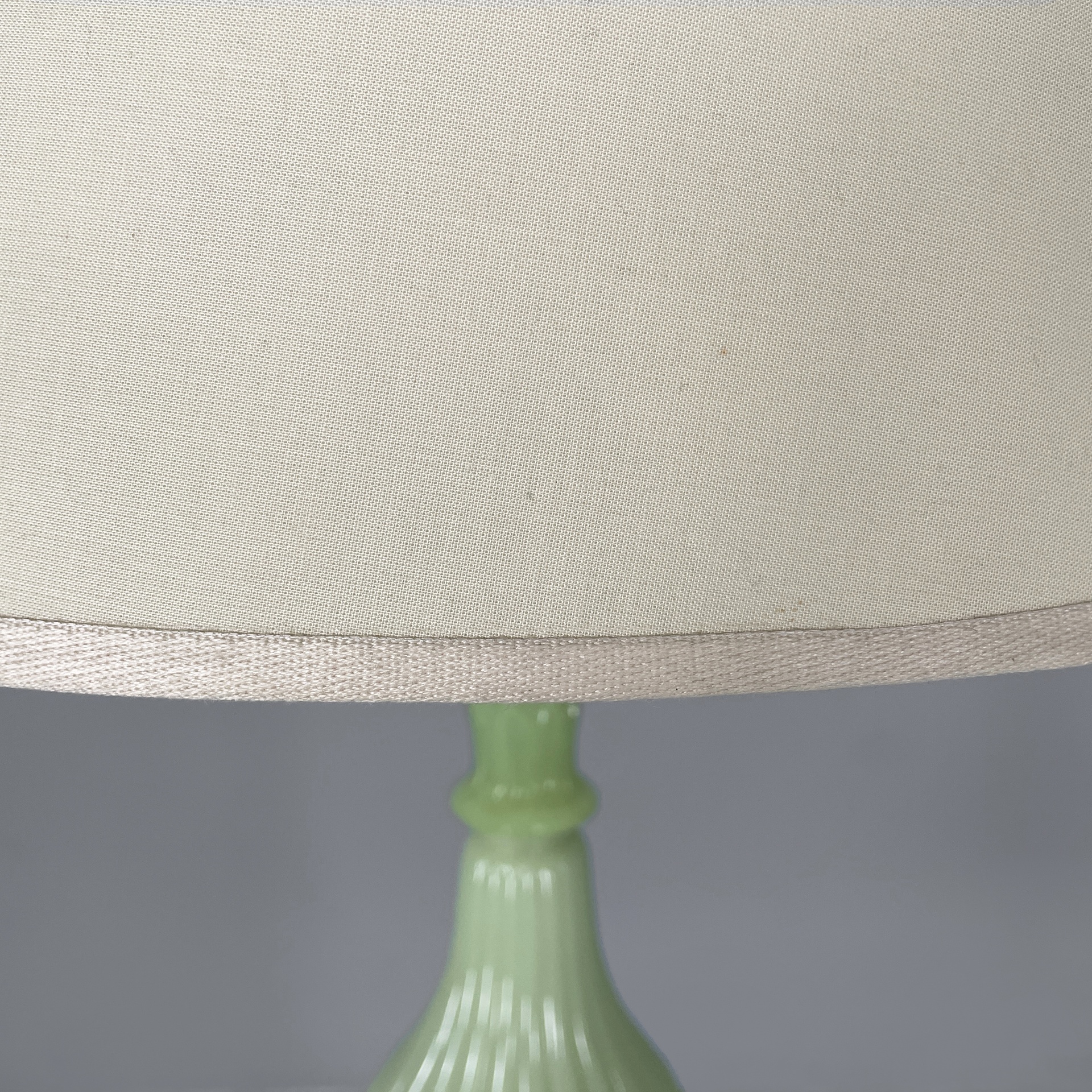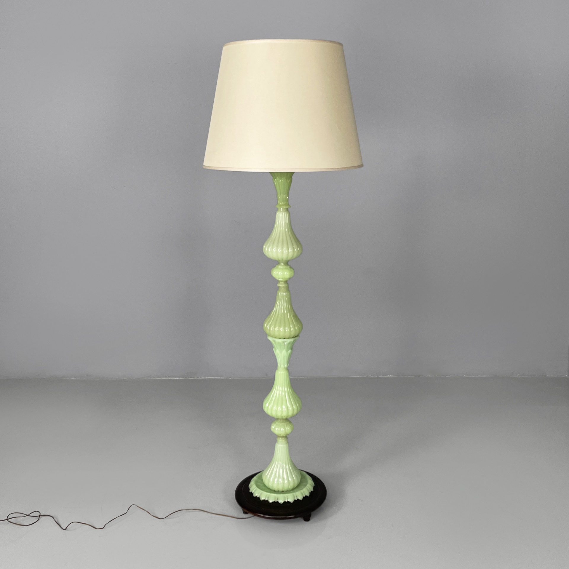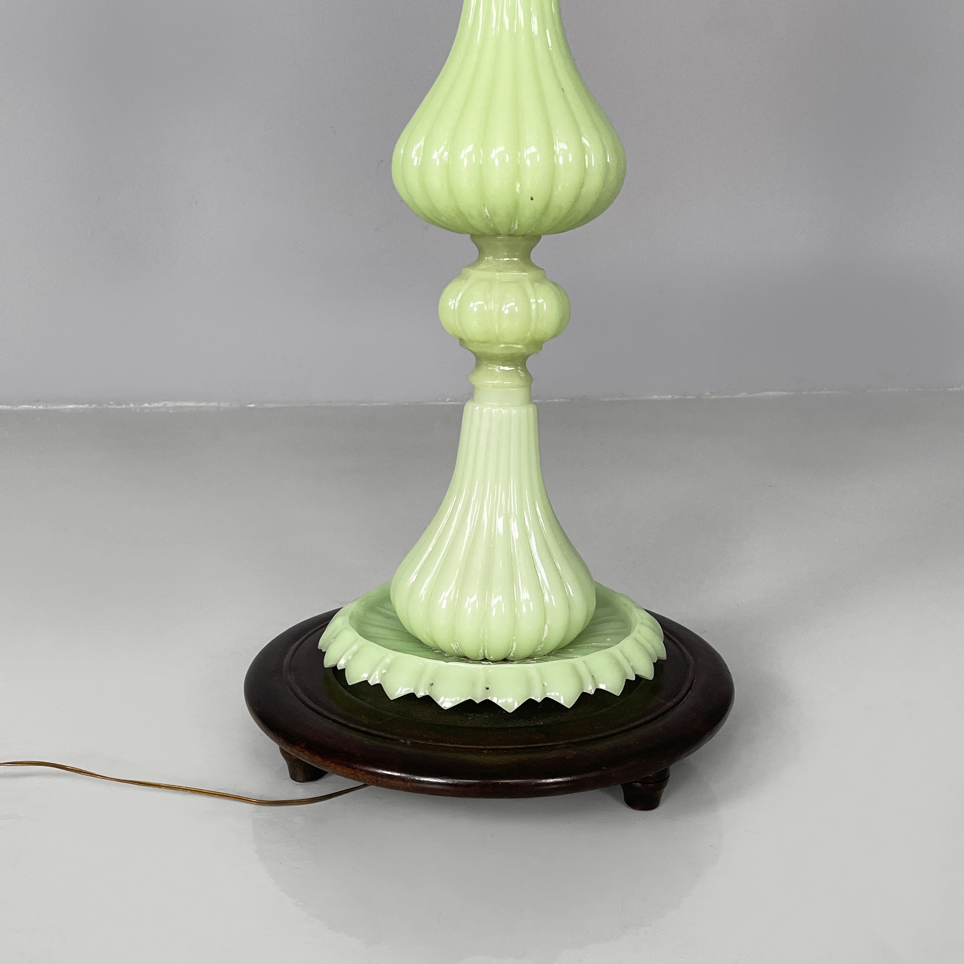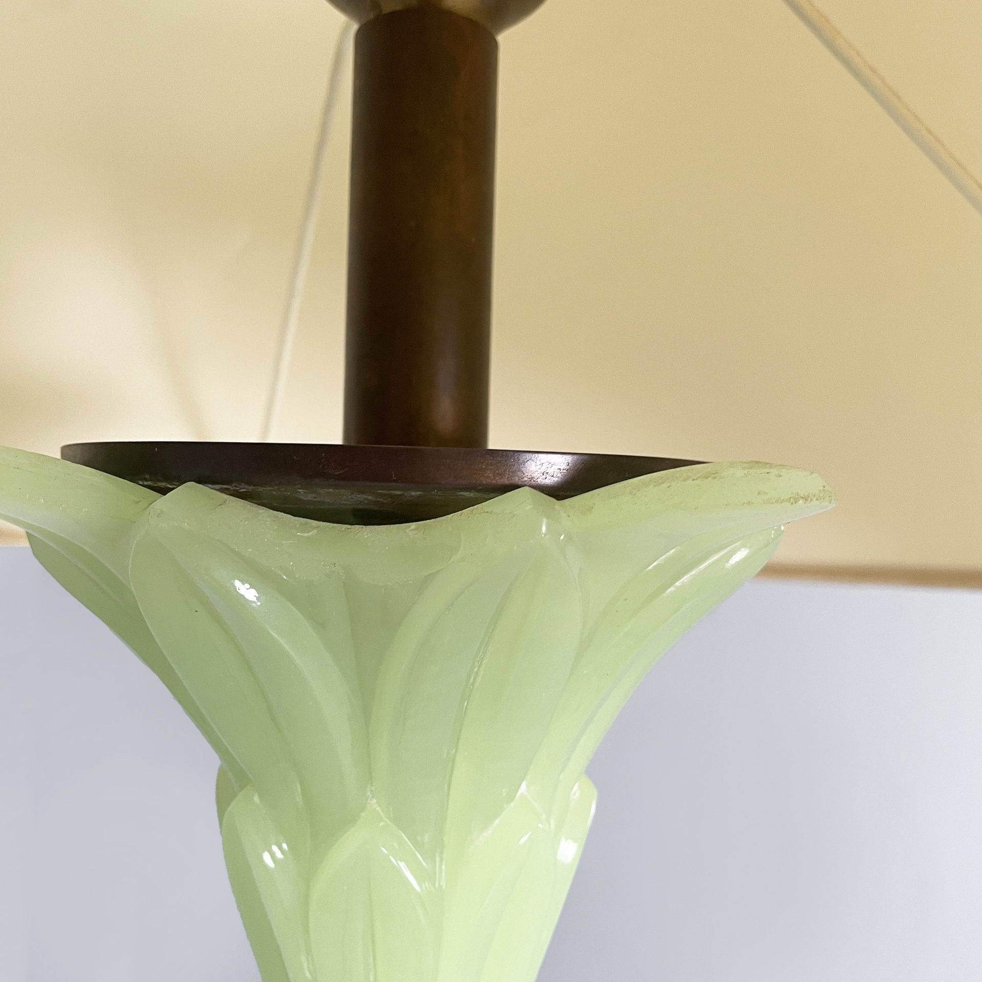 Lampada da terra in tessuto e vetro opalino verde, 1930 ca.