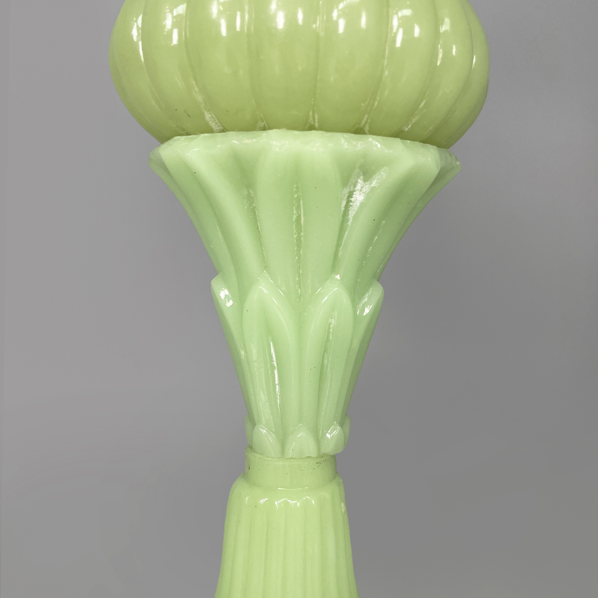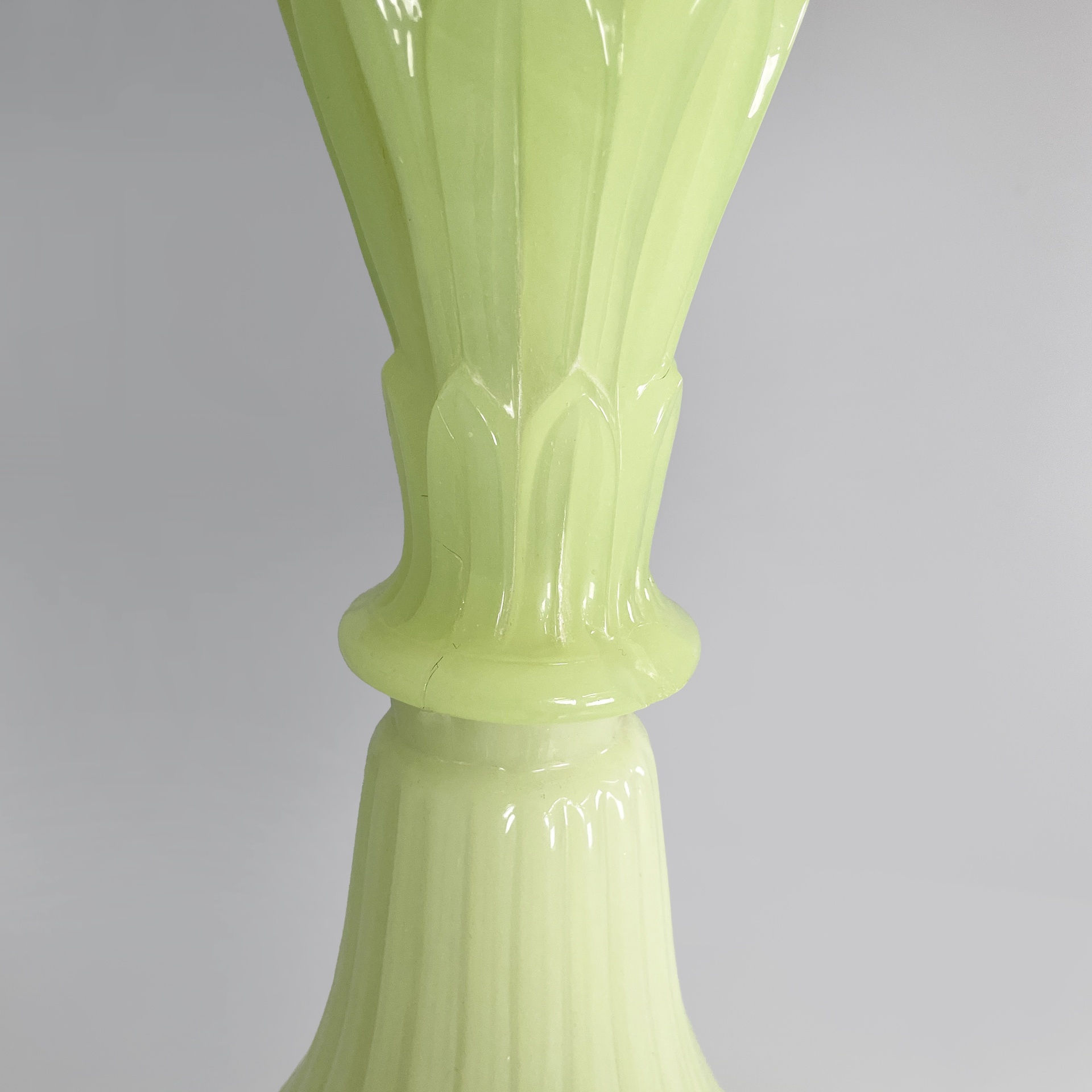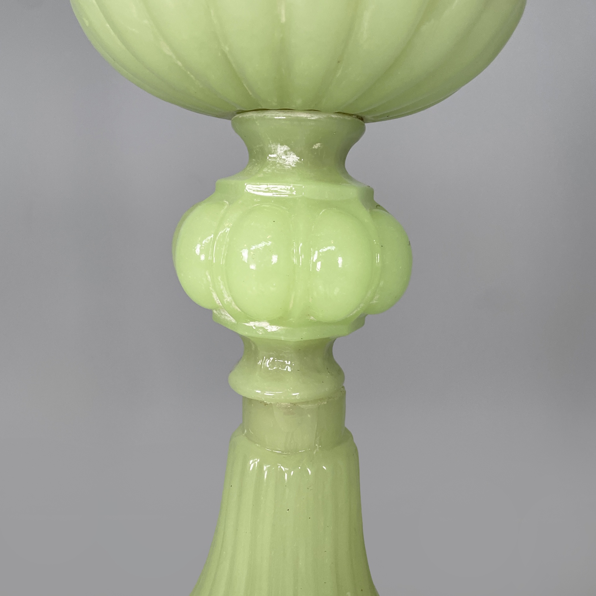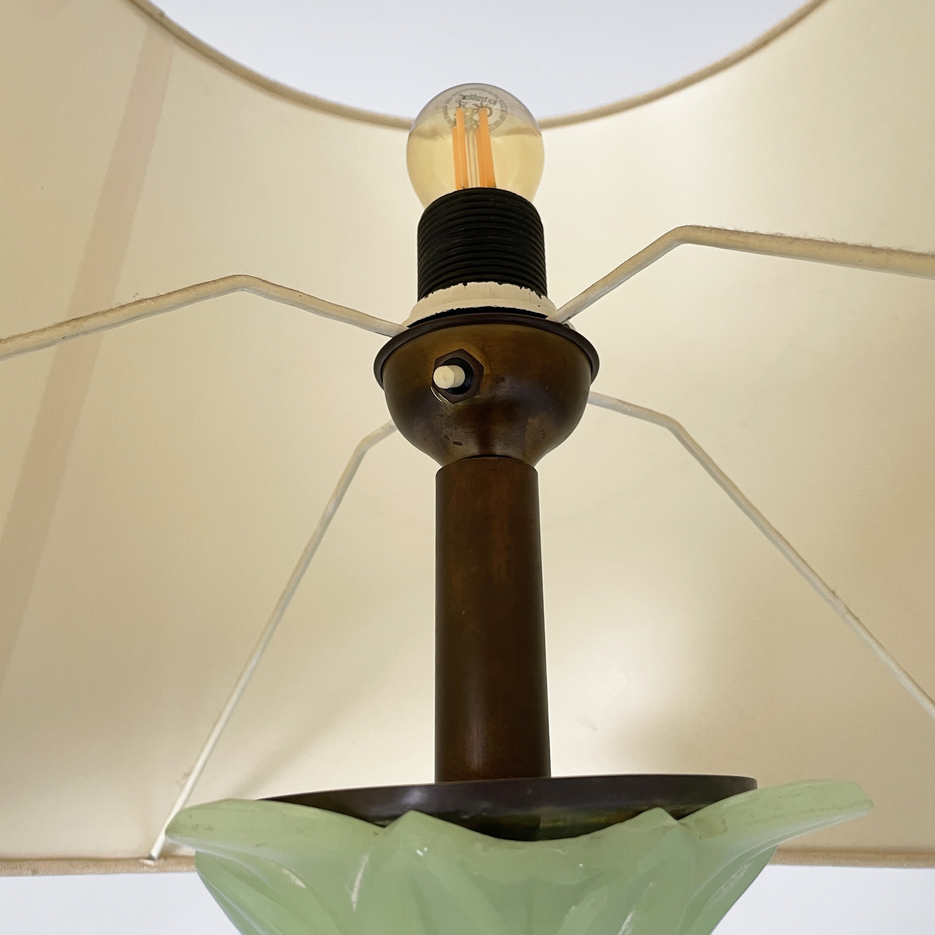 Lampada da terra in tessuto e vetro opalino verde, 1930 ca.