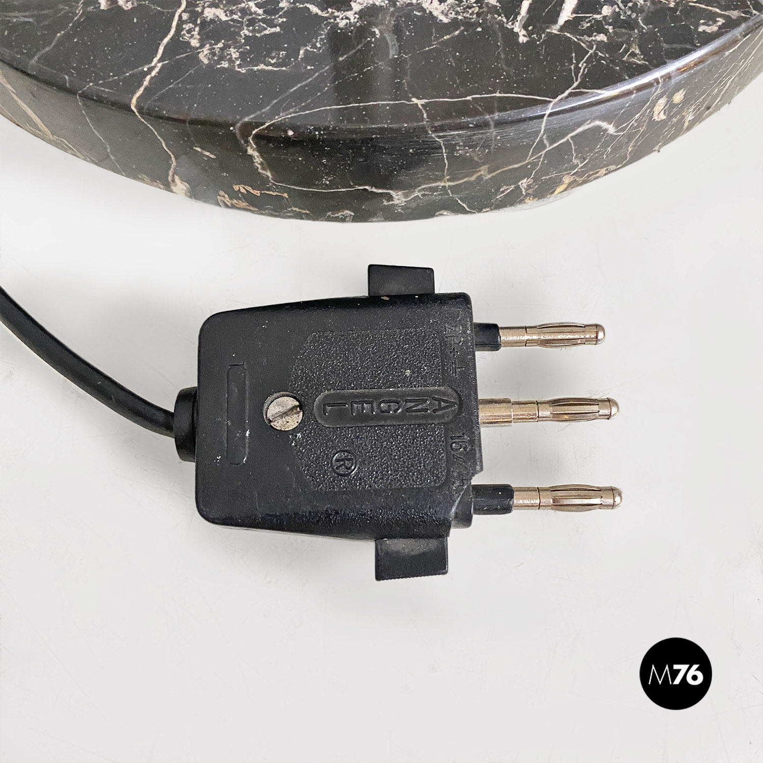 Lampada da terra regolabile con paralume cilindrico in tessuto nero con struttura telescopica in acciaio satinato e base in marmo di Marquinia.