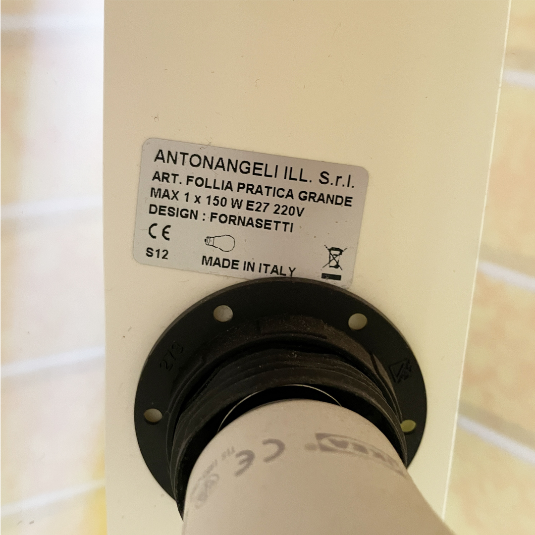Prodotta da Antonangeli Illuminazione nel 1990 ca. e disegnata da Piero Fornasetti. Etichetta presente.
