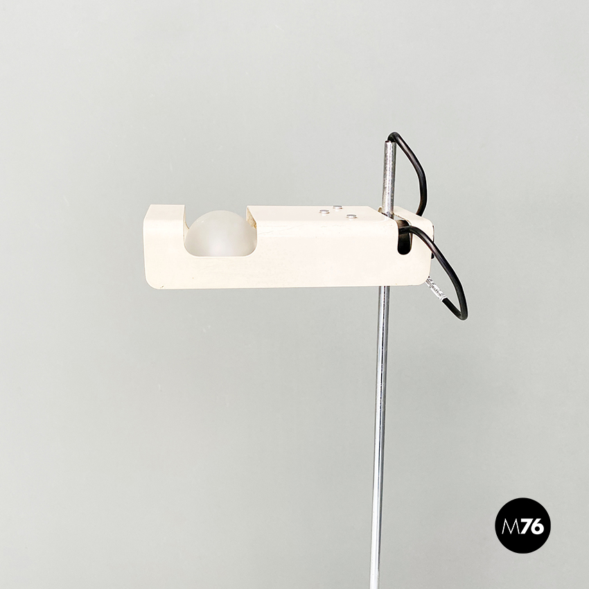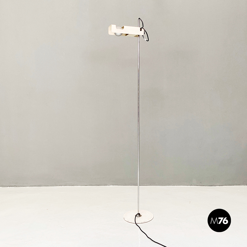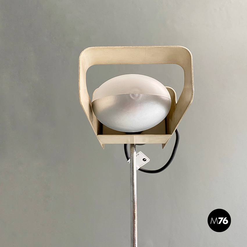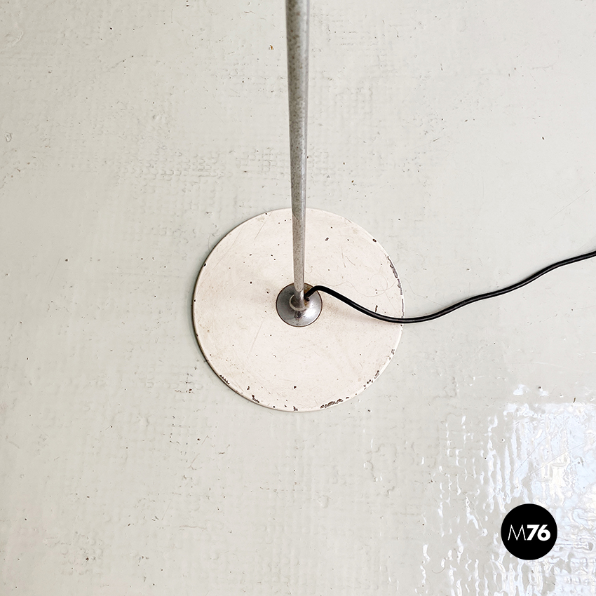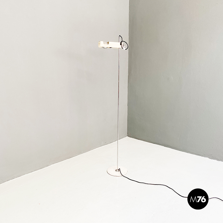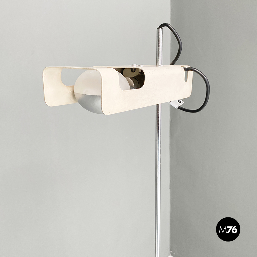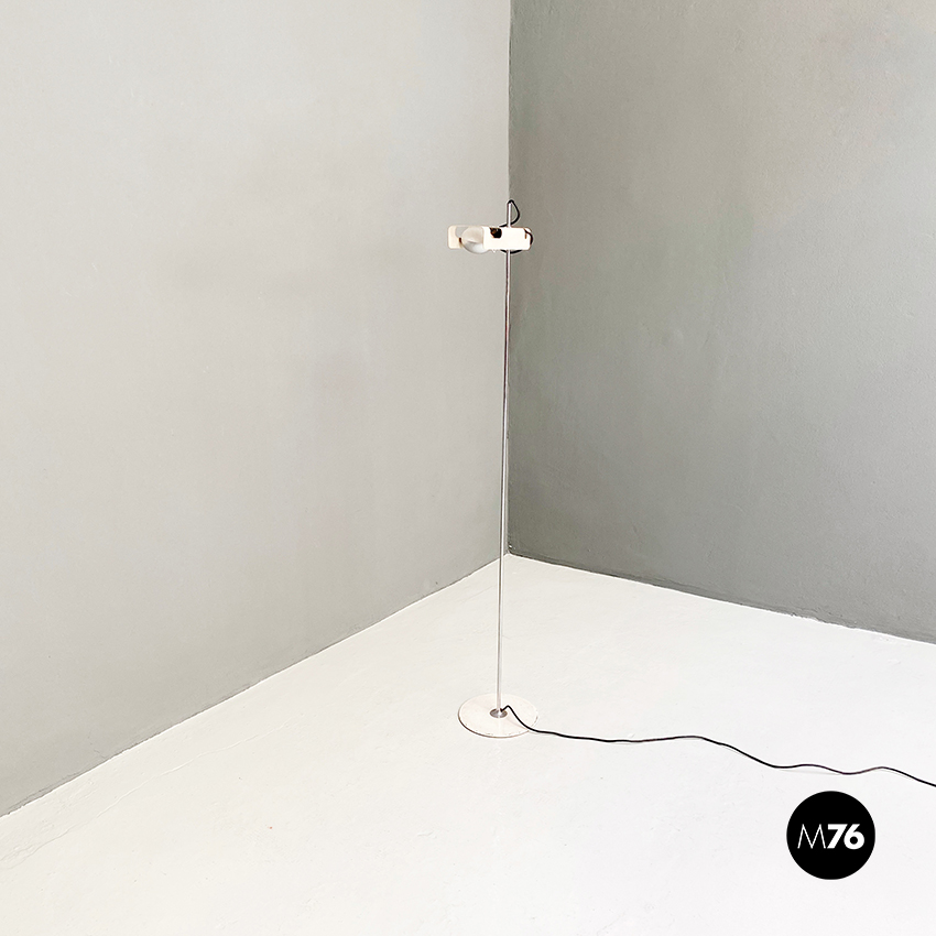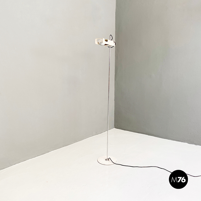 Lampada da terra modello Spider con paralume orientabile in metallo verniciato bianco e stelo cromato.