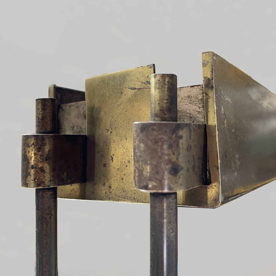 Buone condizioni. Il vetro presenta leggeri difetti. L’ottone presenta segni sparsi e ossidazioni.