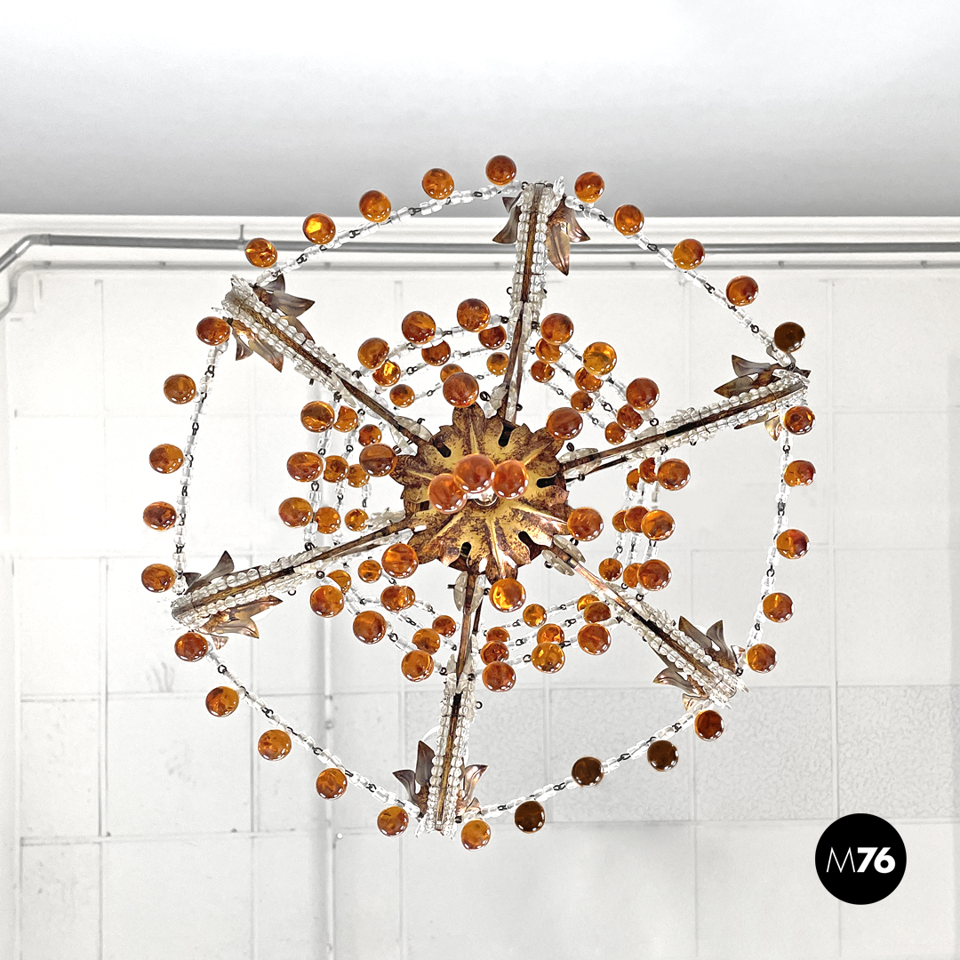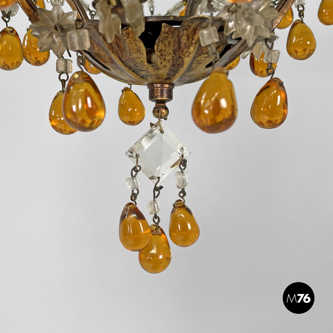 Lampadario a gocce di vetro color ambra, 1930 ca.