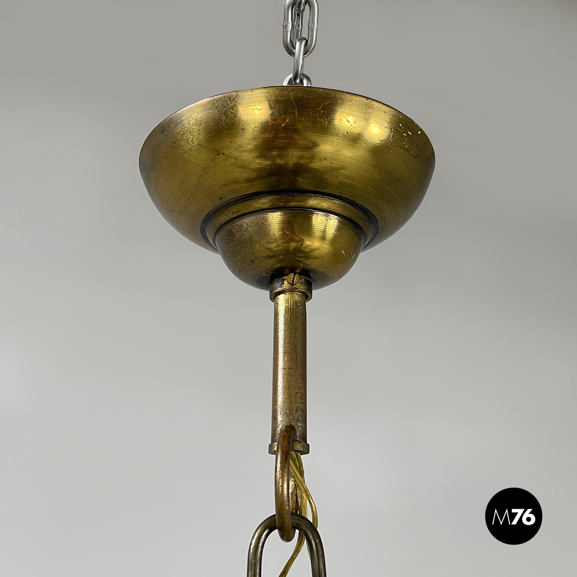 Lampadario a gocce in vetro e ottone, 1900-1950 ca.