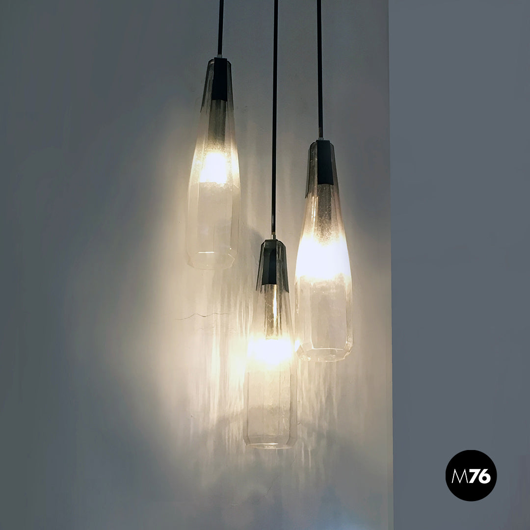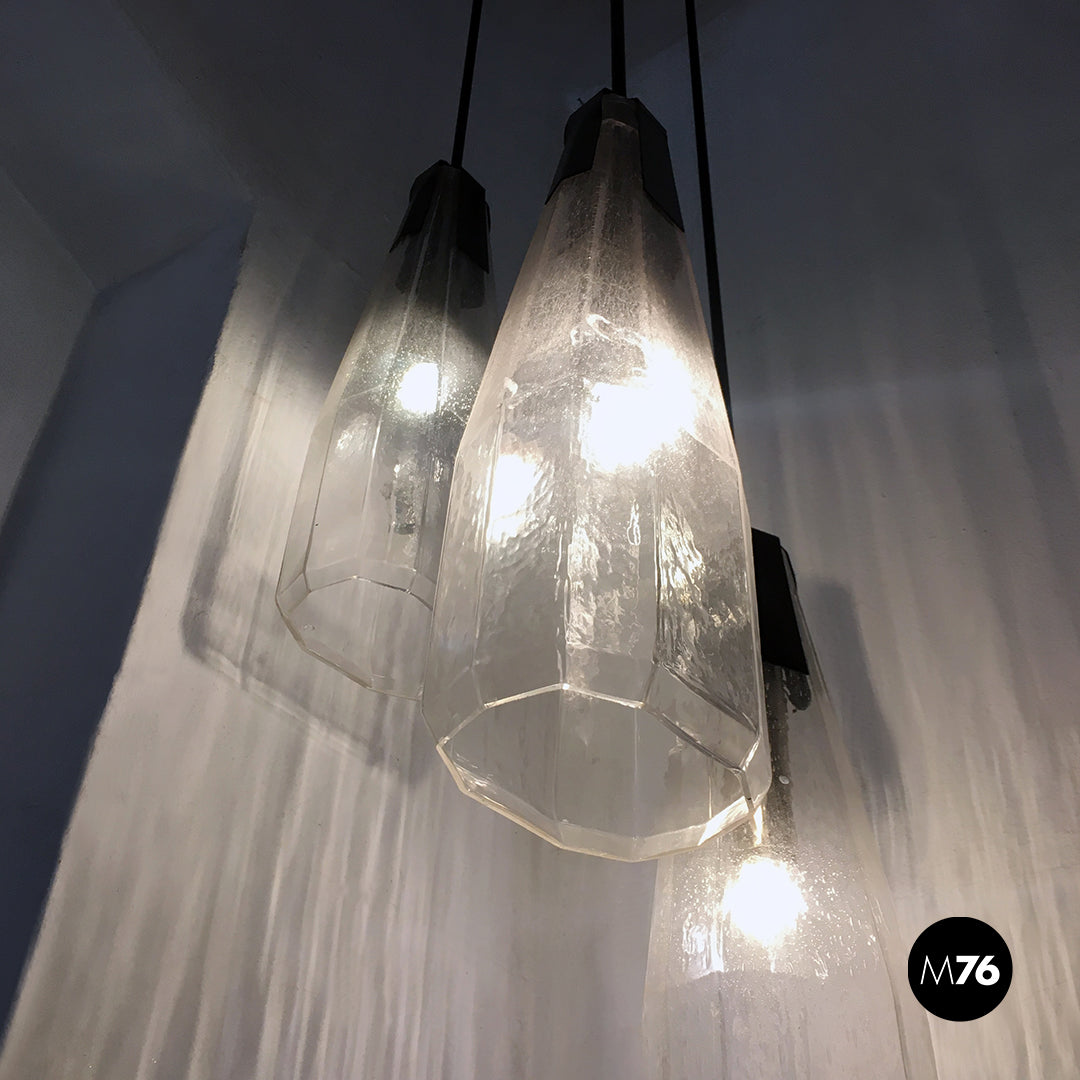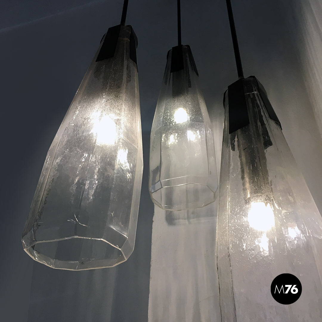 Lampadario a tre luci in vetro di Murano, 1970 ca.
