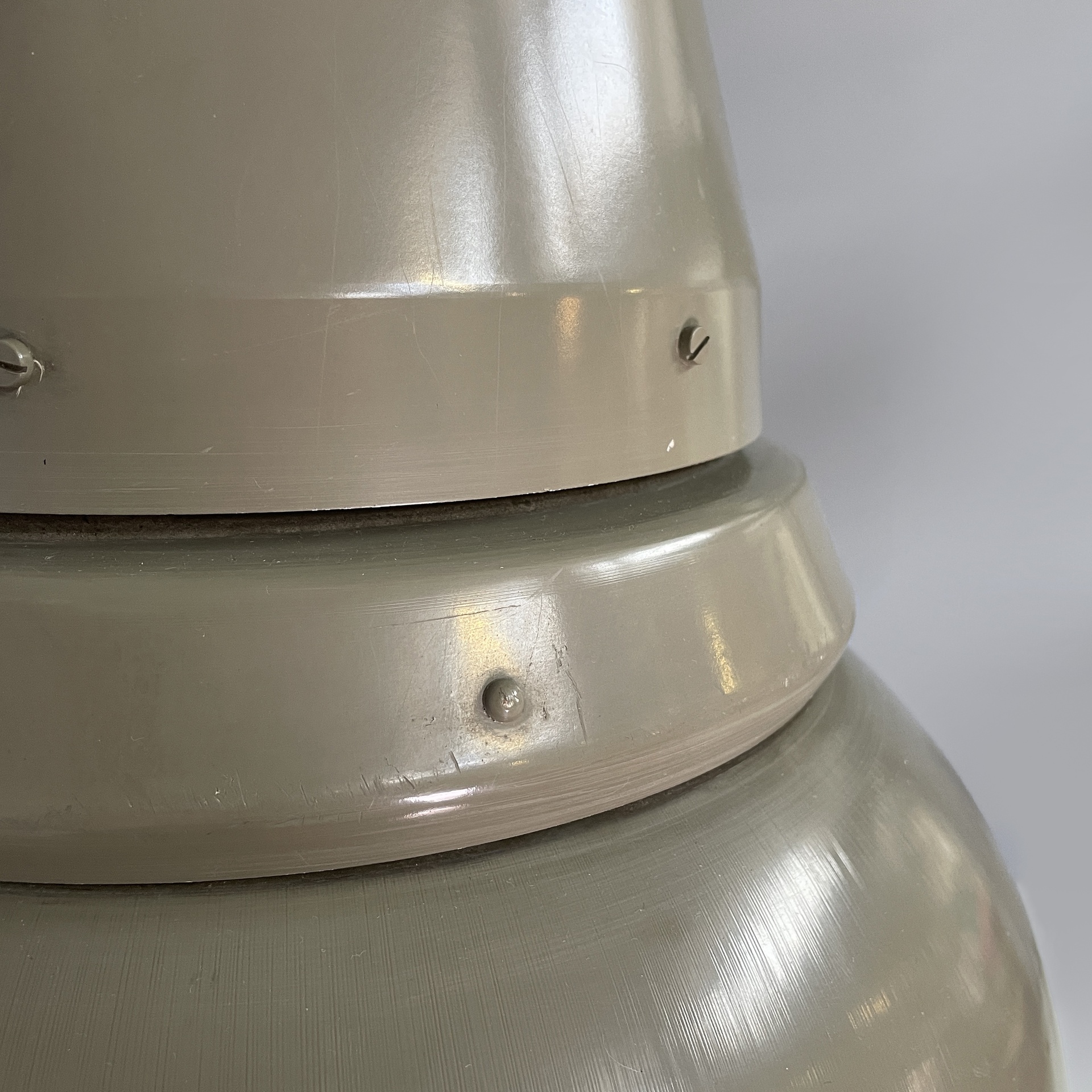 Prodotto da Fabbrica Apparecchi Illuminazione Greco nel 1960 ca. e disegnato da Oscar Torlasco per la pineta di Arenzano. Vincitore del Compasso d’Oro nel 1959. Pubblicato nel libro “la Pineta di Arenzano. Architettura e paesaggio. Storia di un’utopia mancata”.