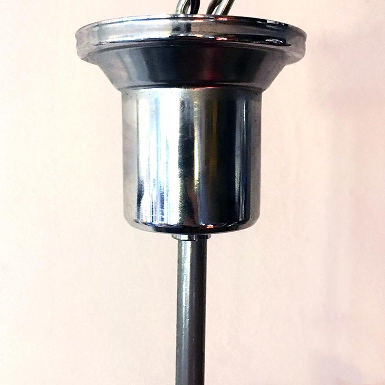 Lampadario in cristallo e in acciaio cromato, 1970 ca.
