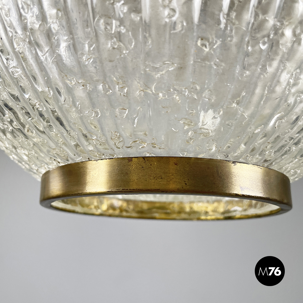 Lampadario in vetro lavorato, ottone e metallo, 1950 ca.