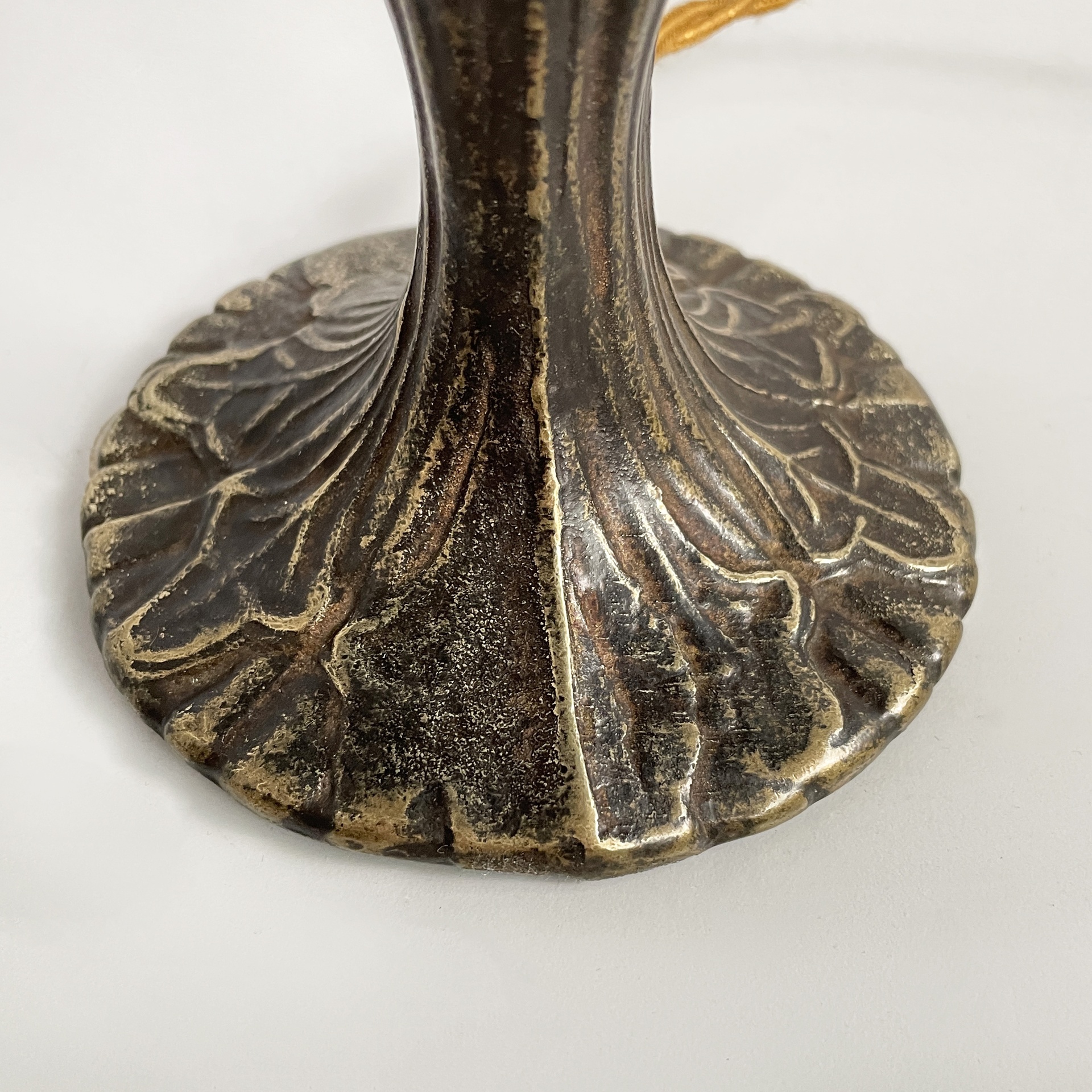 Condizioni vintage. Alcuni vetri del paralume presentano difetti. Leggeri segni sparsi.