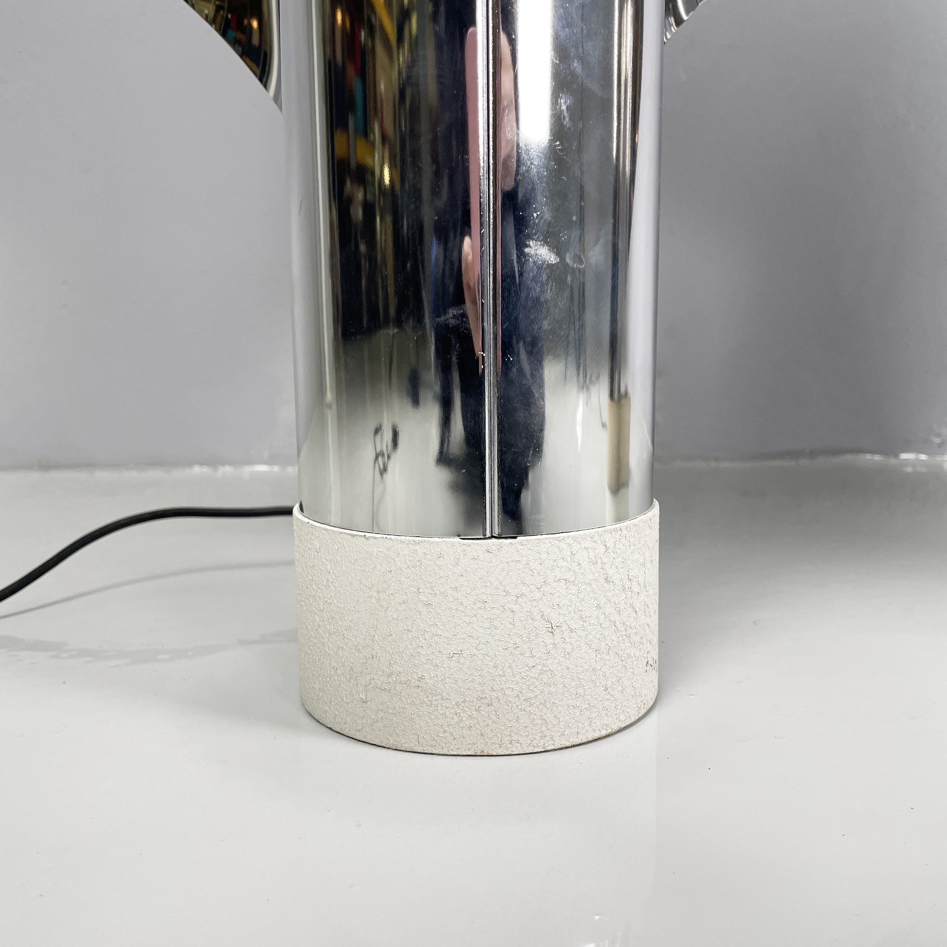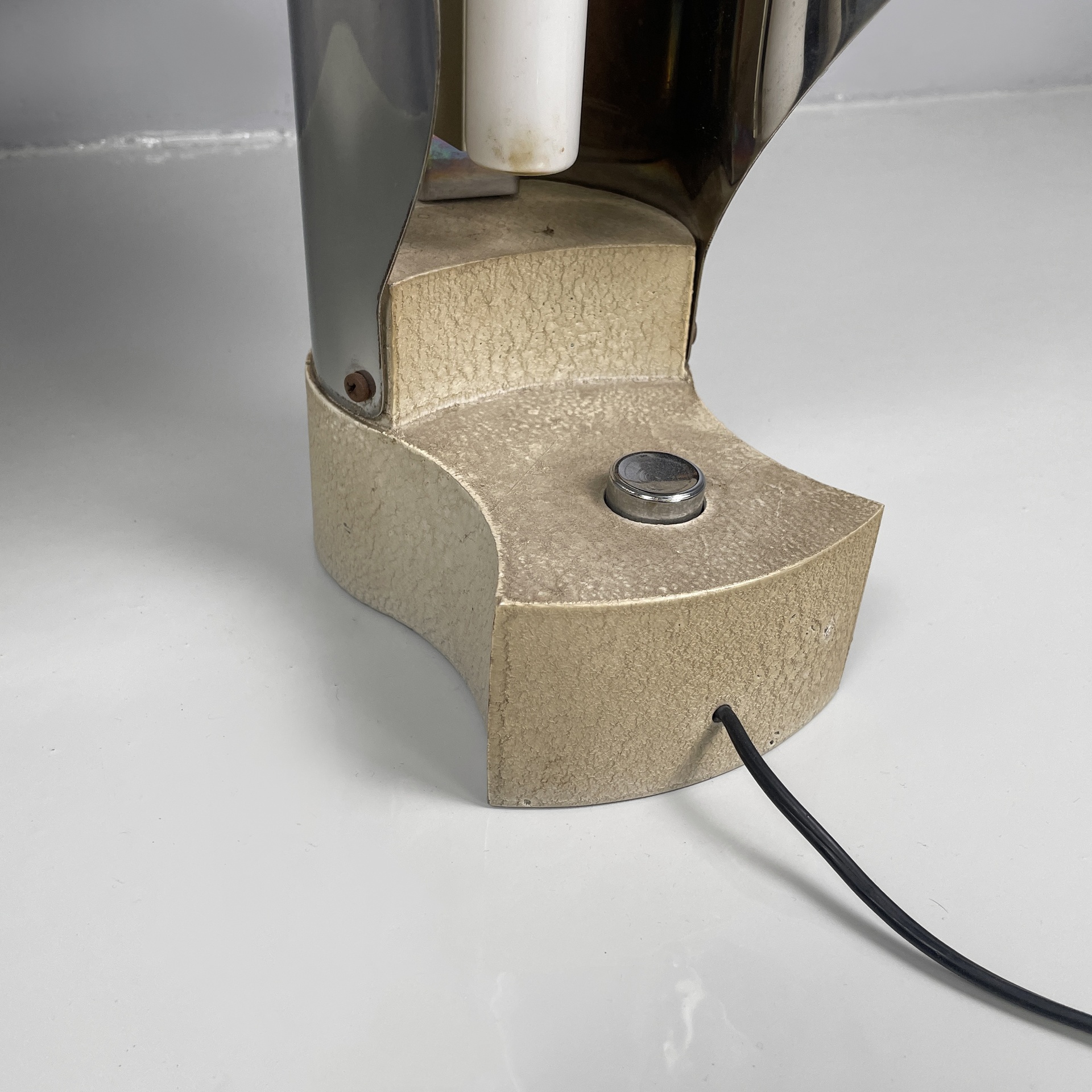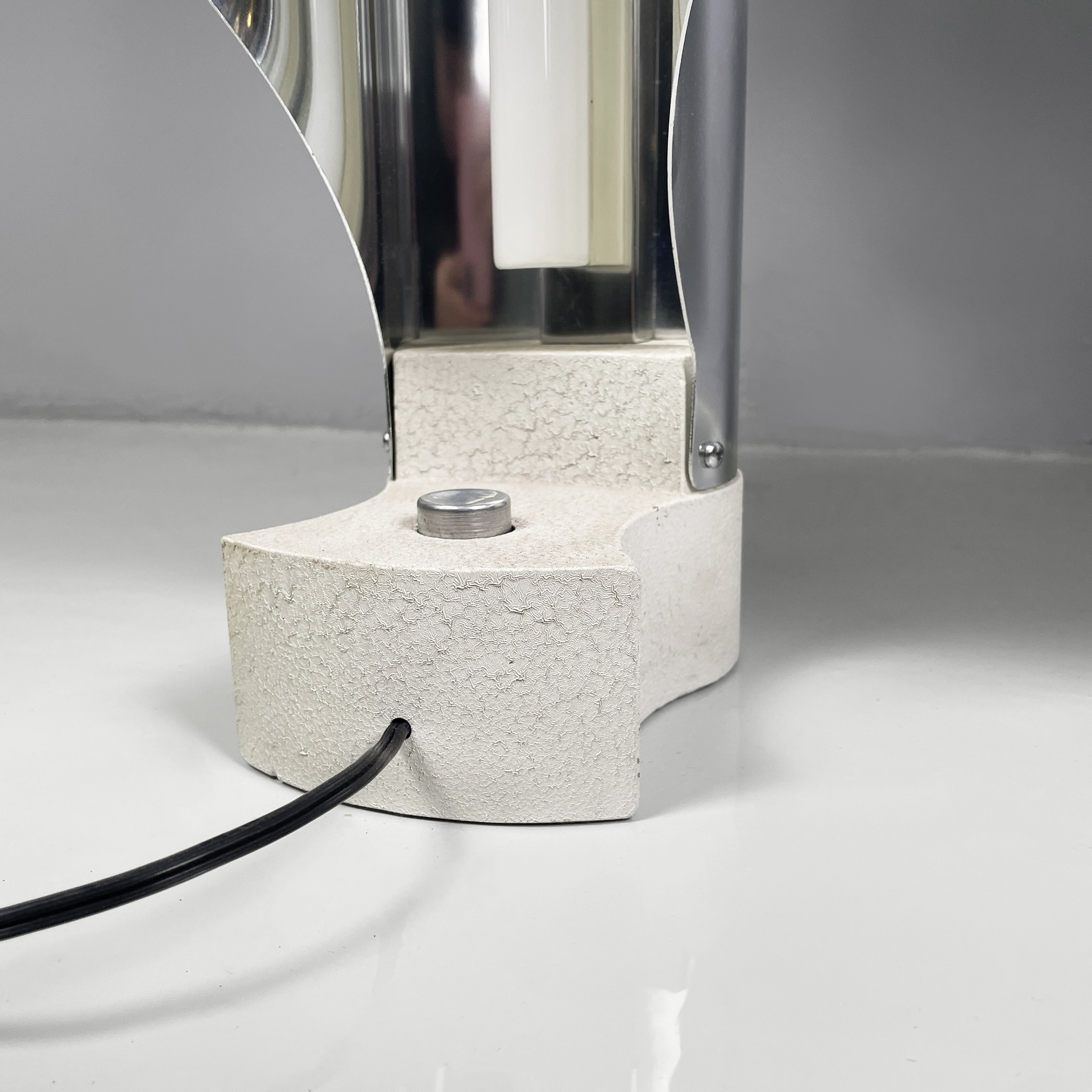 Buone condizioni segni sparsi dati dal tempo sull’alluminio. Una base è più scura. Il neon della lampada con base più scura attualmente non funzionante.