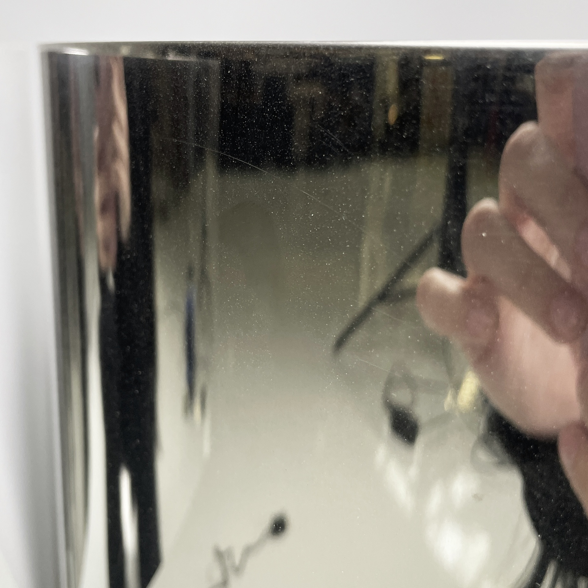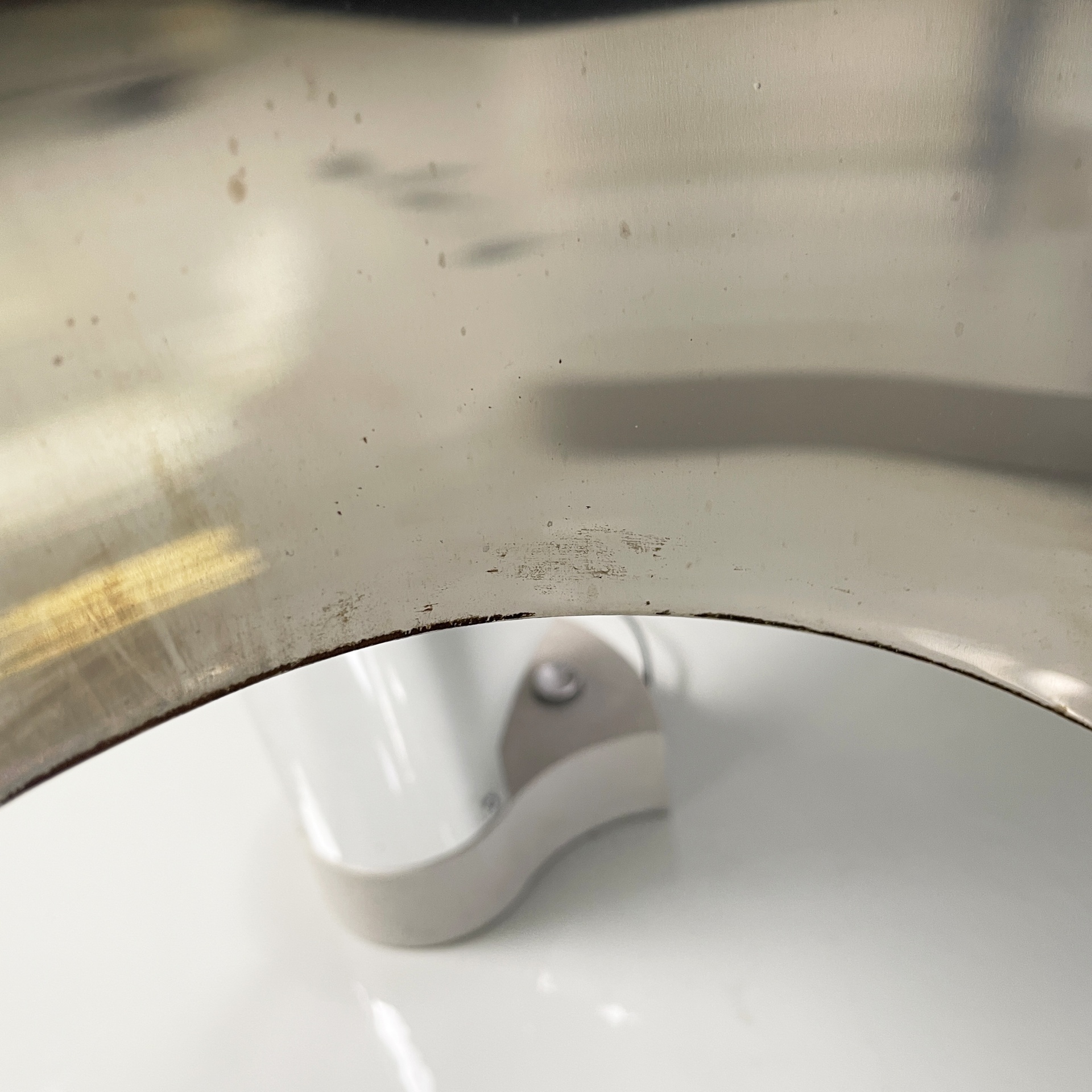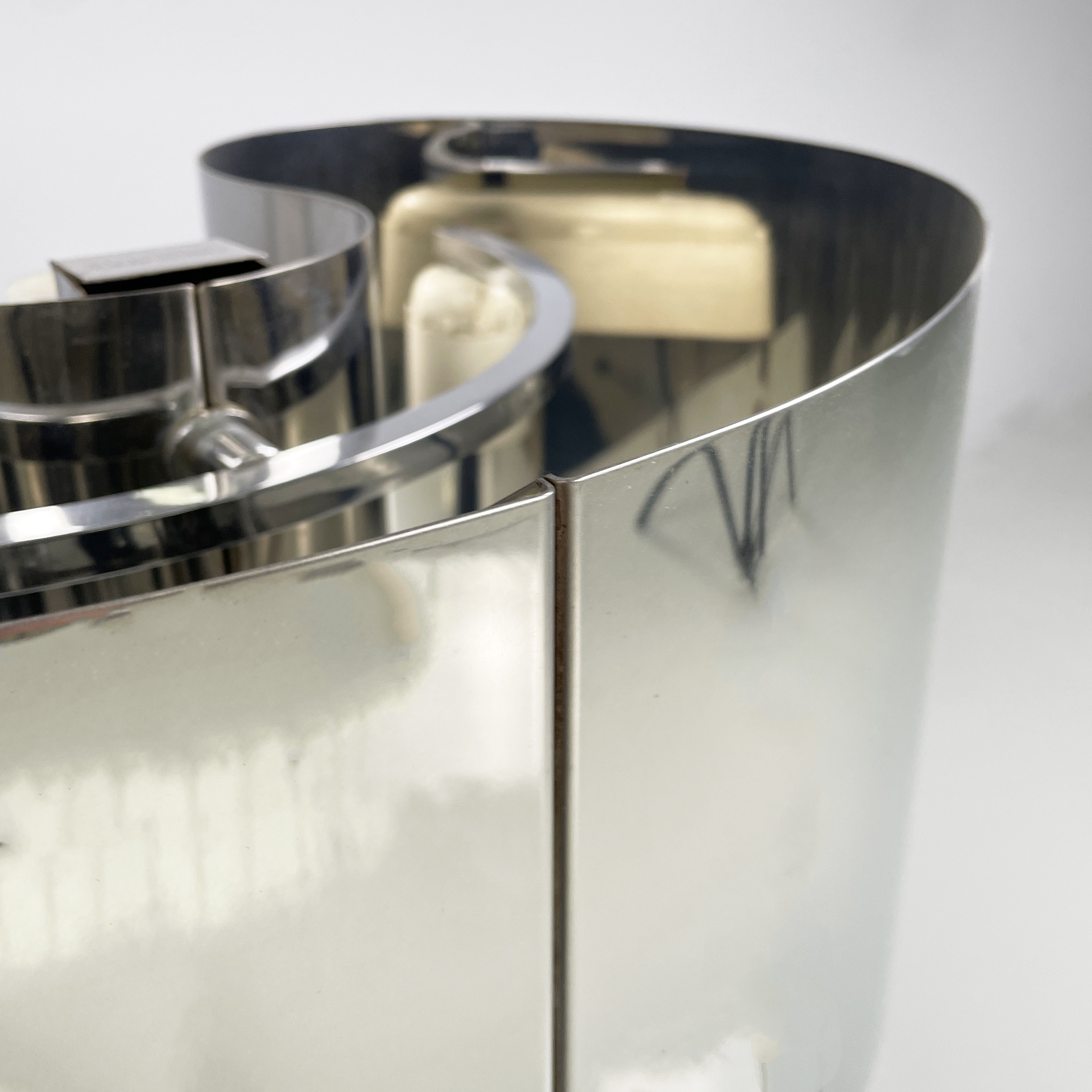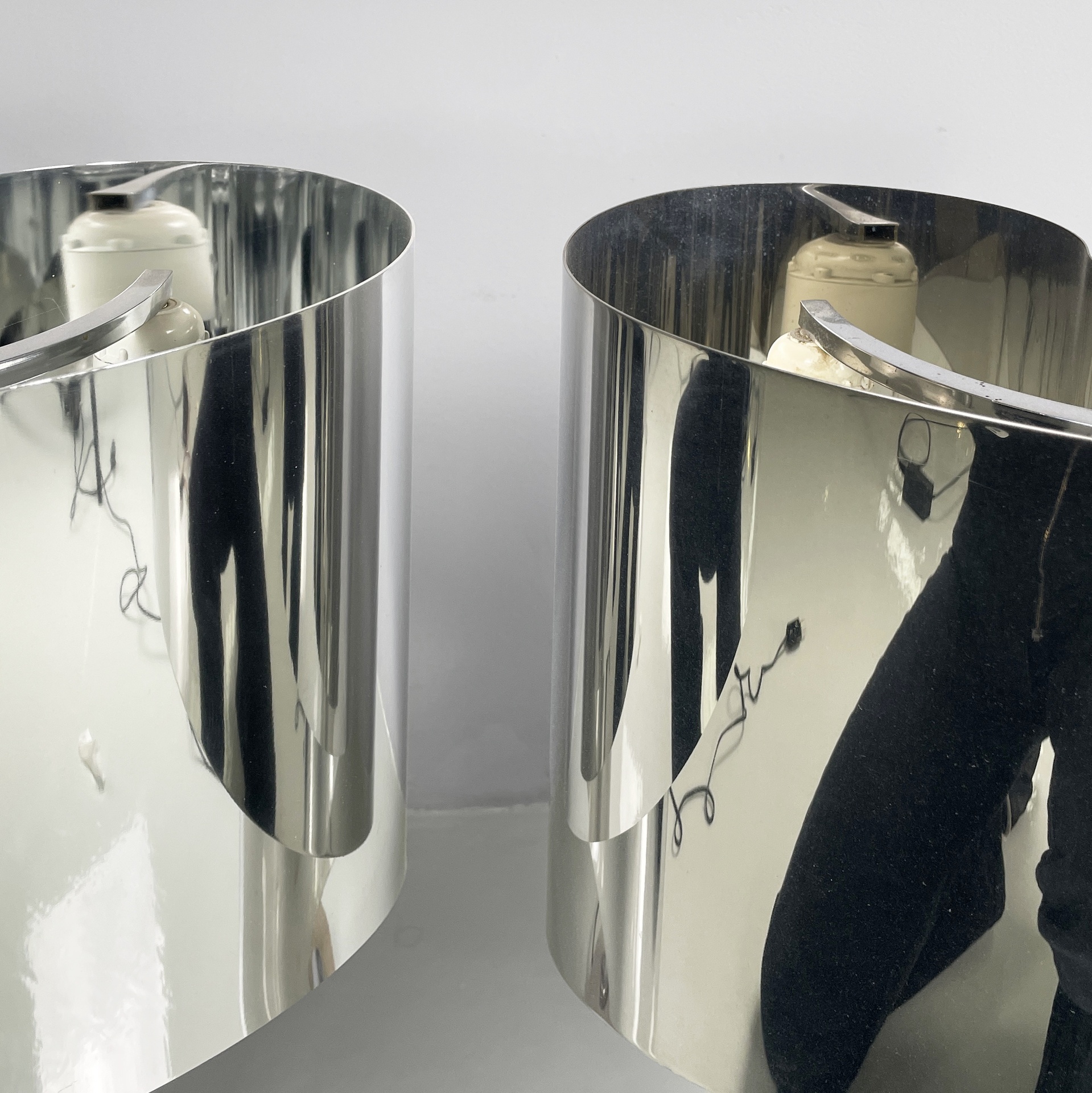 Buone condizioni segni sparsi dati dal tempo sull’alluminio. Una base è più scura. Il neon della lampada con base più scura attualmente non funzionante.