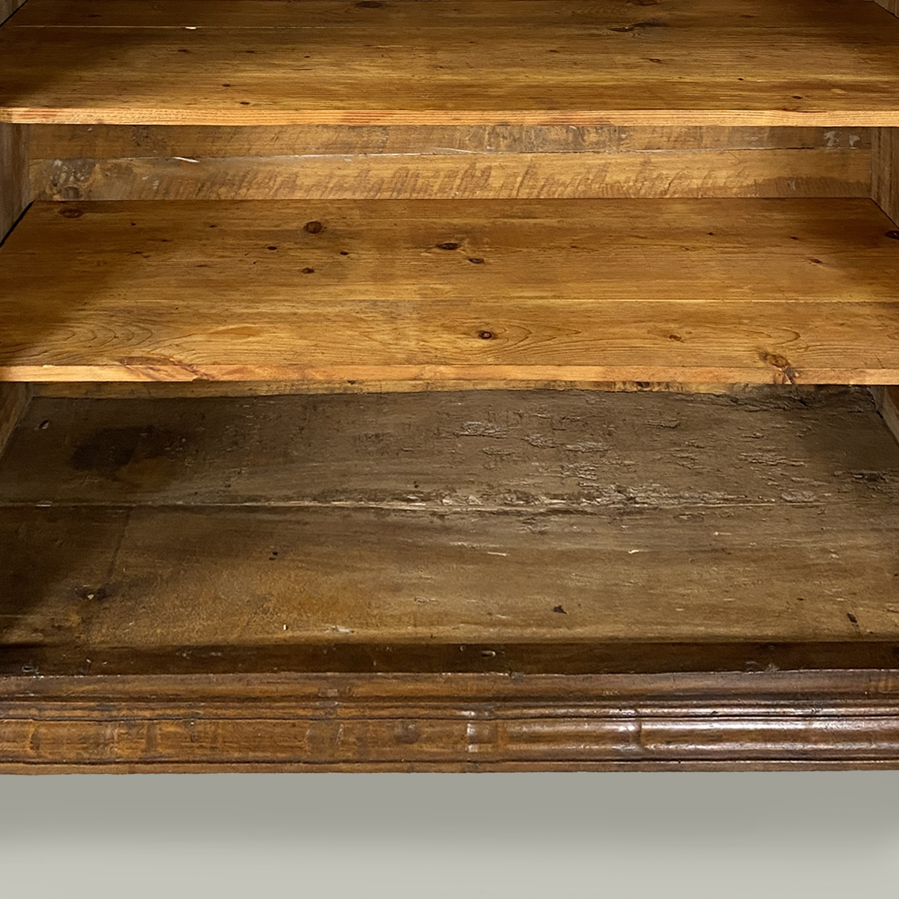 Italian antique wooden storage unit or sideboard with relief design 1600s.