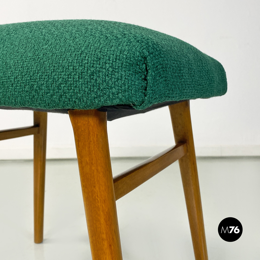 Panca o poggiapiedi con seduta di forma rettangolare imbottita e rivestita con nuovo tessuto di cotone verde bosco. Zampe in legno massello di faggio a sezione tonda.
