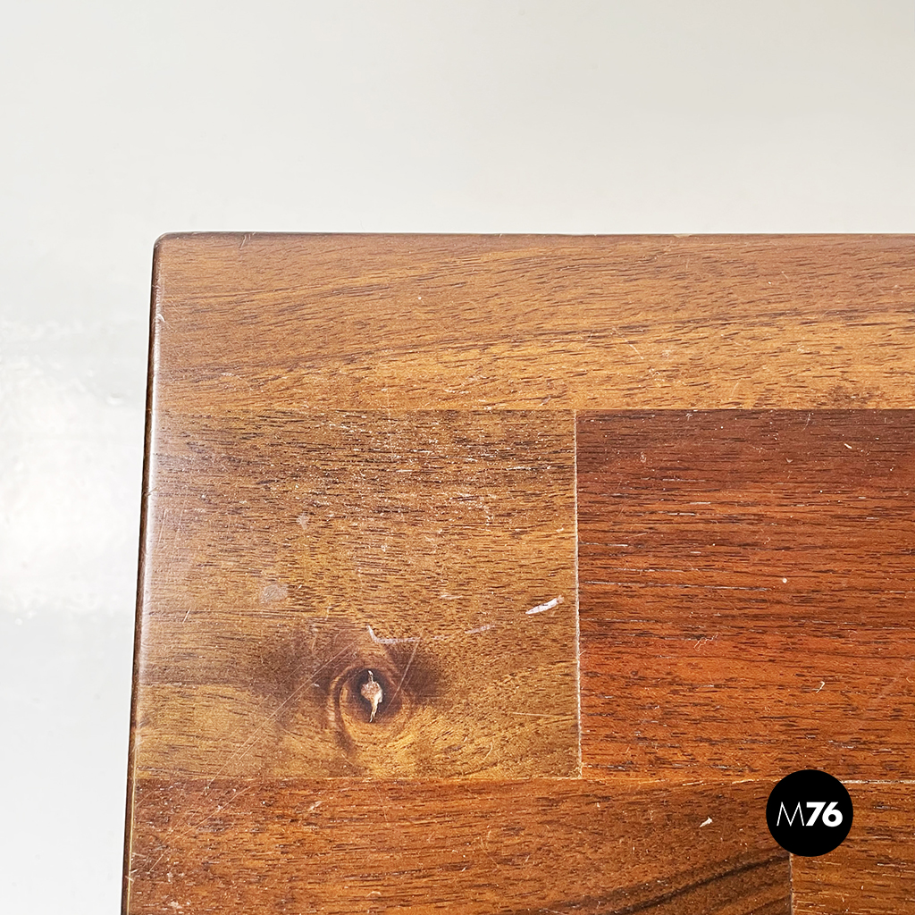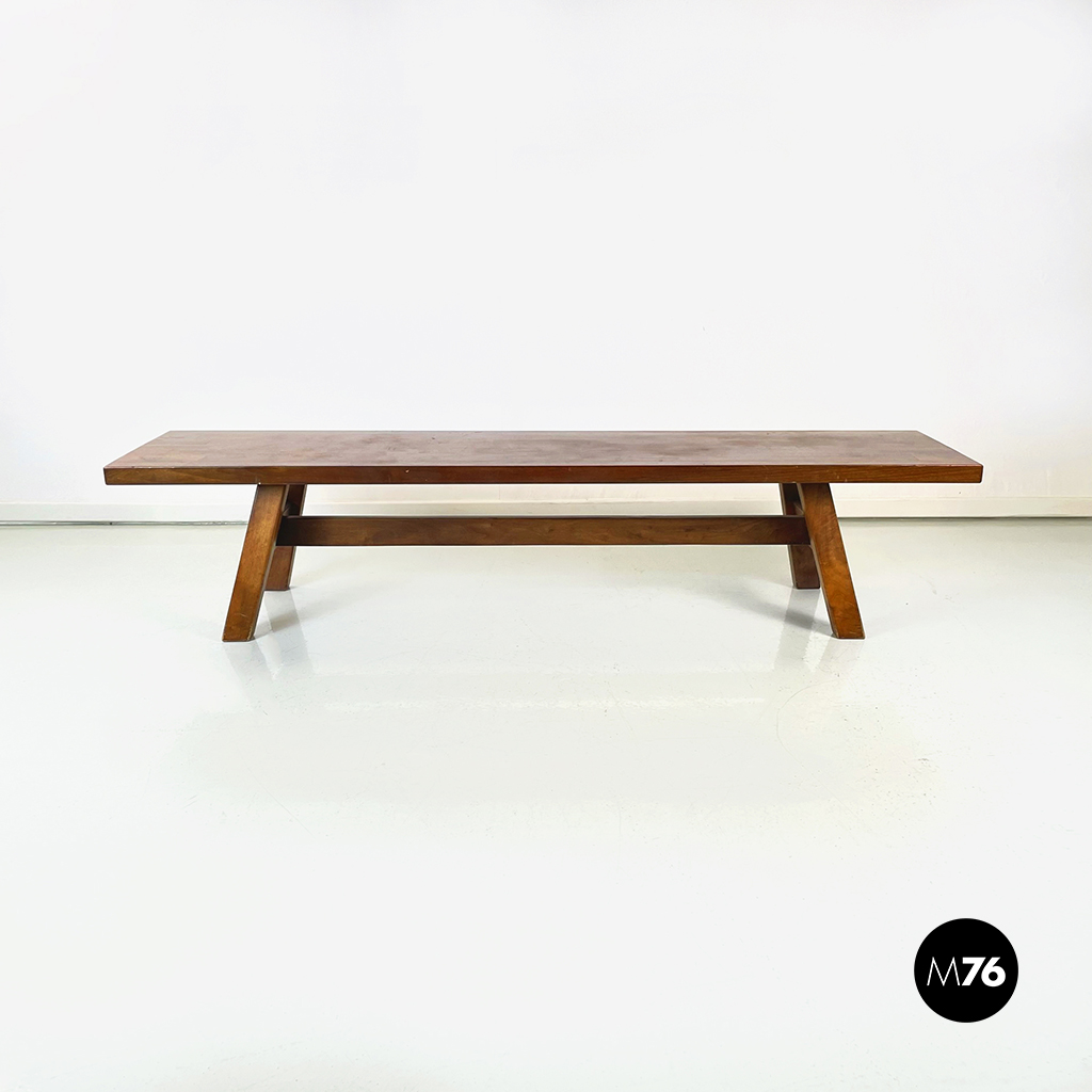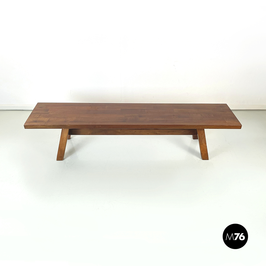 Panca Torbecchia interamente in legno massello. La seduta rettangolare è sostenuta dalle quattro gambe a sezione rettangolare e dalle traversine.