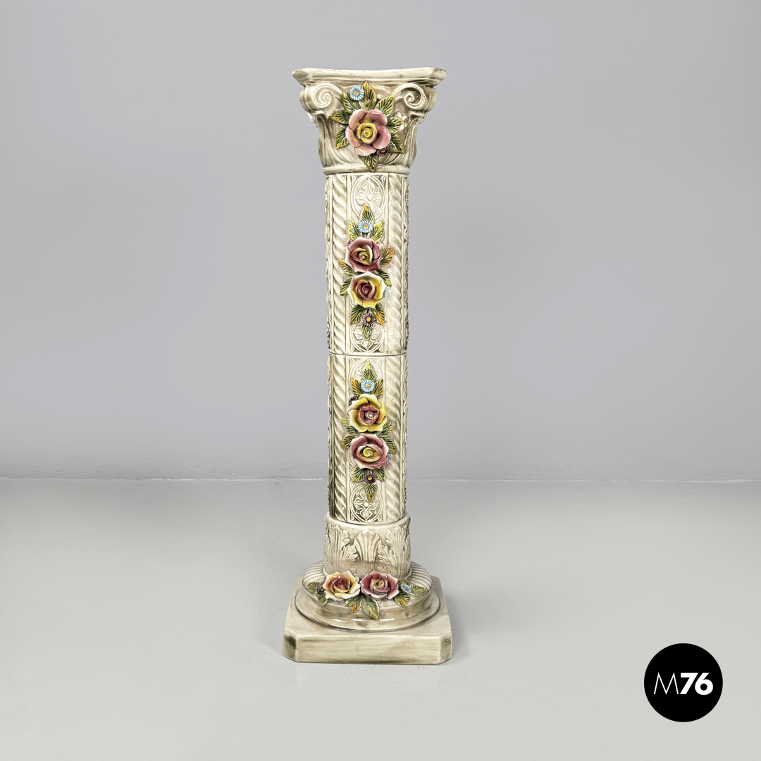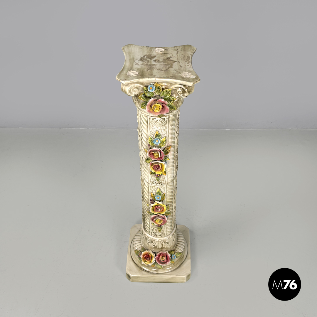 Piedistallo in ceramica con fiori, 1970 ca.