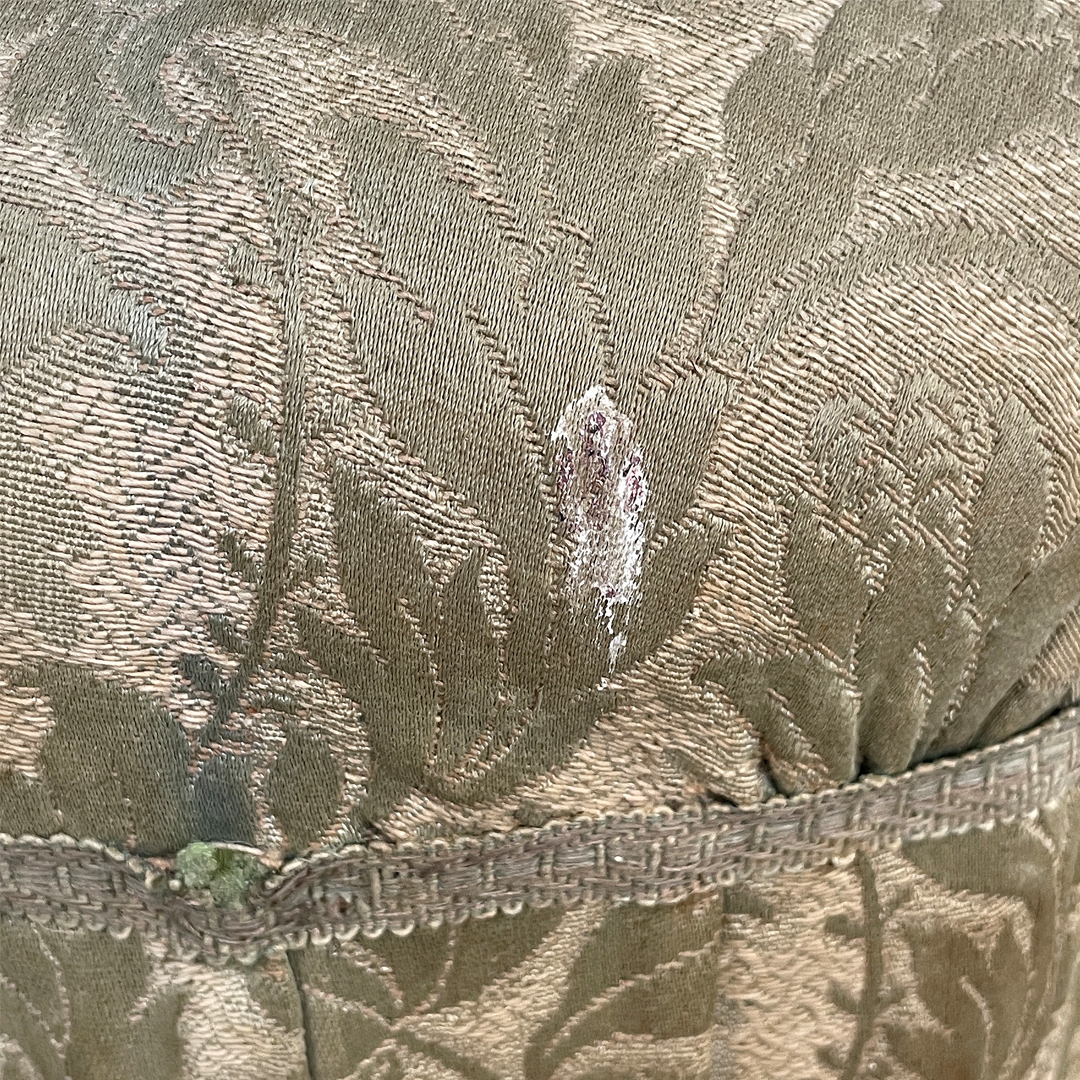 Condizioni vintage, segni sparsi dati dal tempo e dall’utilizzo. Sul tessuto sono presenti macchie.