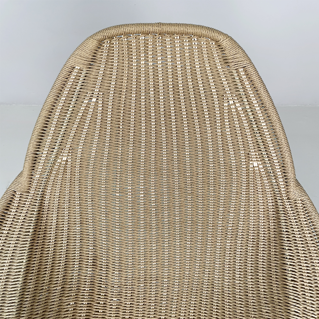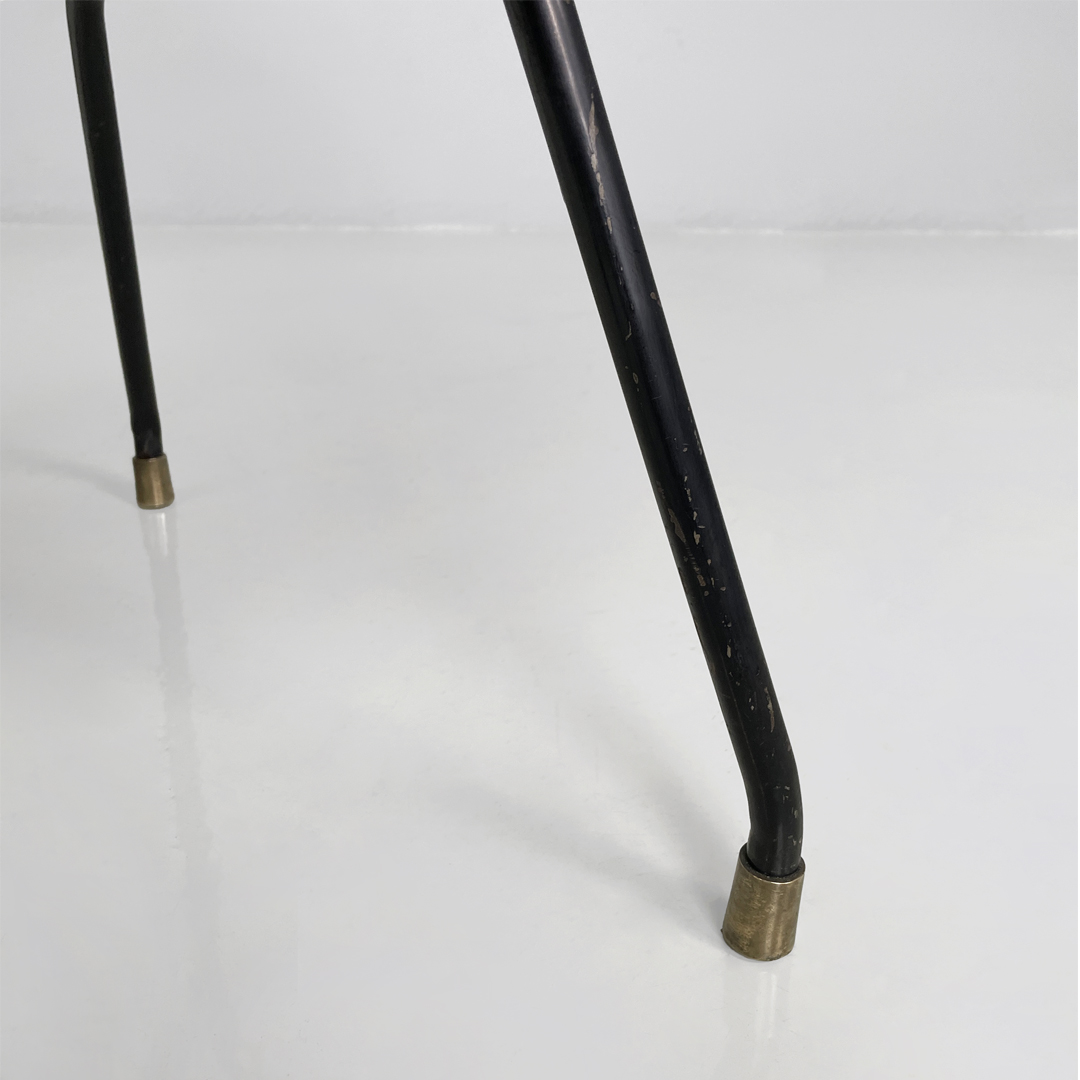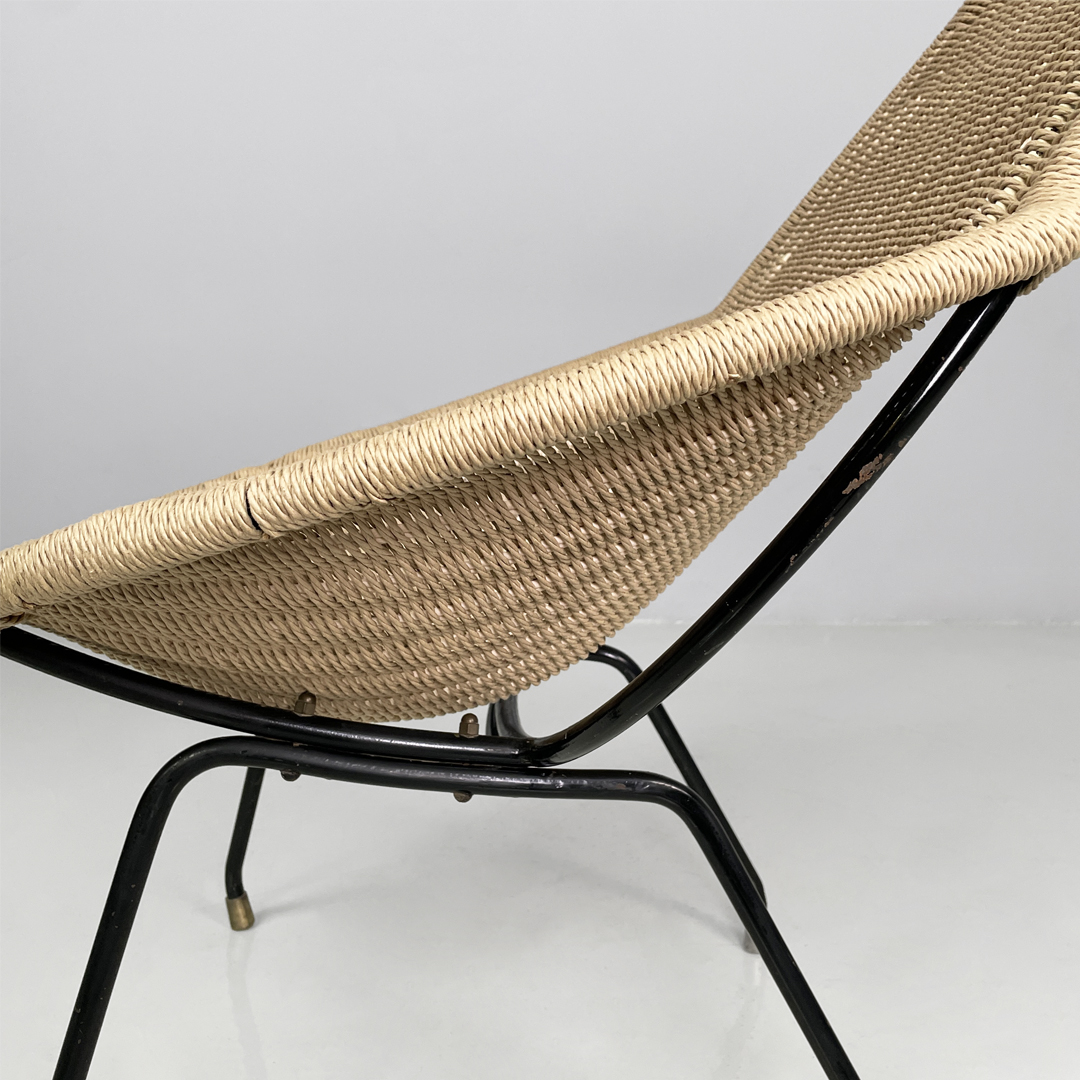 Poltrona modello Du 50 in metallo e paglia. La struttura è in tubo di acciaio laccato nero con piedini tondi in ottone. La seduta è rivestita in paglia intrecciata.