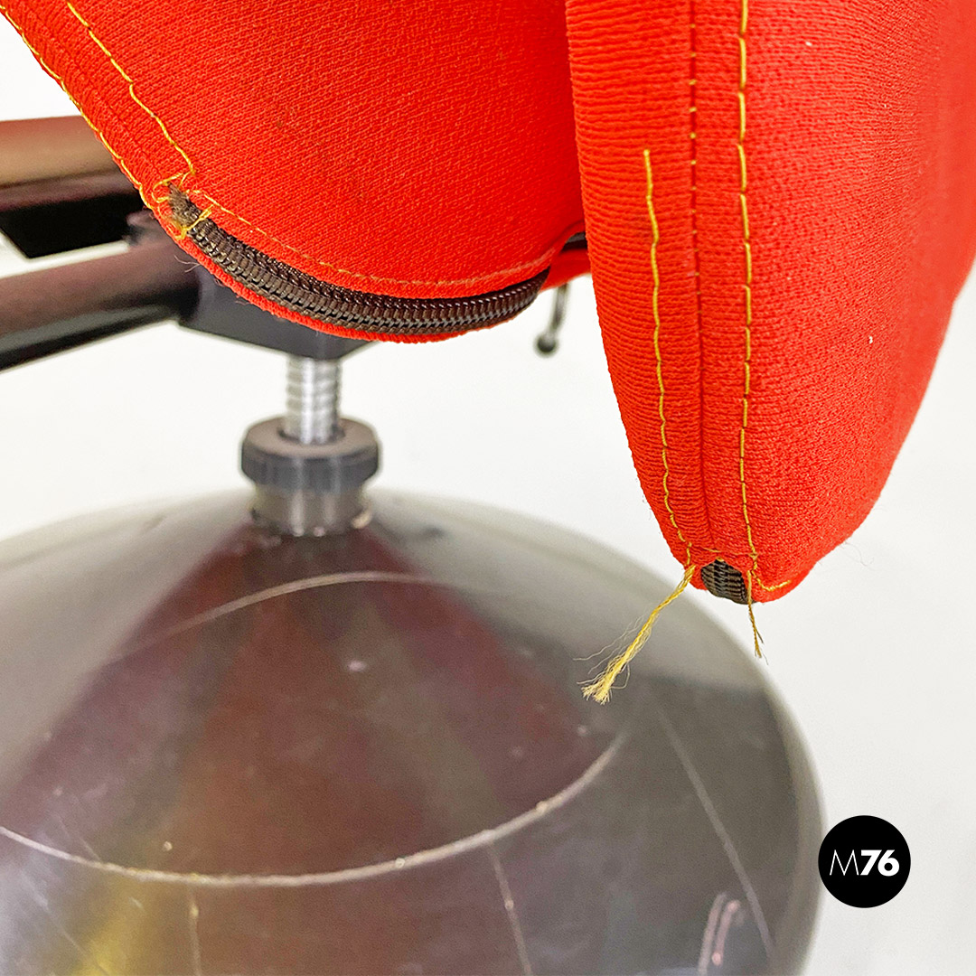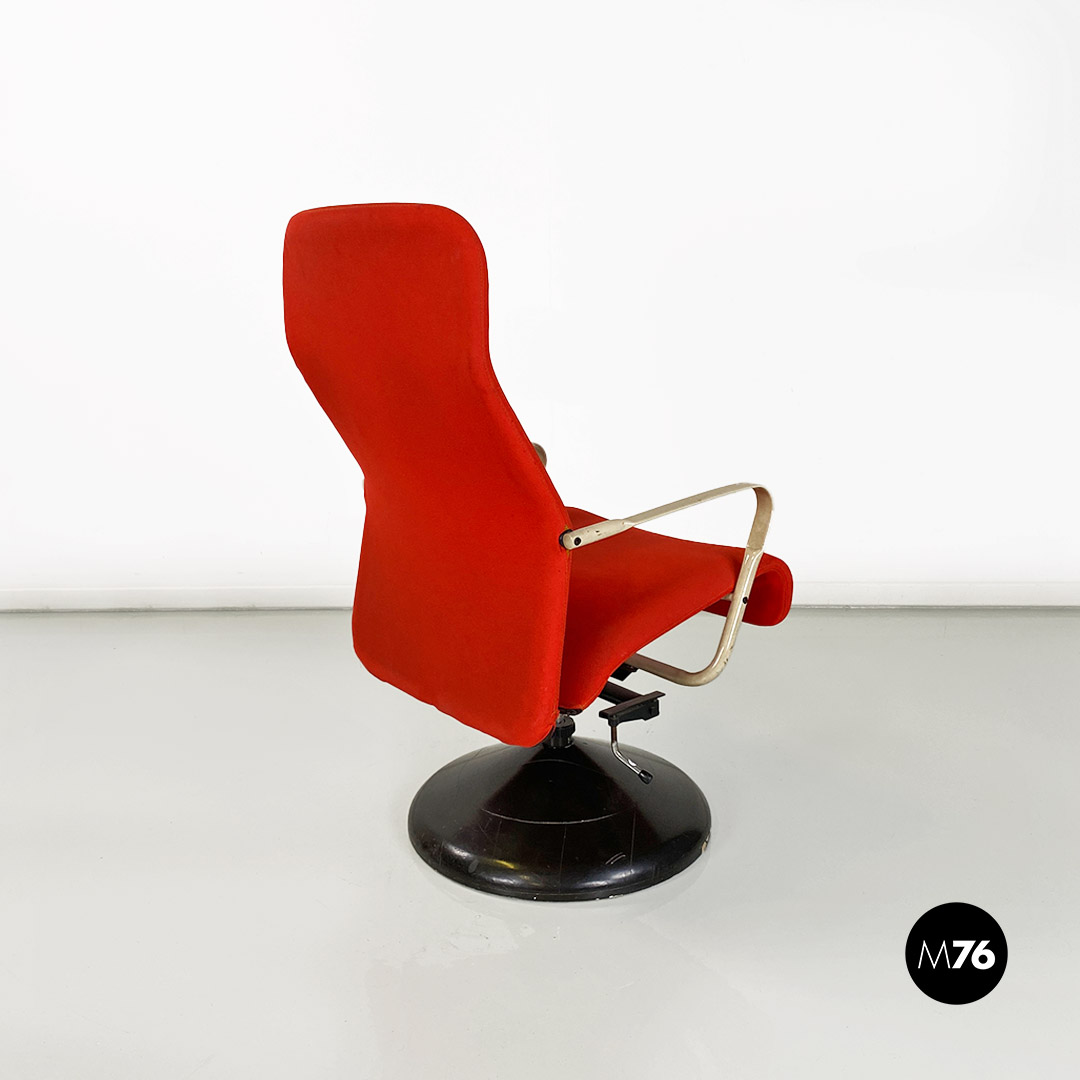 Poltrona girevole in tessuto rosso, 1980 ca.
