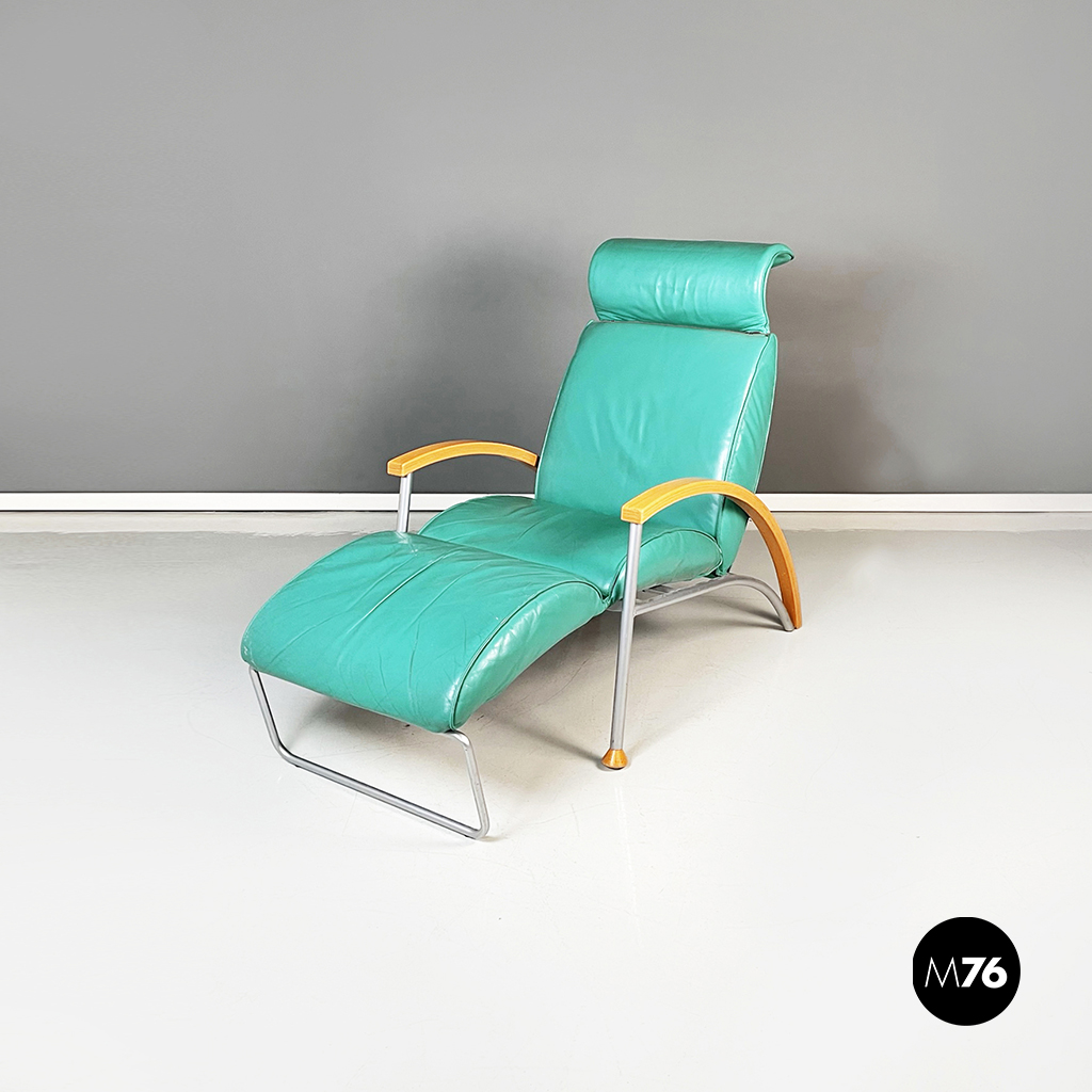 Poltrona in pelle verdeacqua allungabile, 1980 ca.