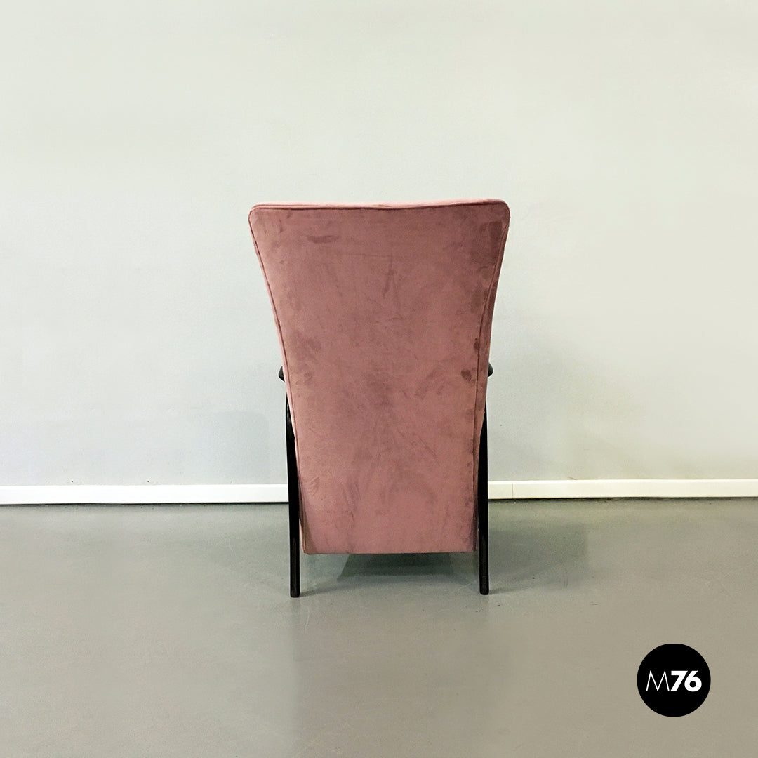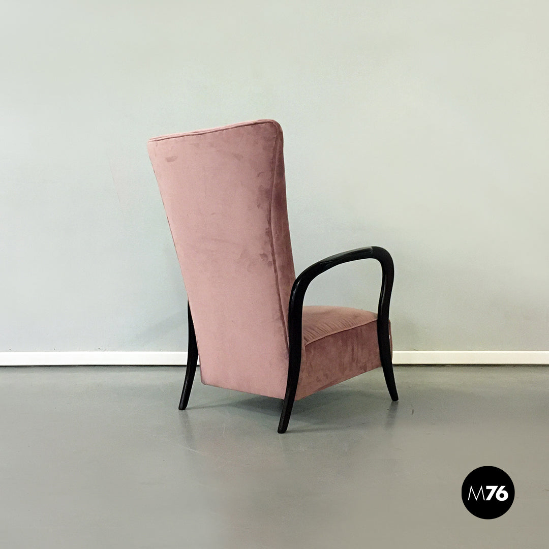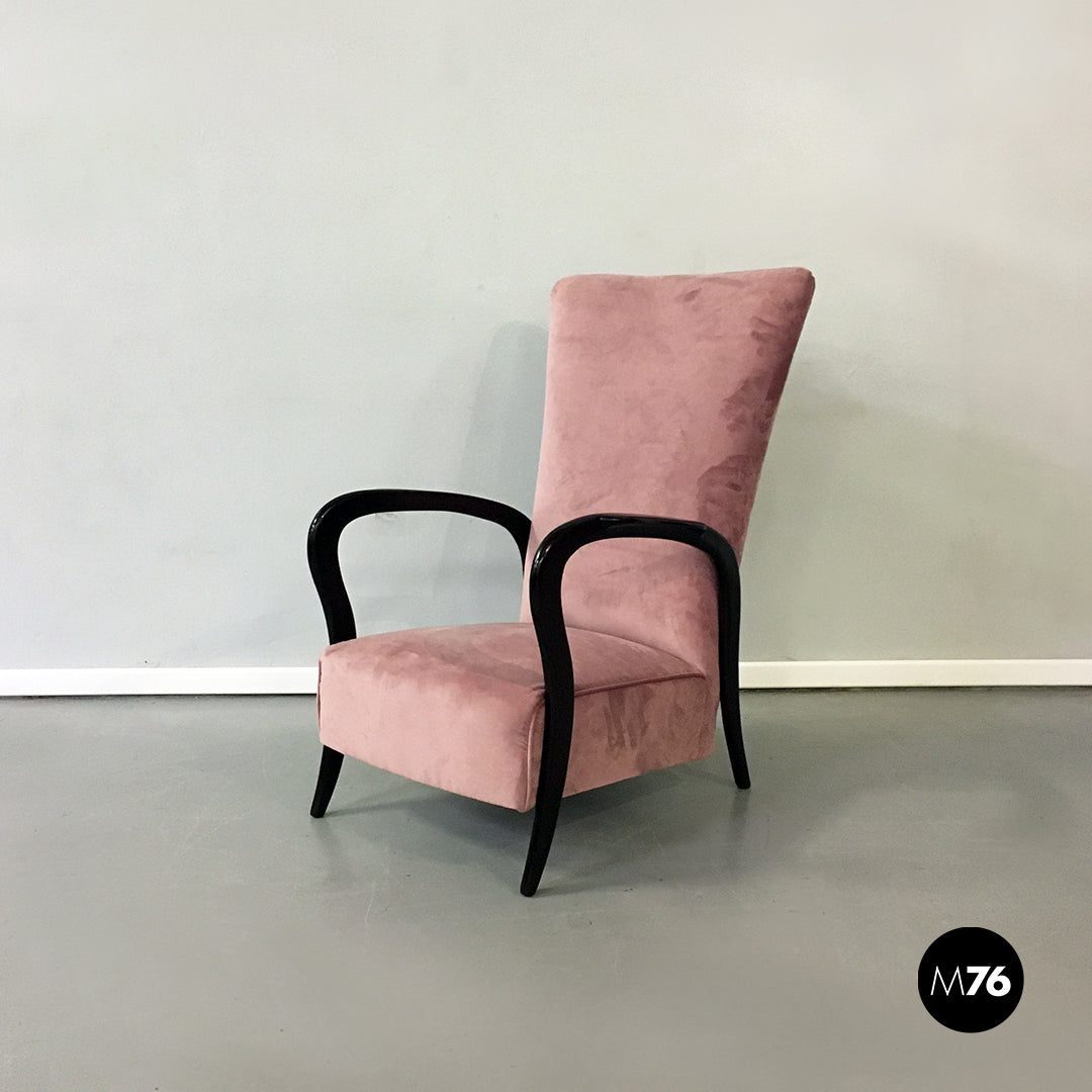 Poltrona in velluto rosa e legno, 1950 ca.