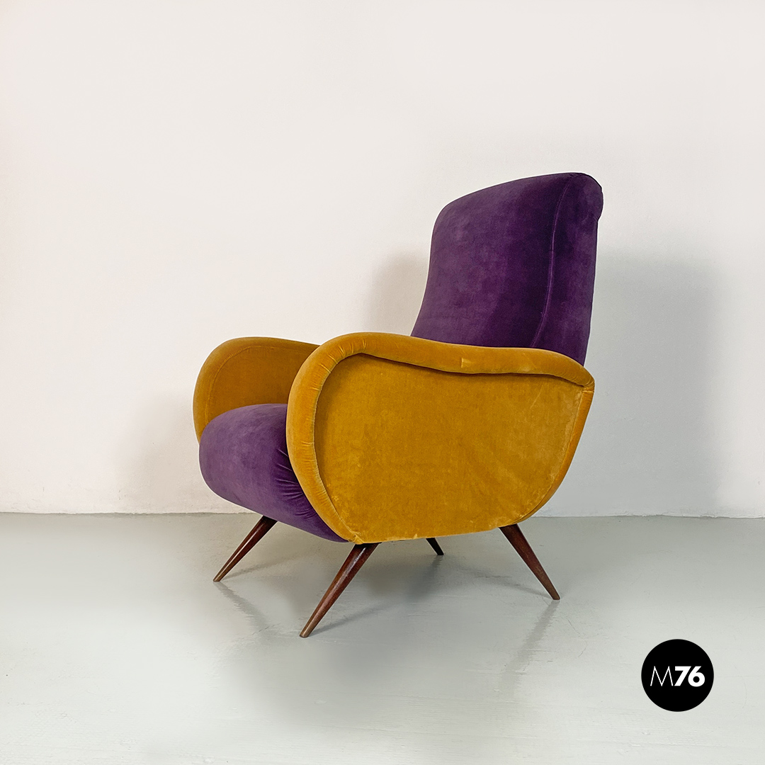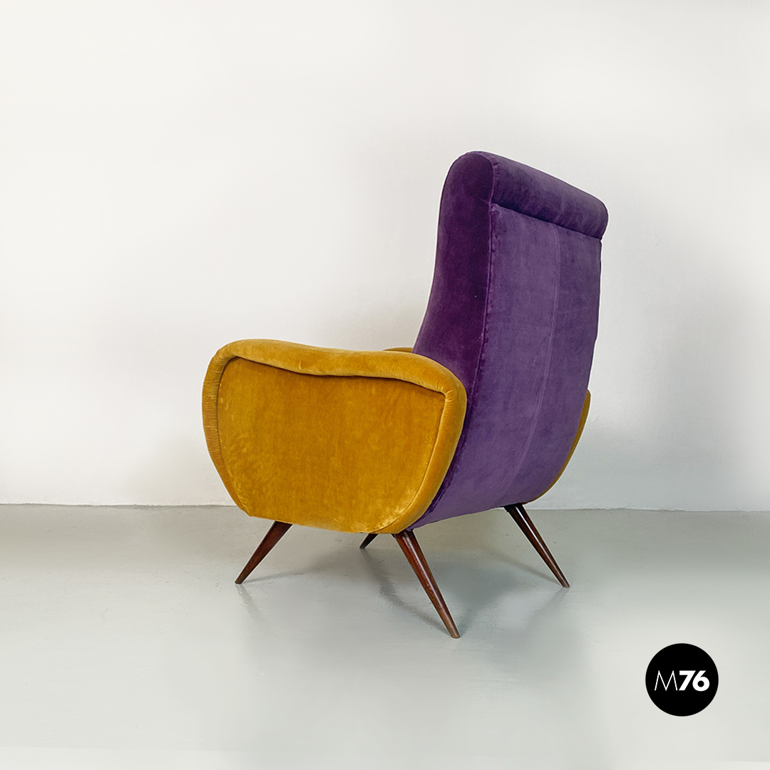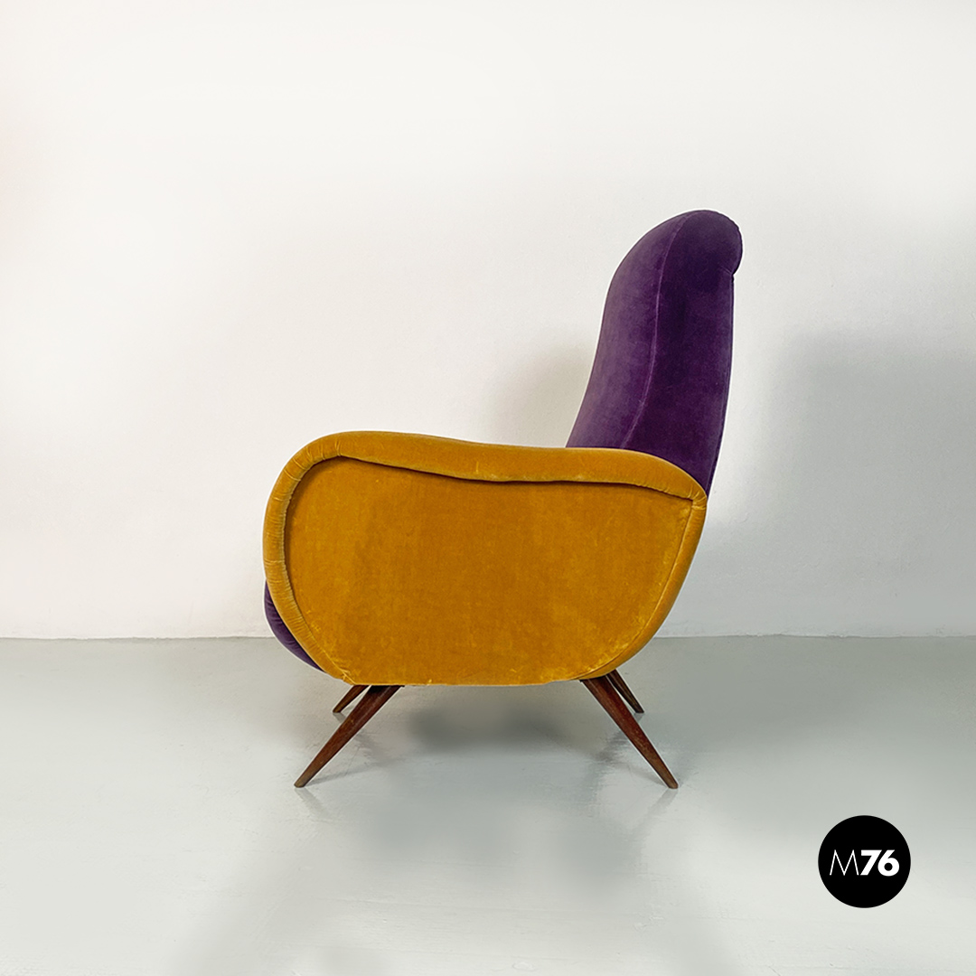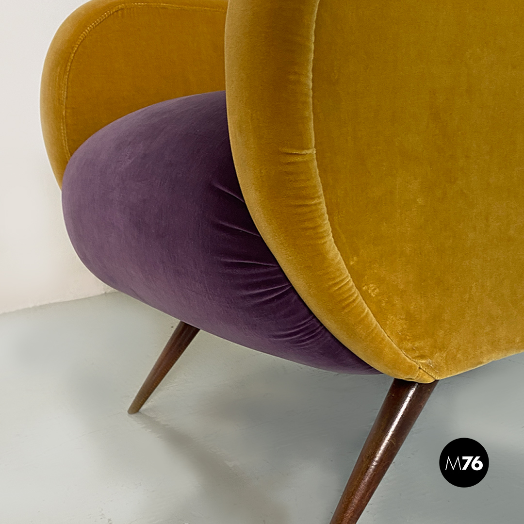 Poltrona in velluto viola e giallo, 1960 ca.