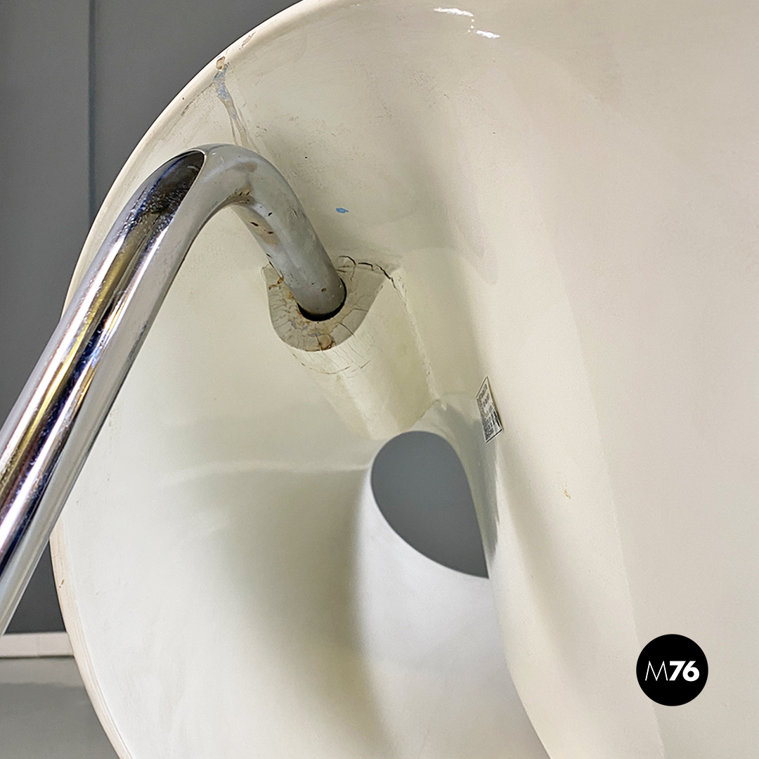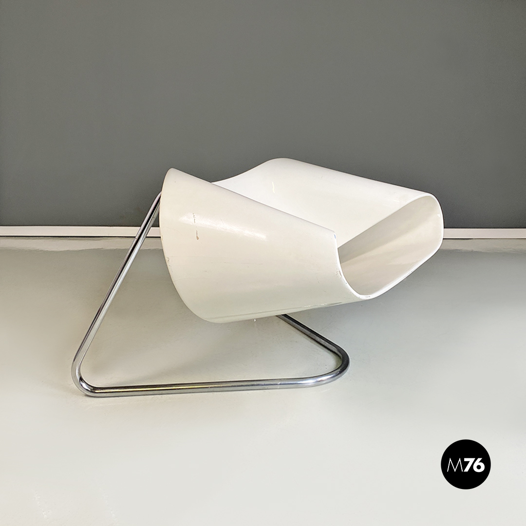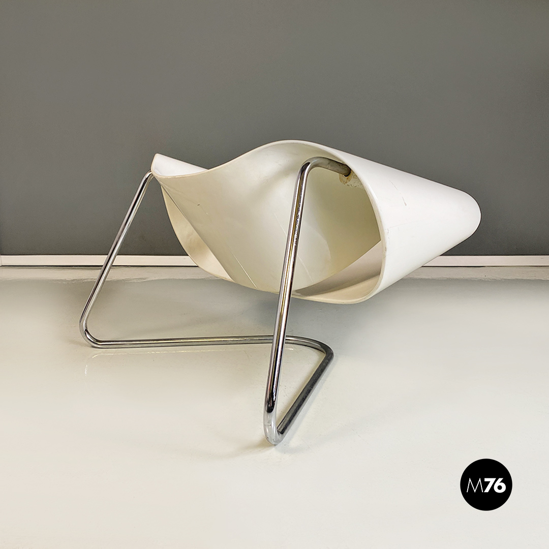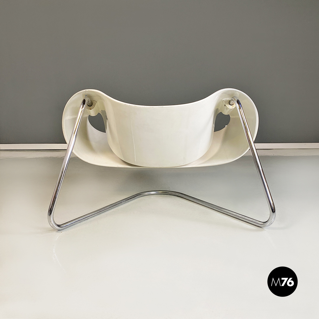 Poltrona modello Nastro CL9 bianca composta da un unico nastro in fibra di vetro che funge da seduta e si blocca liberamente su una struttura in tubolare di acciaio tramite un attacco per supporti antiurto.