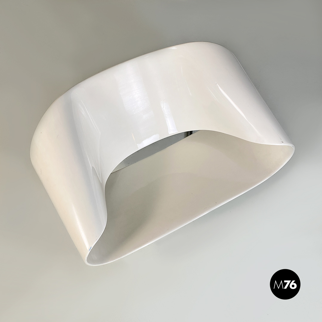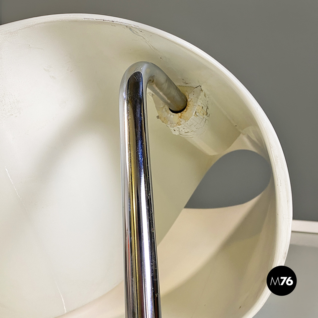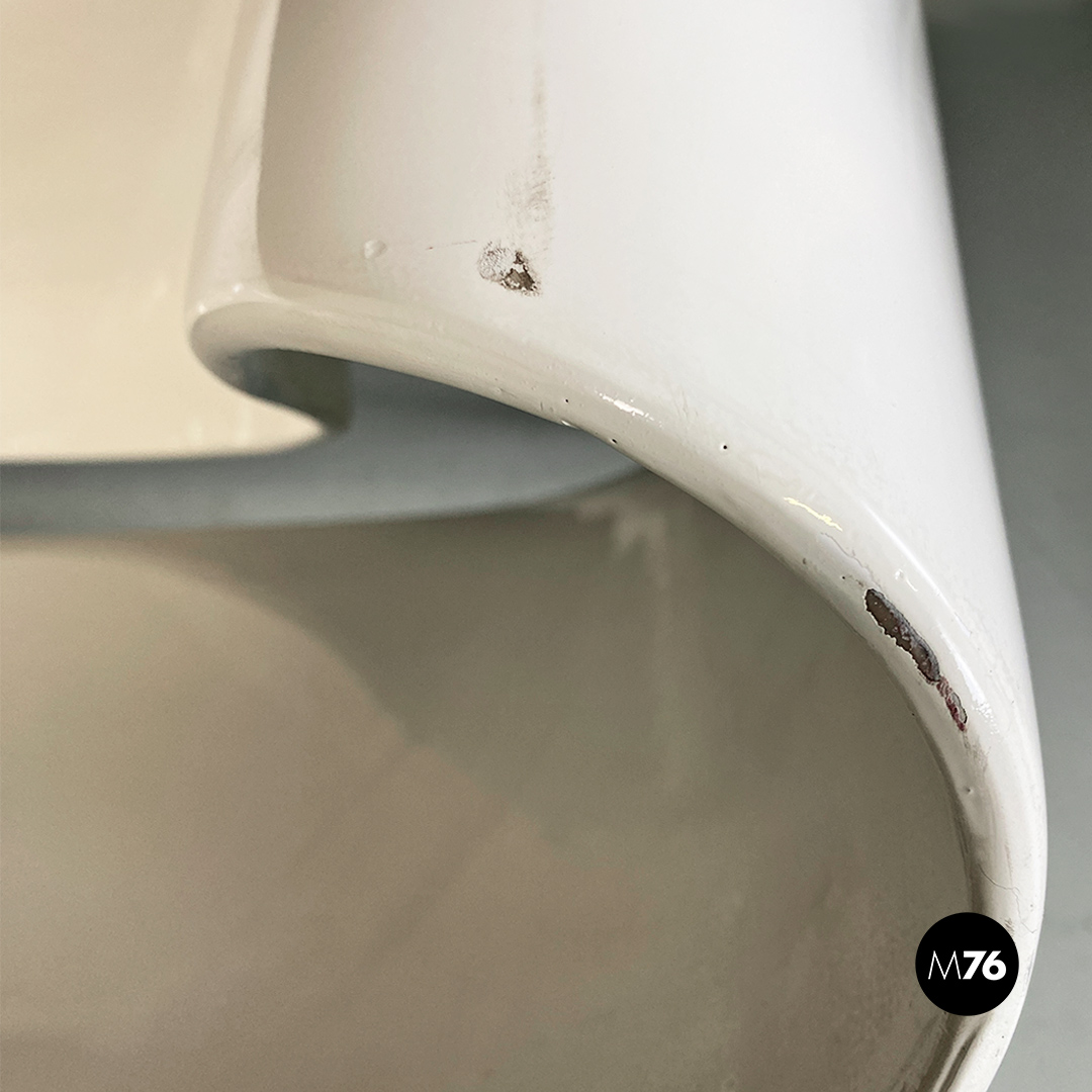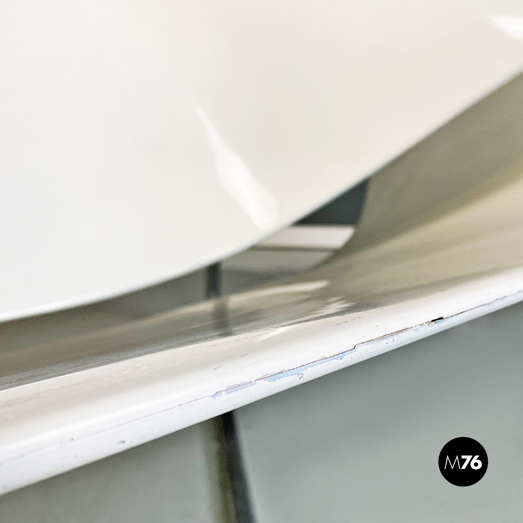Poltrona modello Nastro CL9 bianca composta da un unico nastro in fibra di vetro che funge da seduta e si blocca liberamente su una struttura in tubolare di acciaio tramite un attacco per supporti antiurto.