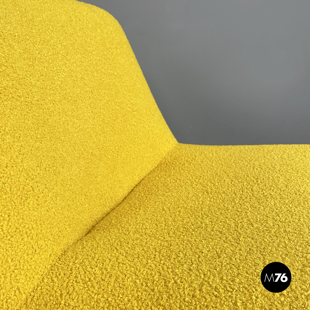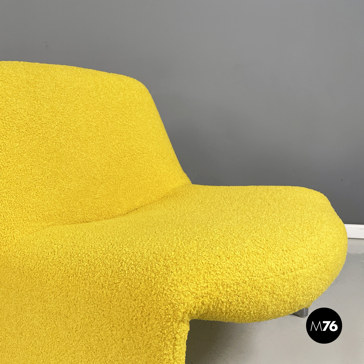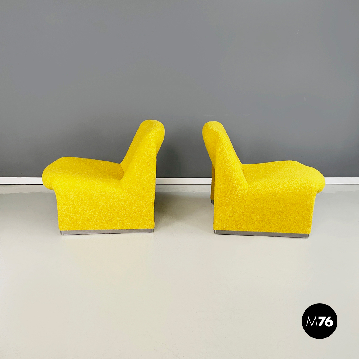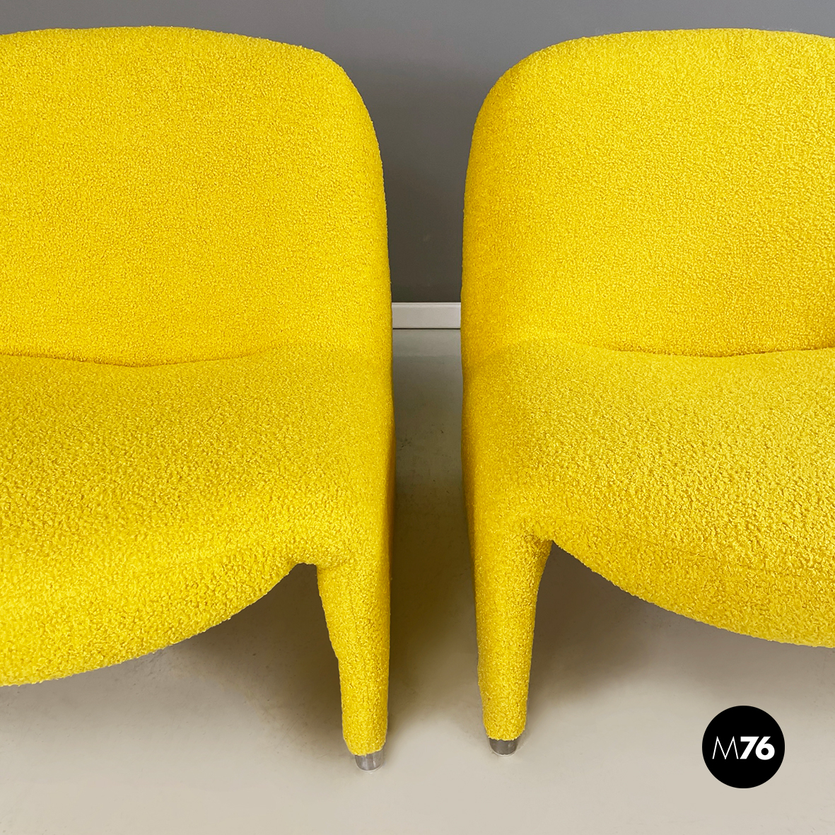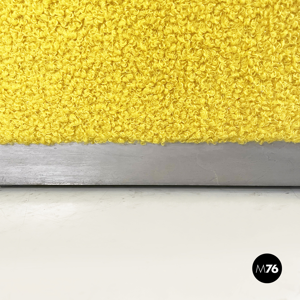 Coppia di poltrone modello Alky in morbido tessuto teddy giallo. La struttura monoscocca è provvista da entrambi i lati di piedini in alluminio satinato.