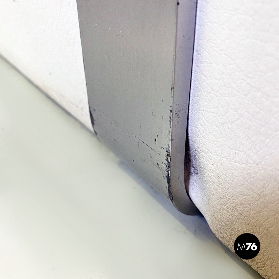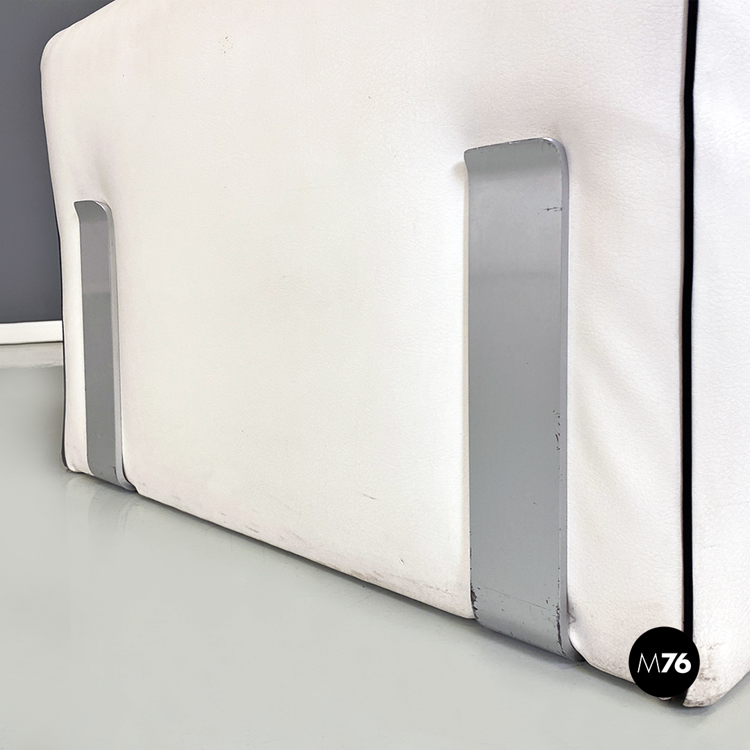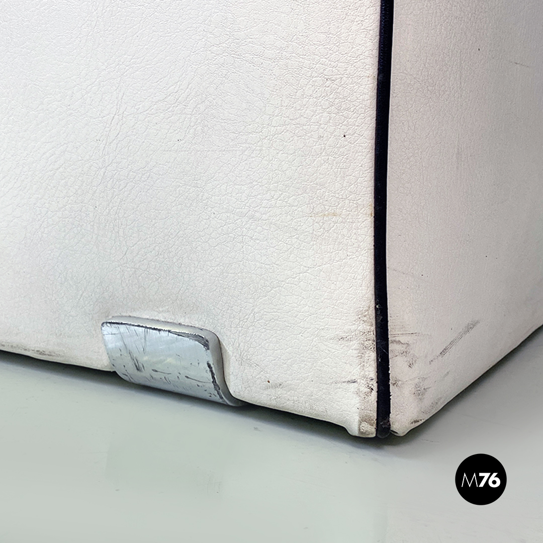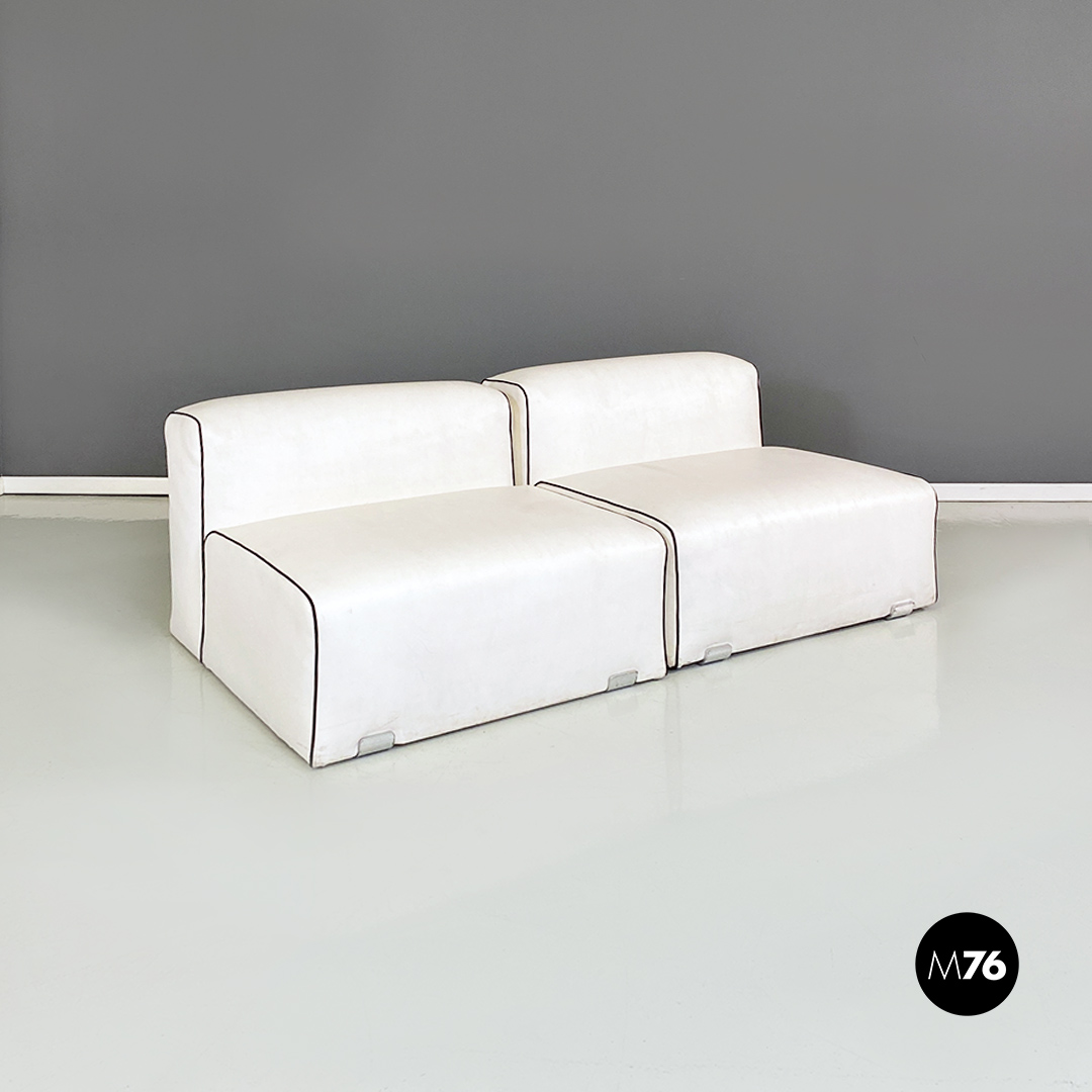 Coppia di poltrone in pelle bianca con cordino nero sul profilo con dettagli in acciaio satinato. Insieme compongono un divanetto due posti grazie anche al loro peso che le rende molto stabili.