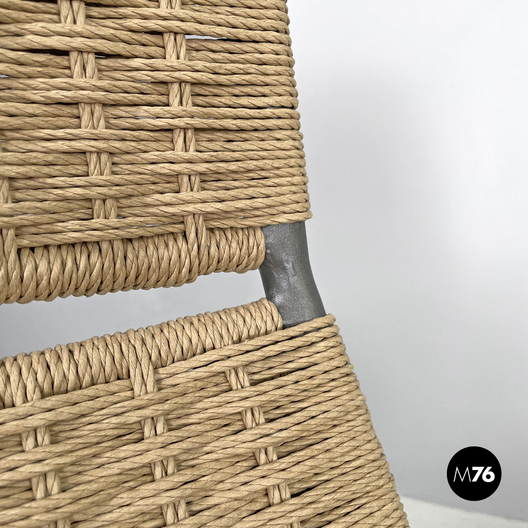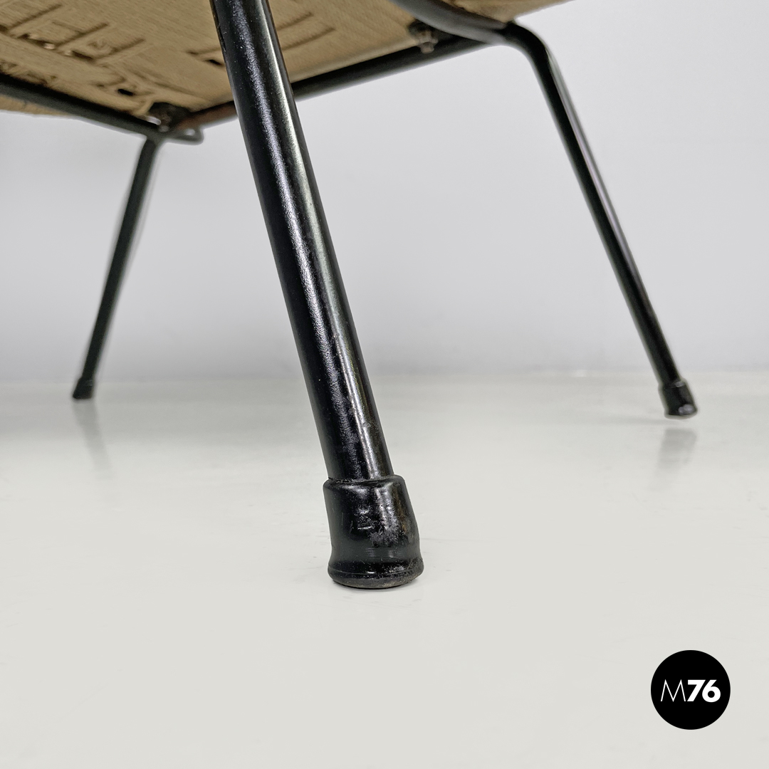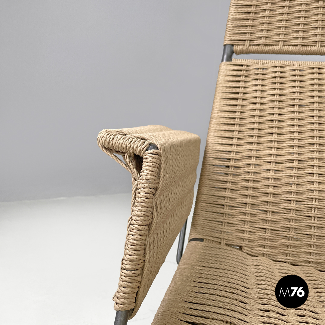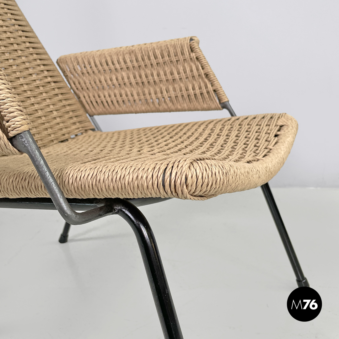 Poltrone in corda beige e metallo nero, 1960 ca.