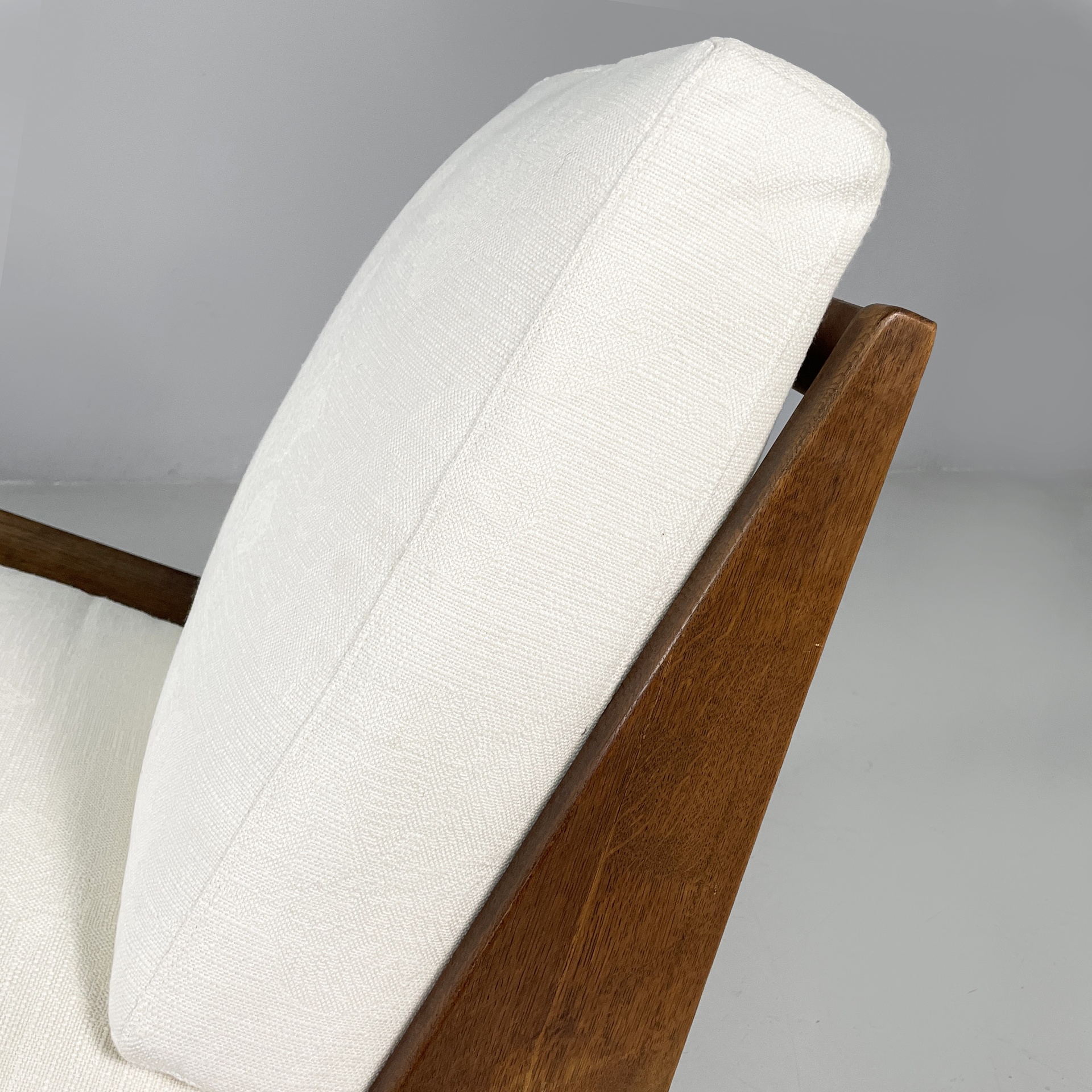 Poltrone in legno e tessuto bianco, 1970 ca.