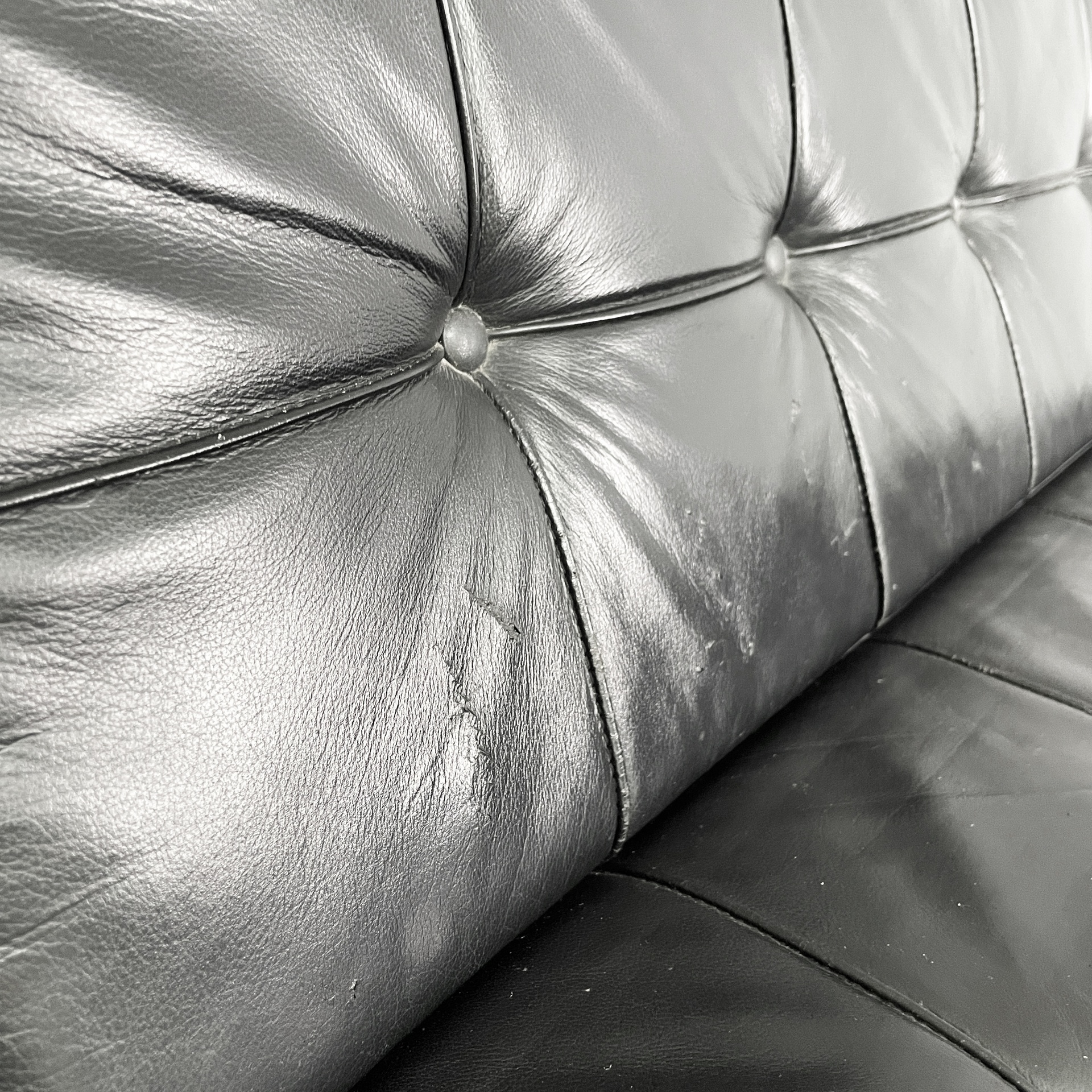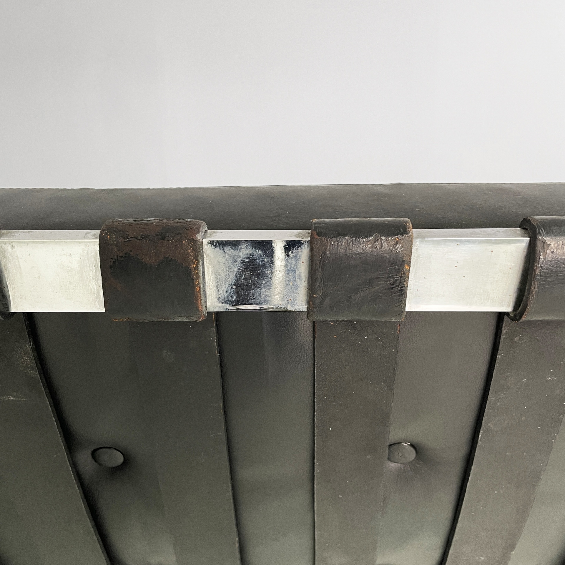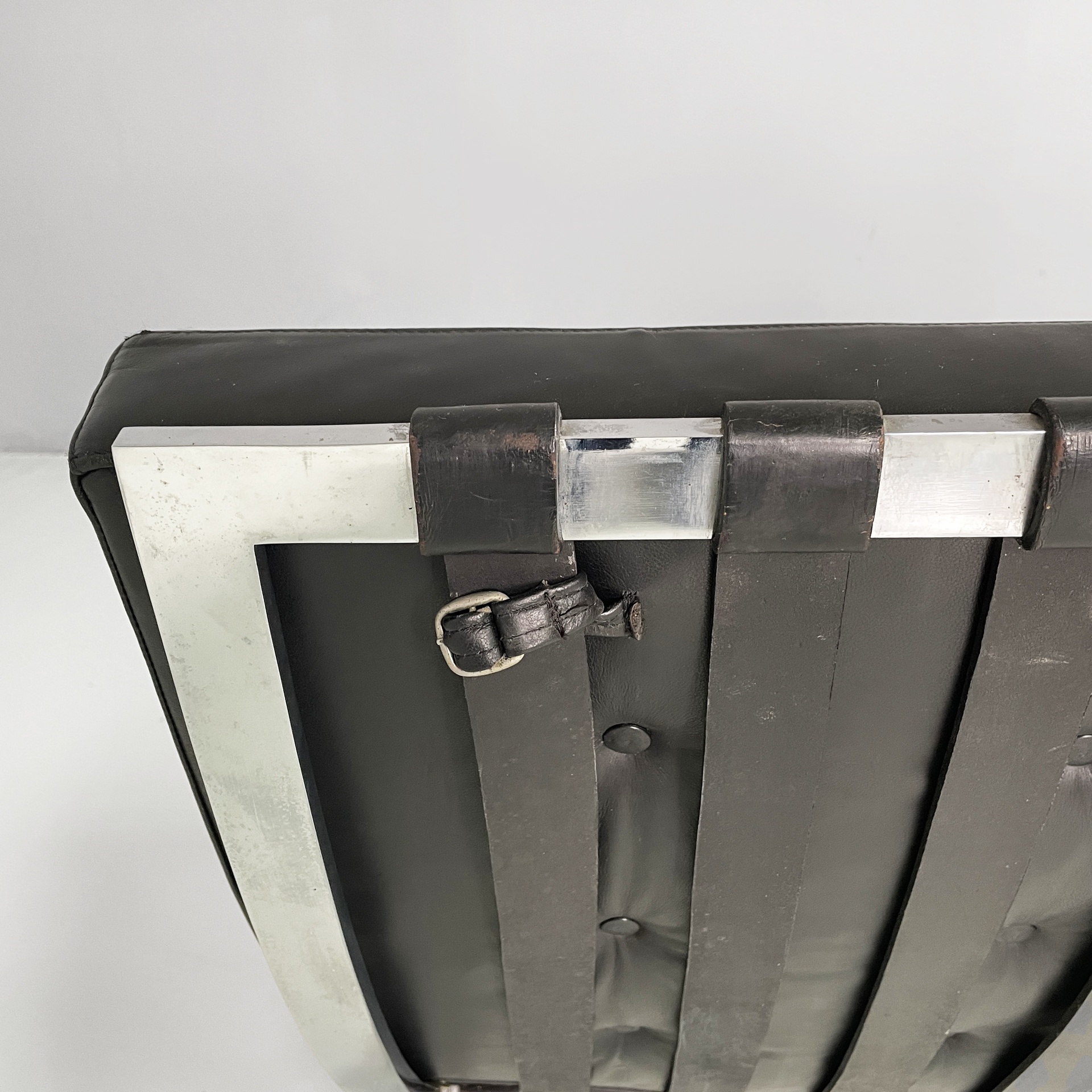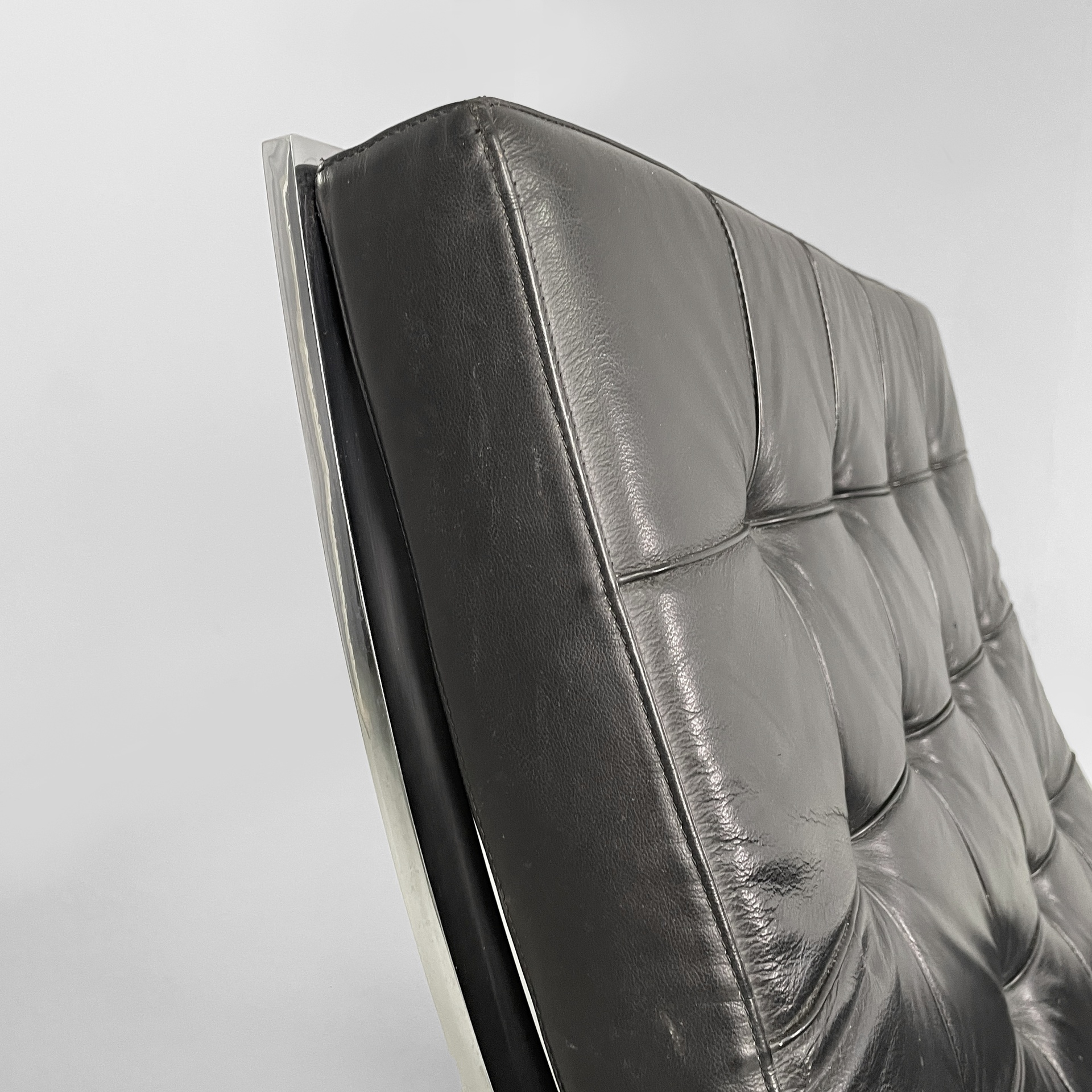 Poltrone in pelle nera e acciaio, 1970 ca.