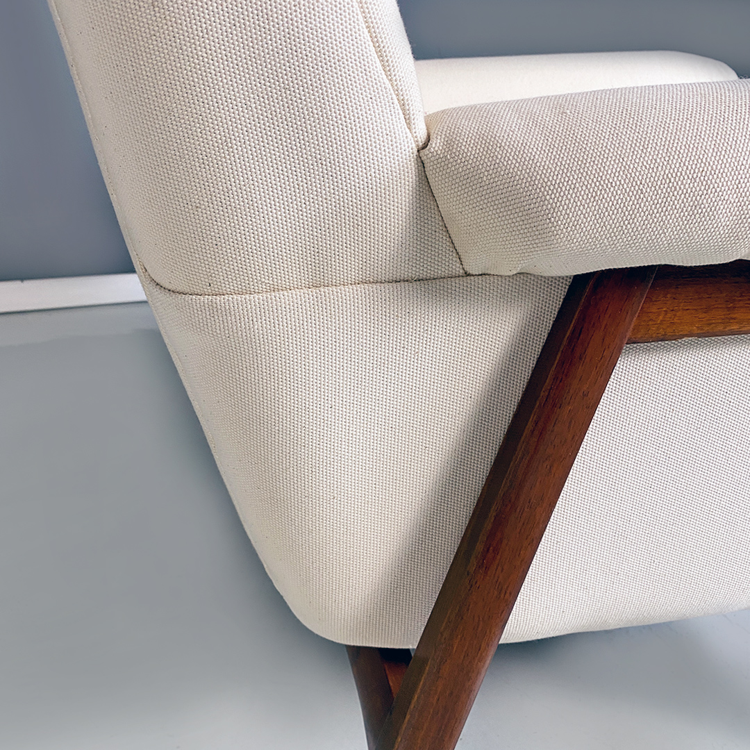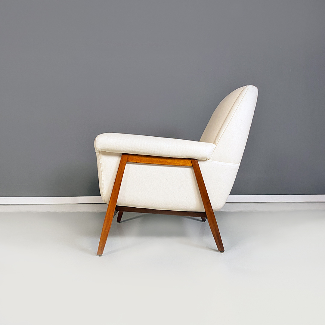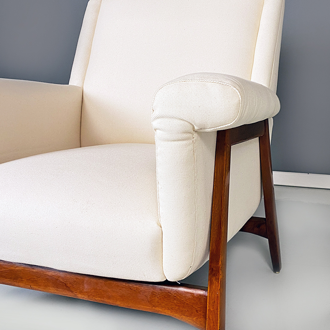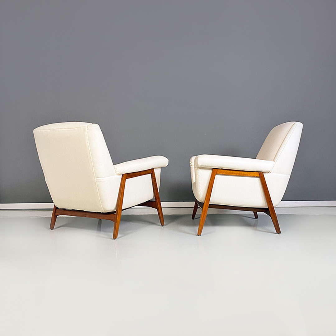 Poltrone in tessuto bianco e legno, 1960 ca.