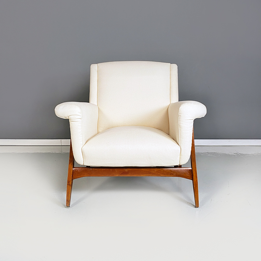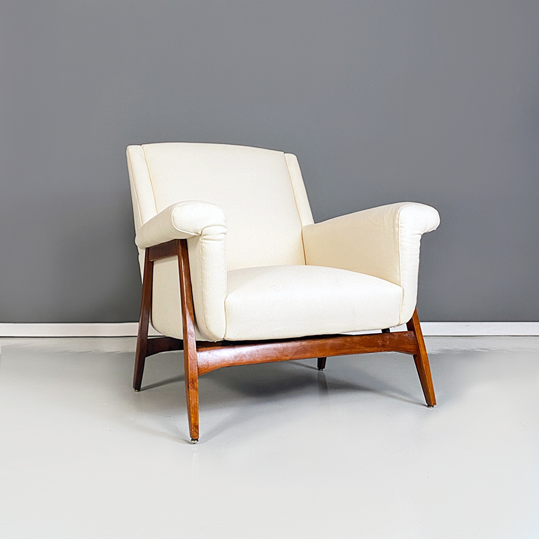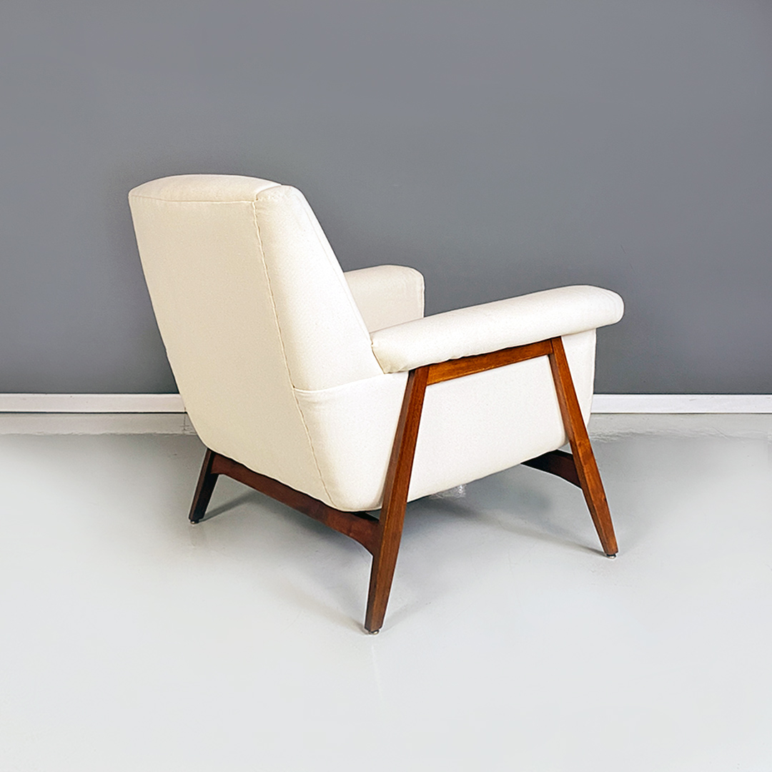 Poltrone in tessuto bianco e legno, 1960 ca.