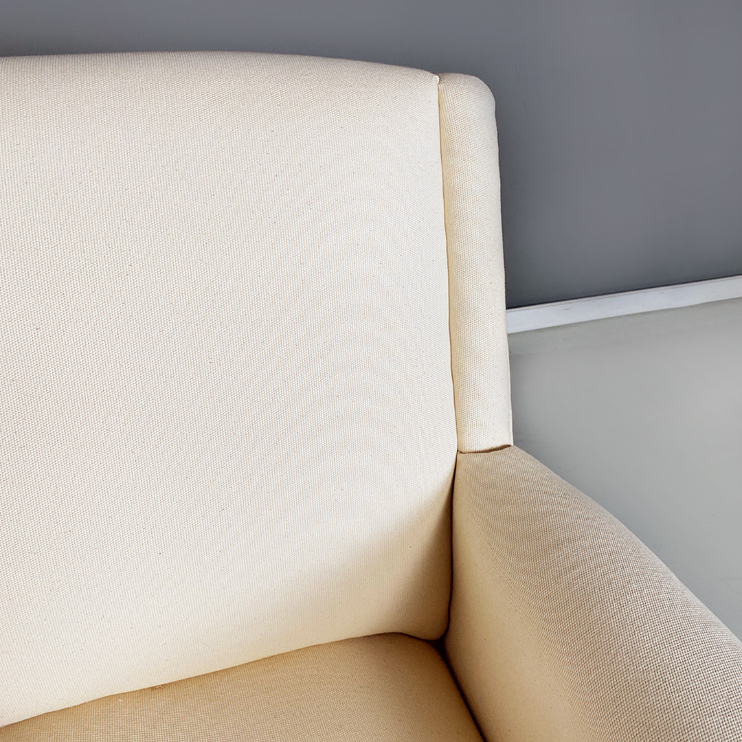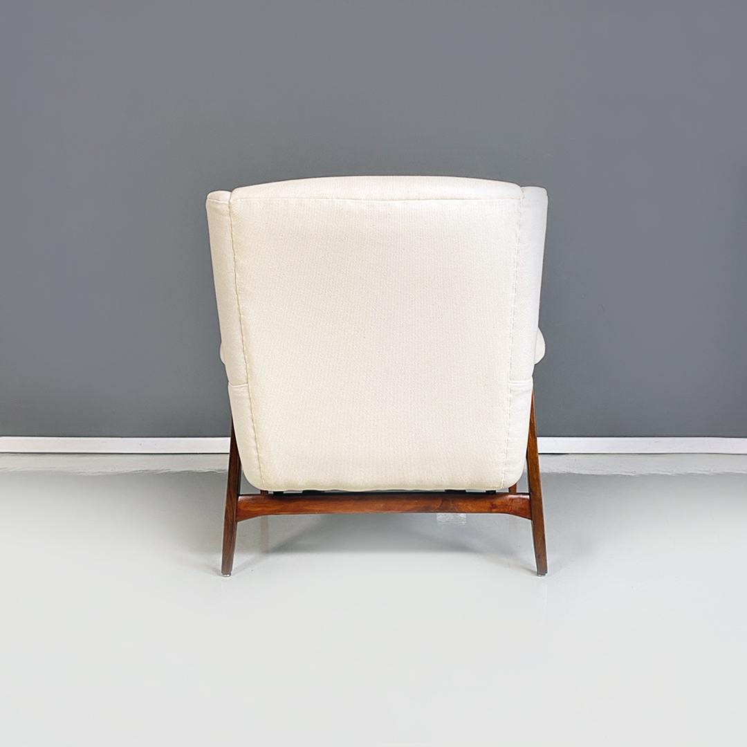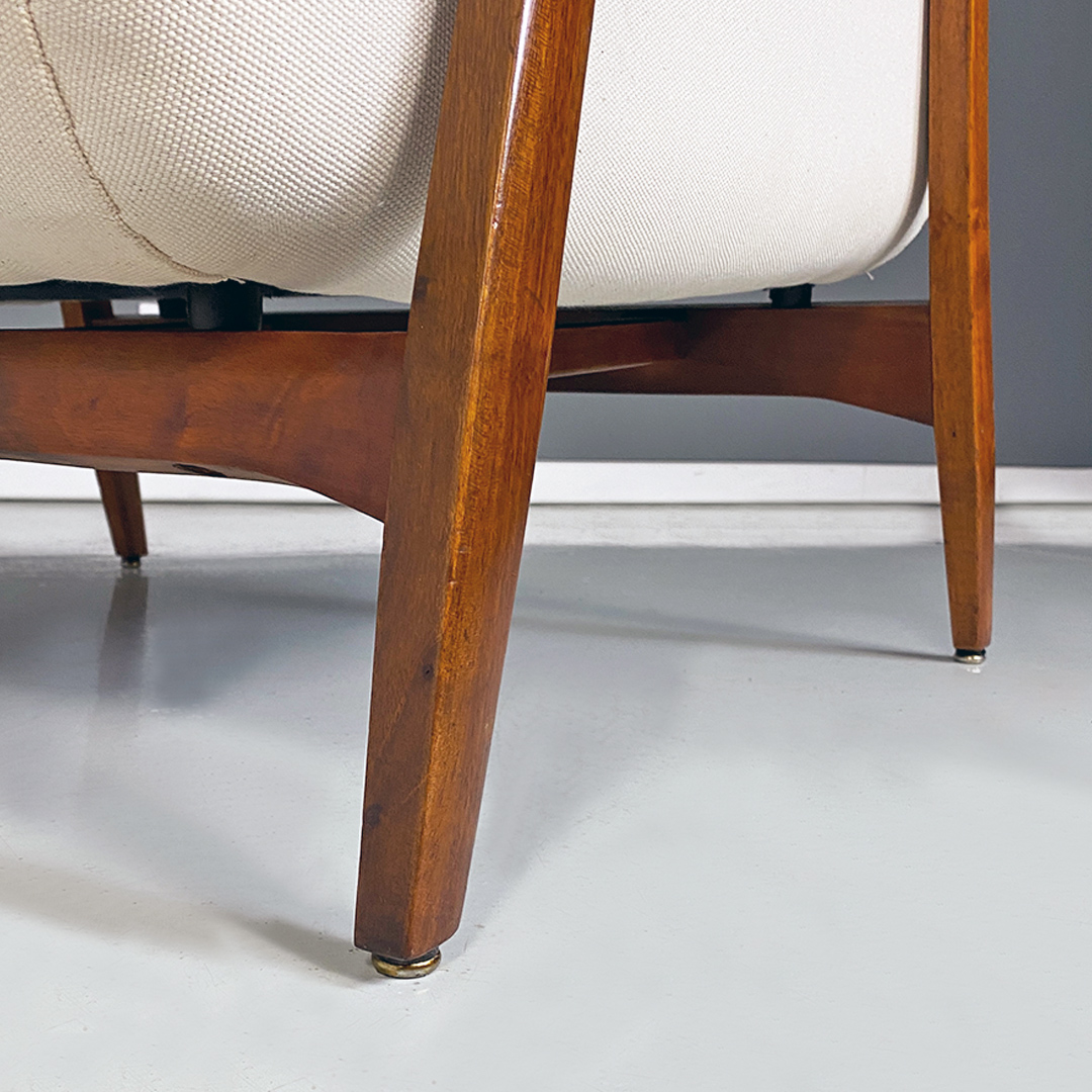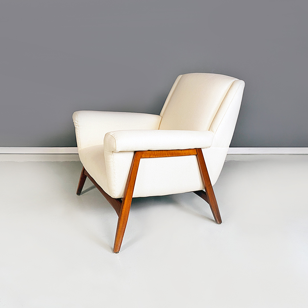 Poltrone in tessuto bianco e legno, 1960 ca.