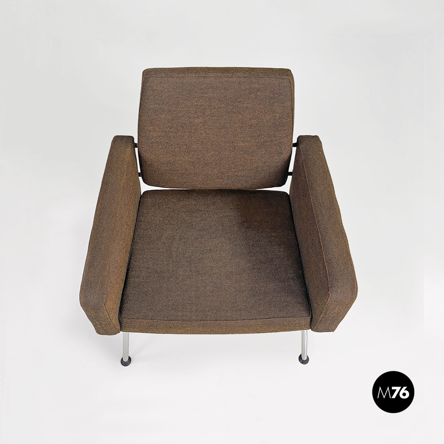 Poltrone in tessuto marrone originale e metallo, 1960 ca.