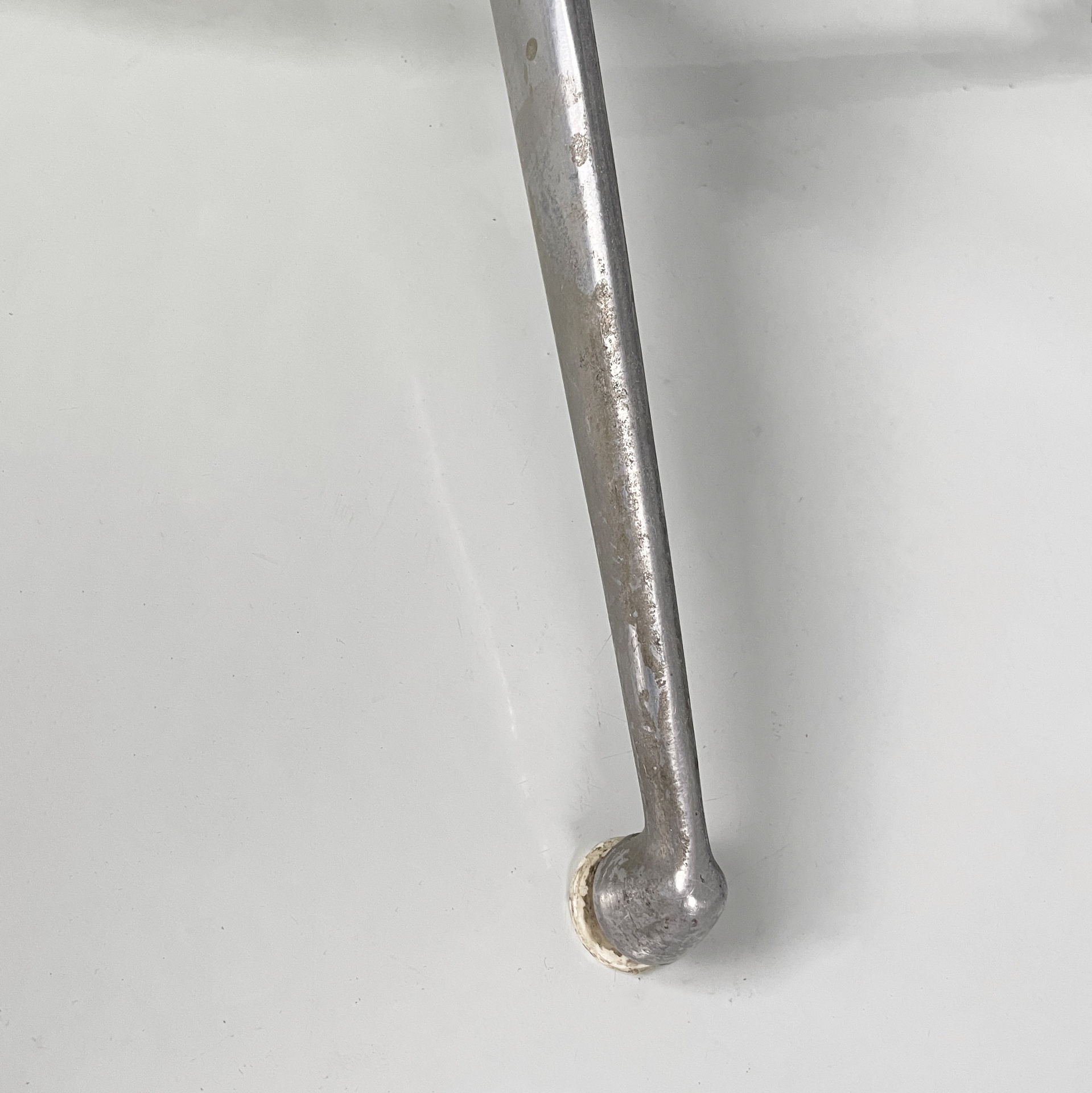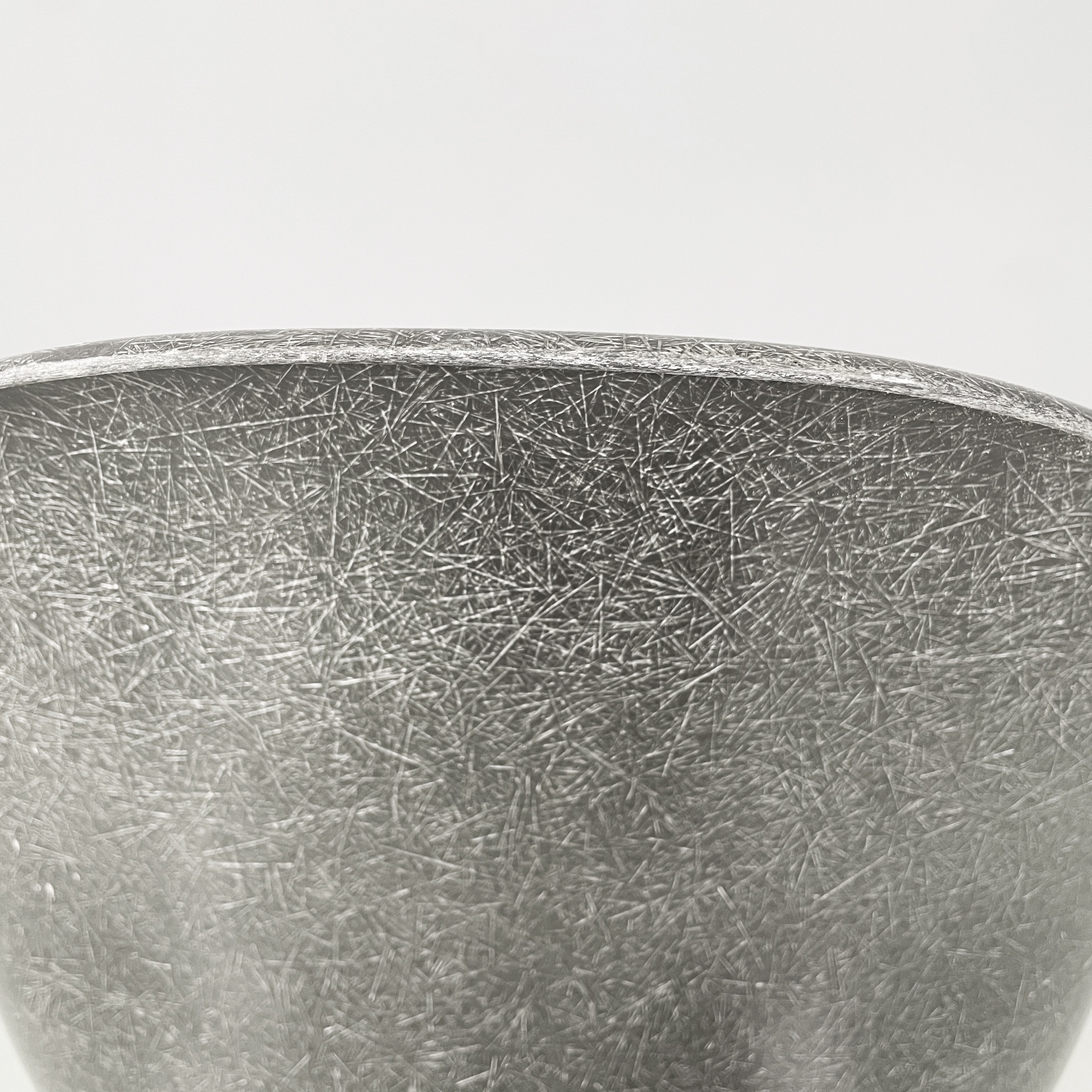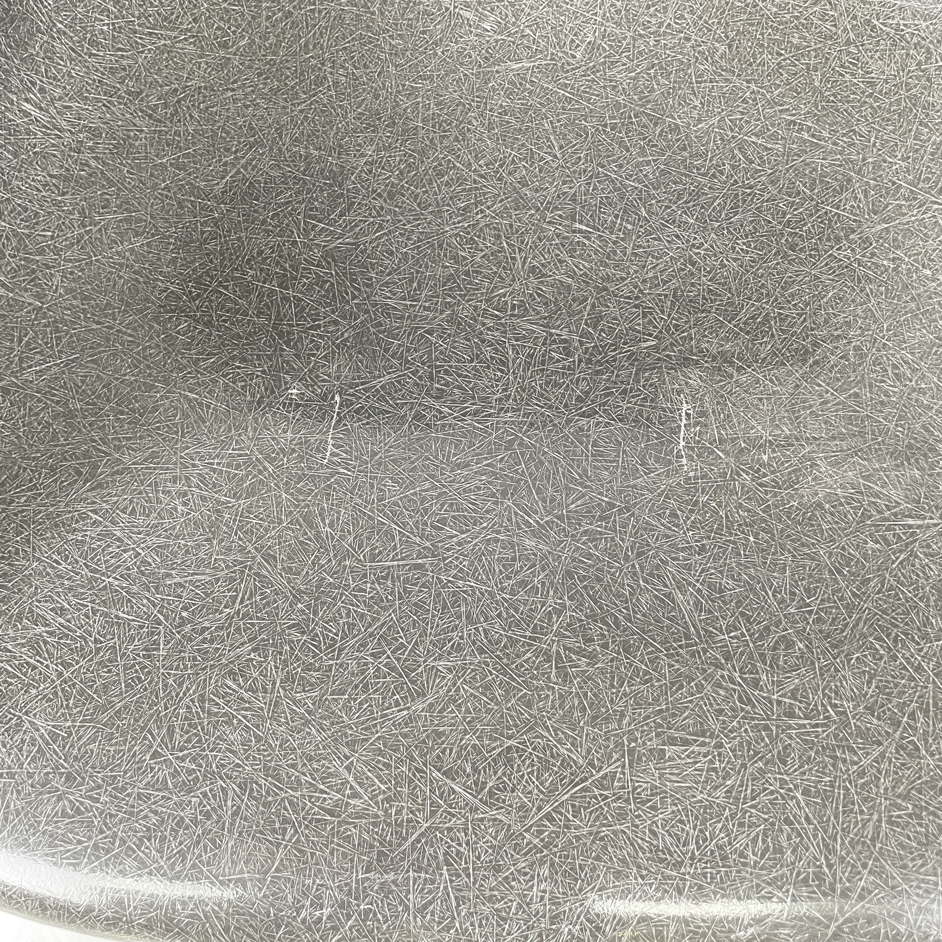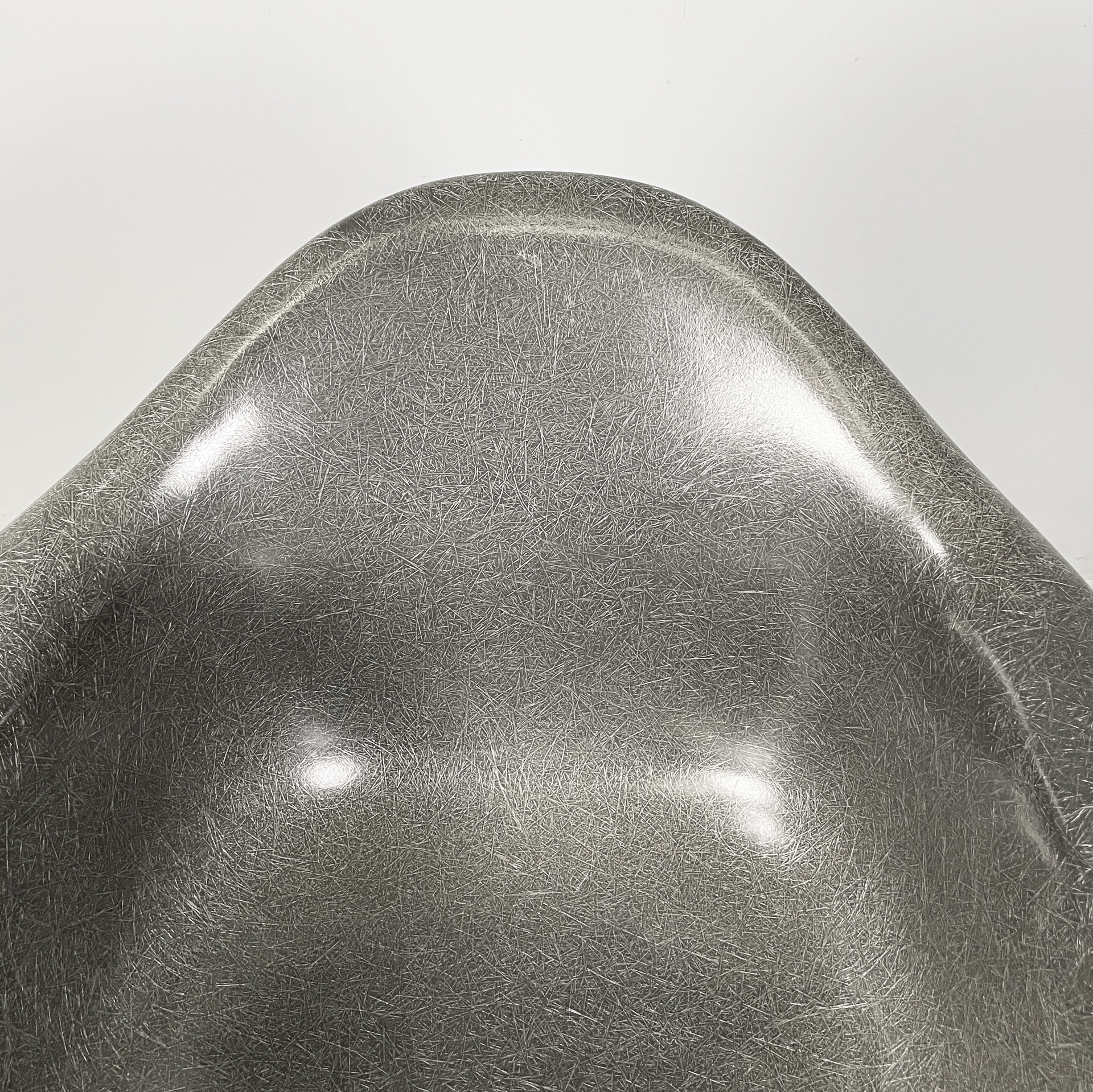 Set di sei poltrone modello La Fonda con seduta e schienale monoscocca curvata in vetroresina griga. Braccioli presenti. La base in alluminio è formata da quattro razze con piedini tondi. Possono essere usati come sedie da ufficio.