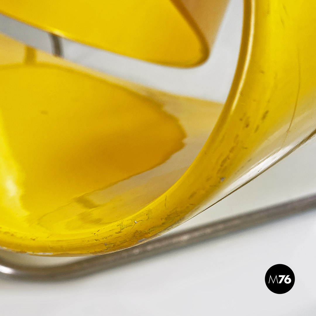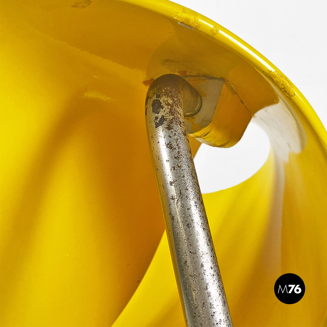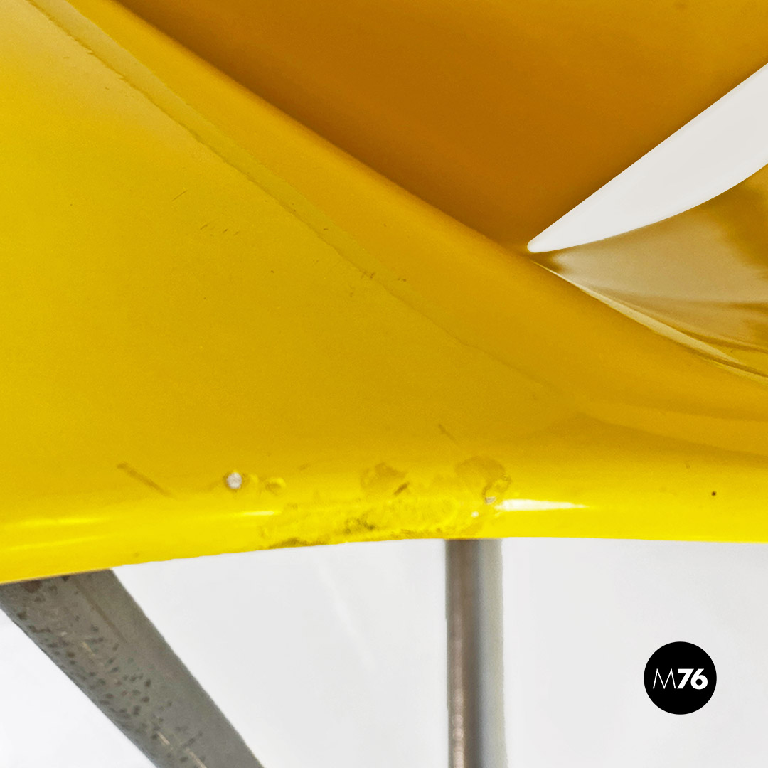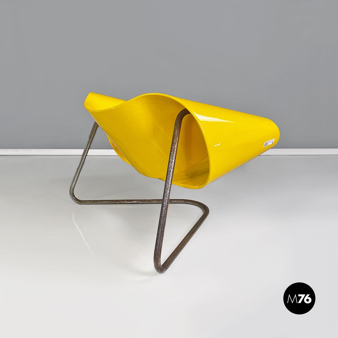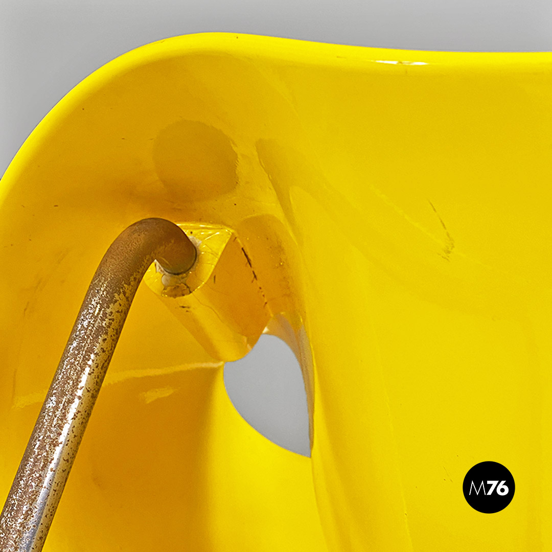 Coppia di poltrone modello Nastro CL9 composte da una striscia continua di GRP ossia vetro resina in colore giallo montata su una struttura in tubolare di metallo tramite un attacco per supporti antiurto.